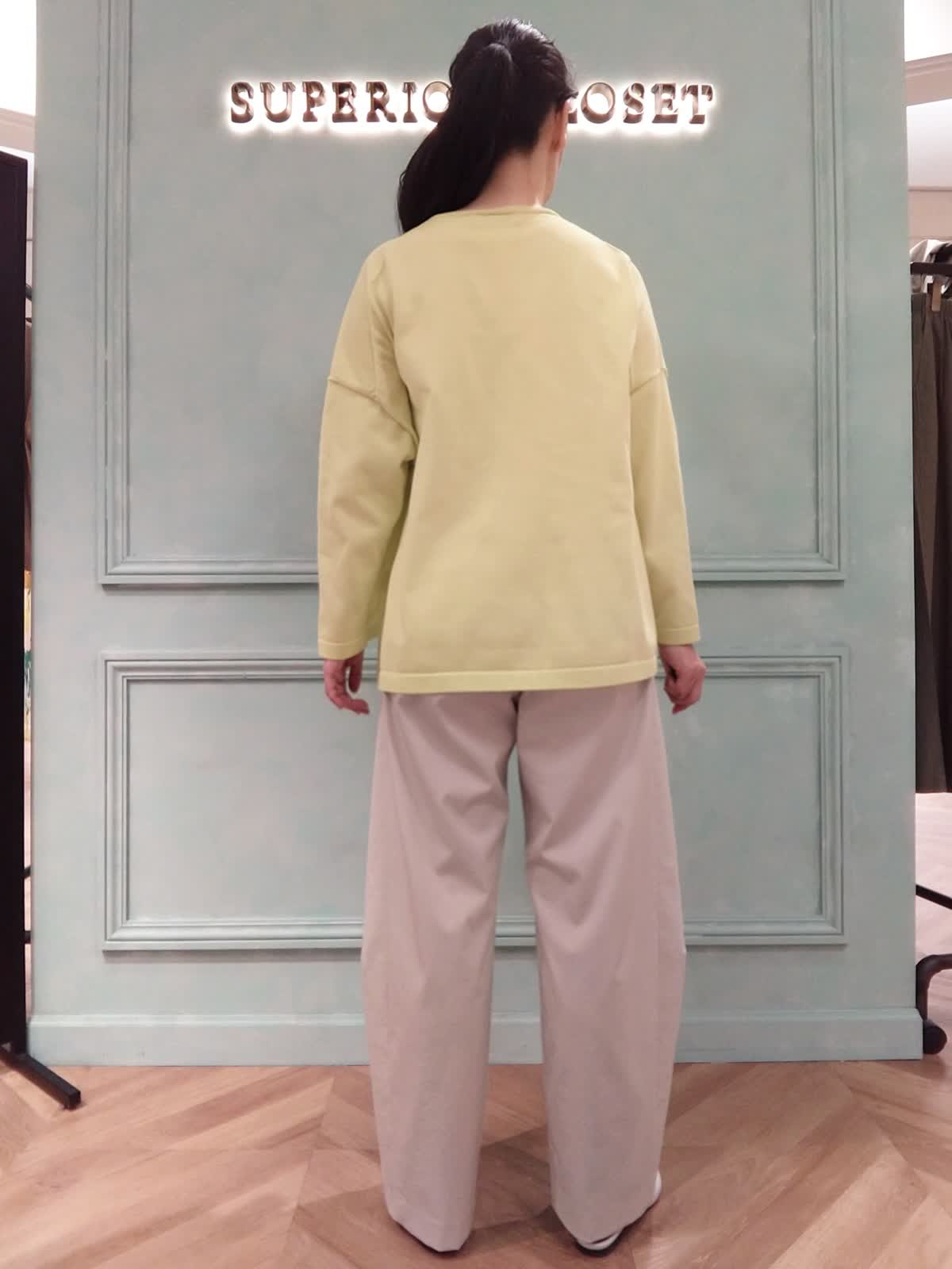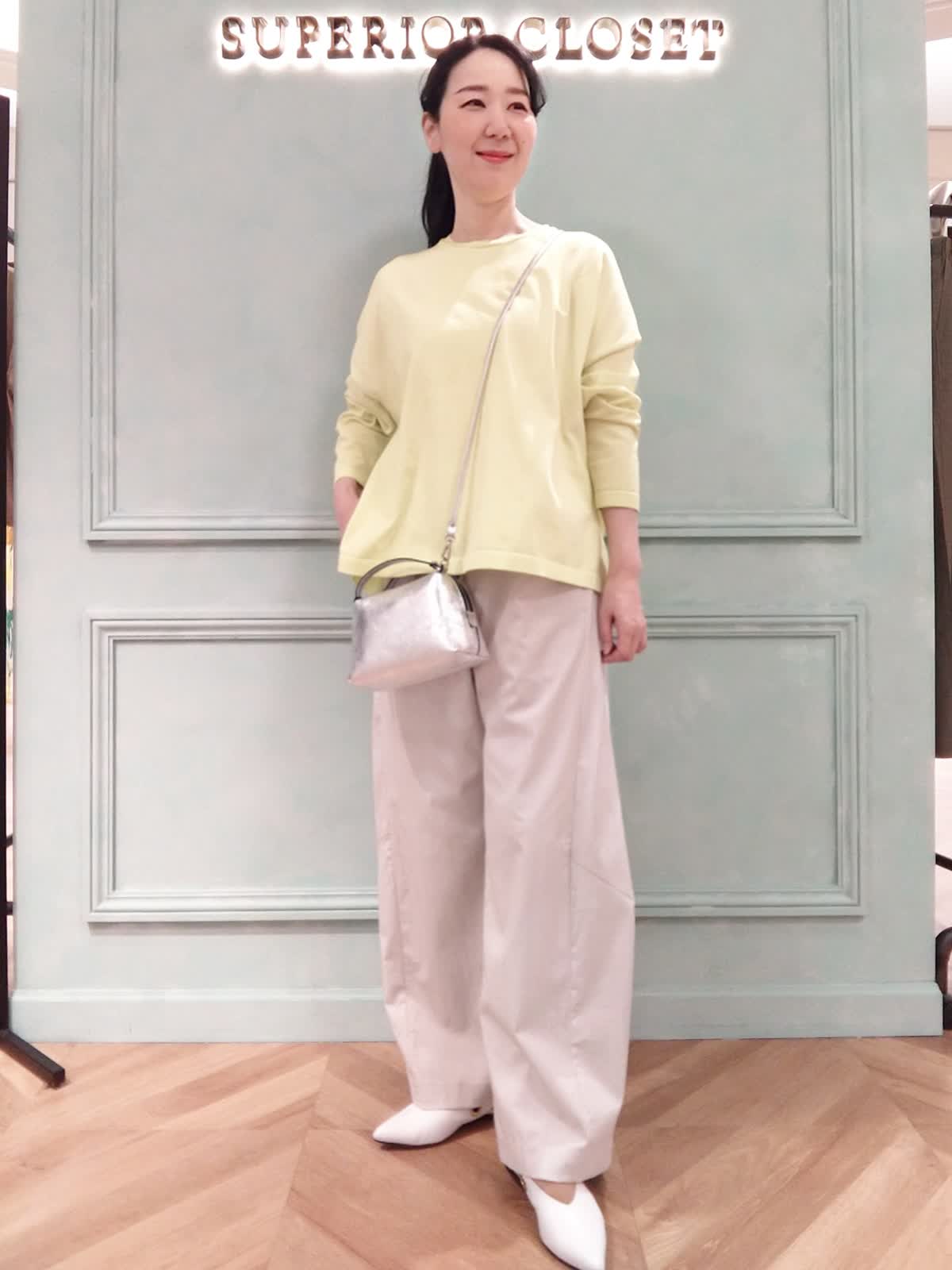 【着用サイズ】ニット:9号、パンツ:9号 【着用カラー】ニット:ビビッドイエロー、パンツ:グレーベージュ 気軽に着られる、ゴールデンウィークスタイル。ゆったりラフに着られる1枚着のニットは、パッと目を引くビビッドイエロー。トレンドのバレルパンツとコーディネート。両手が自由になる斜め掛けのシルバーバッグでアクセントをつけて、休日のココロ弾むおでかけ気分を楽しめます。