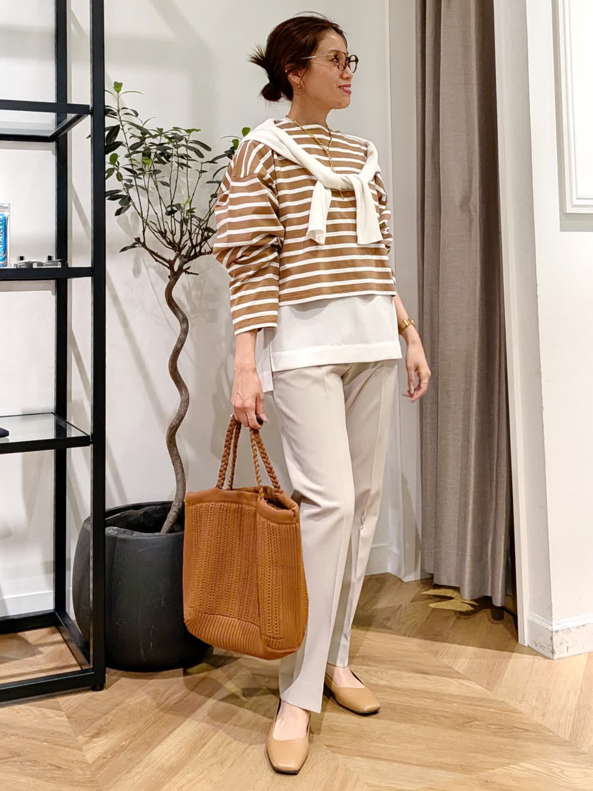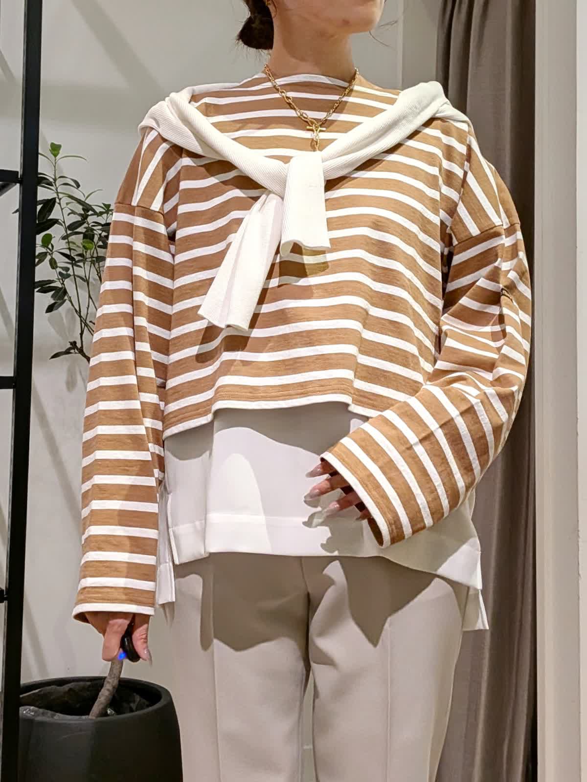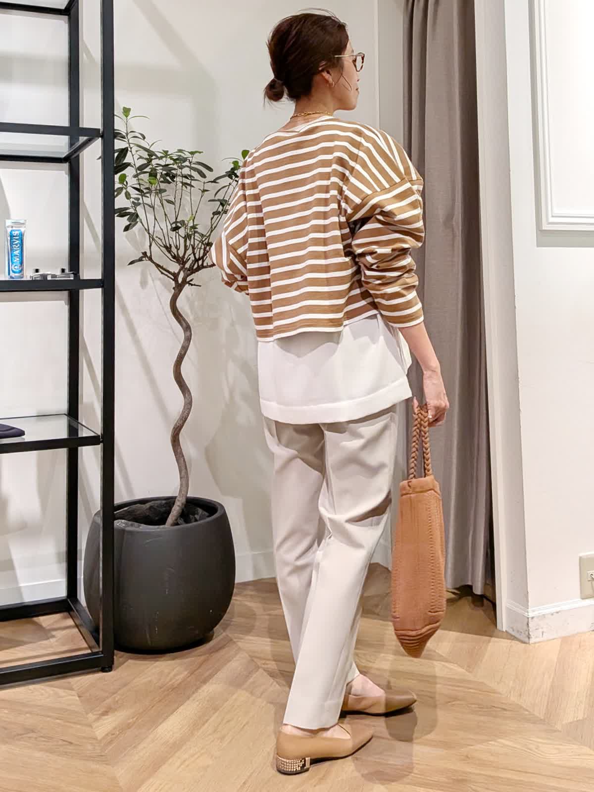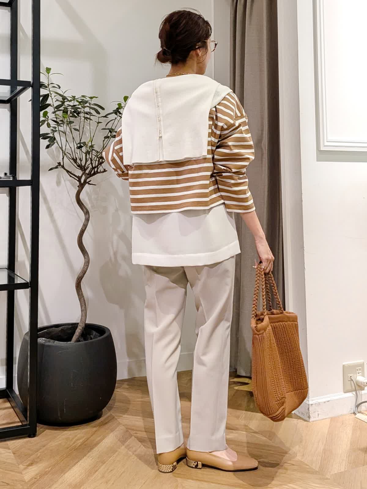【着用サイズ】ブルゾン、ボーダーカットソー?キャメル ブラウス?オフホワイト パンツ?グレーベージュ?全て9号 スタンドカラーブルゾンは薄手で軽量。ちょっとした羽織に大活躍する一着。 丈感はコンパクトですがしっかり着込めるタイプ。ボーダーカットソーは一枚で着ても可愛いですがヒップ周りをカバーする為お洒落感UPする為ブラウスをレイヤードしてみまた。 今年最後になる?!美脚シリーズは安定の美しさ。野外イベントなどでも活躍するコーデにしてみました。