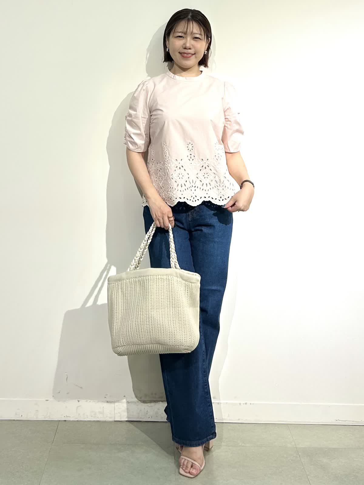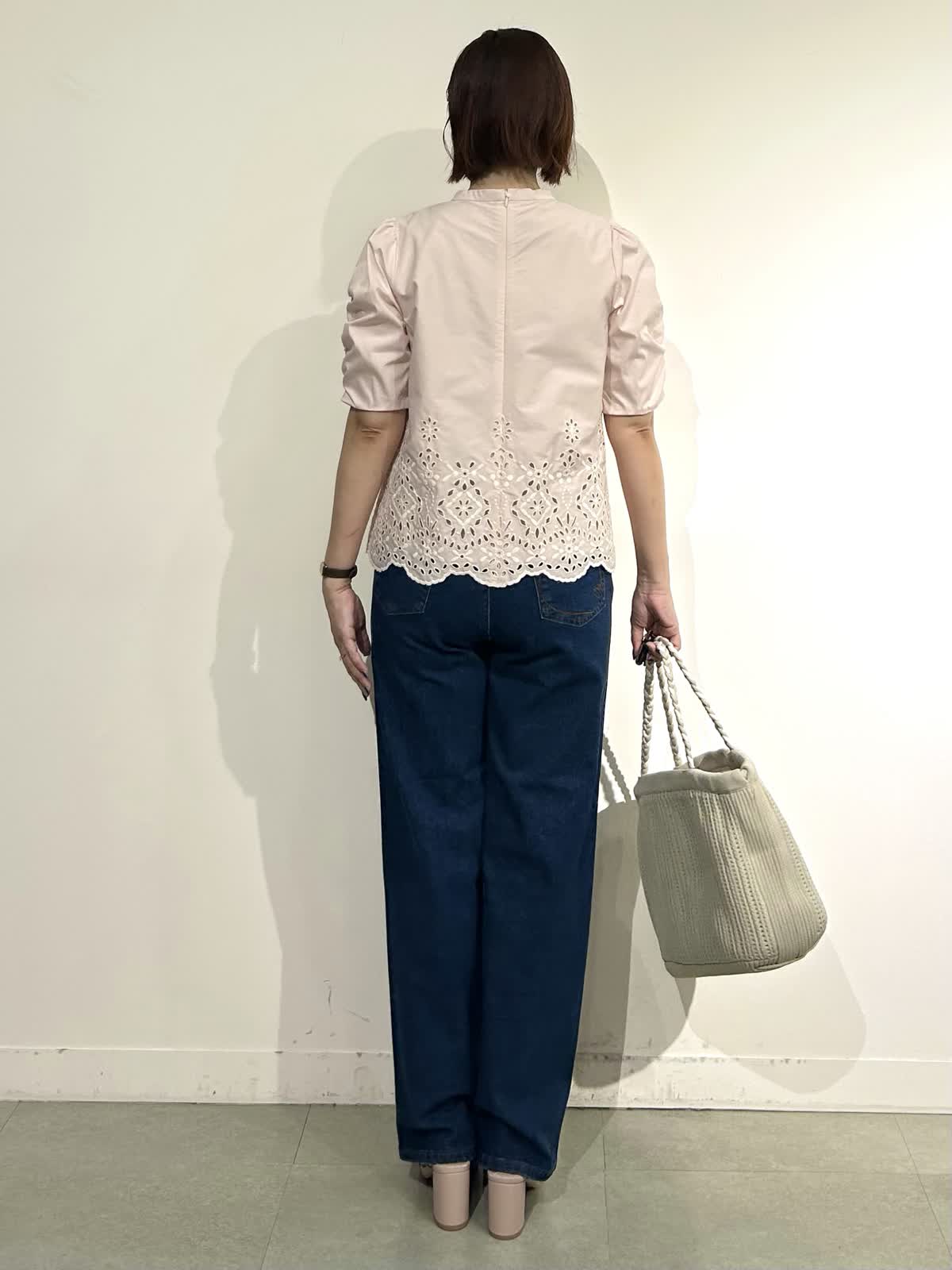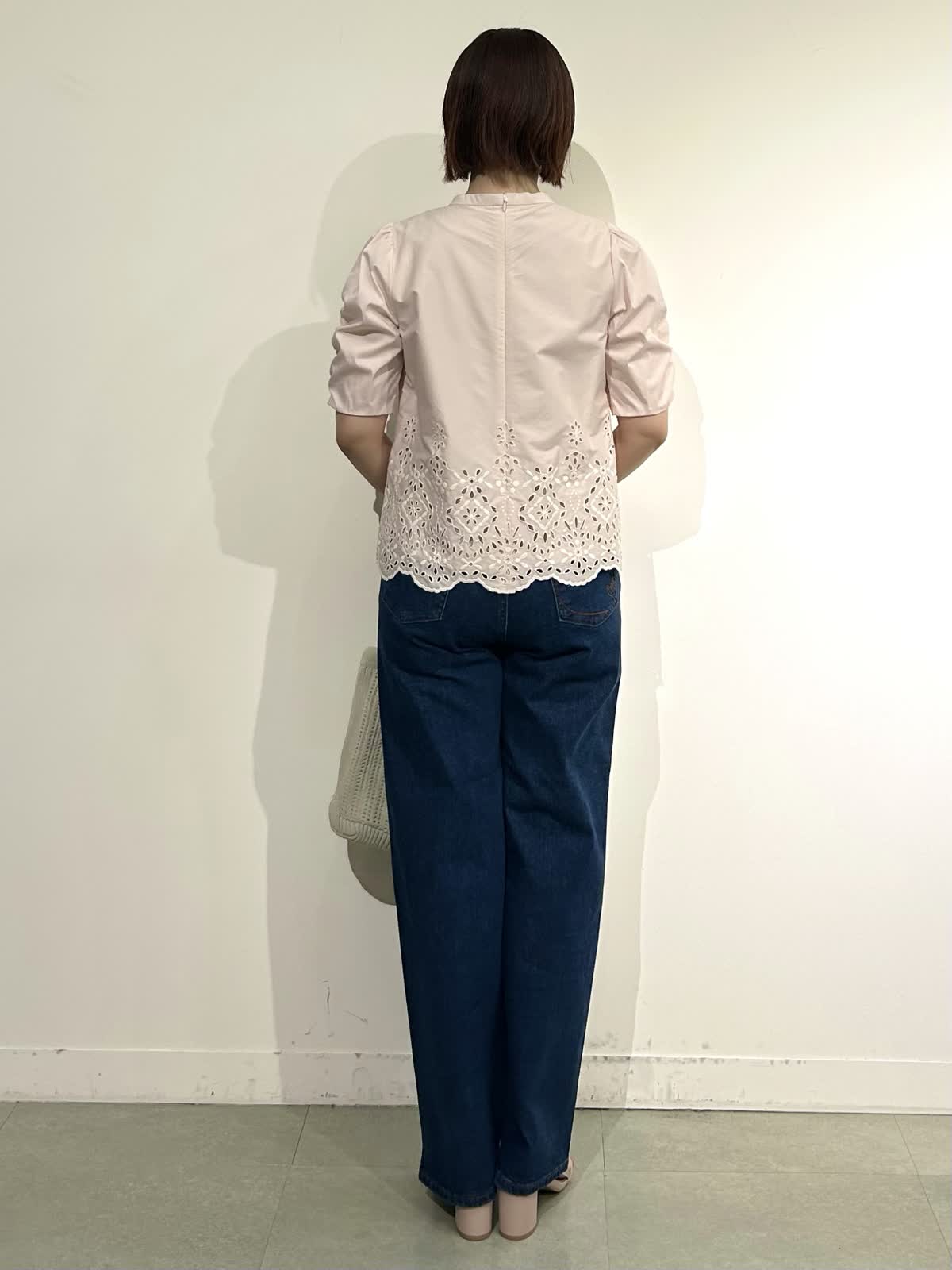 【着用サイズ】全て9号 【着用カラー】ブラウス:ピンク デニム:インディゴ Maglie jeansで甘めカジュアルスタイル。 ブラウスは繊細なレースが華やかさと可愛らしさを演出してくれます。 1着で着映えるブラウスなので春から夏にかけてのお出かけシーンにぴったりです。 デニムはストレッチが効くので動きやすく、ウエスト位置が高く見えるので脚長効果も♪