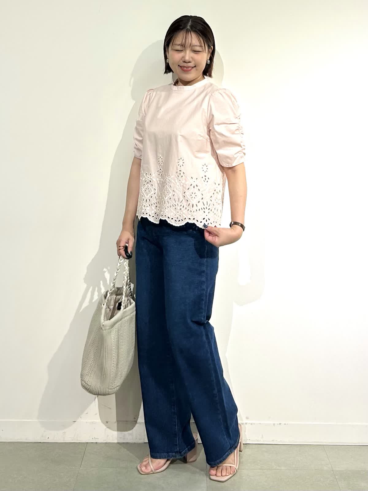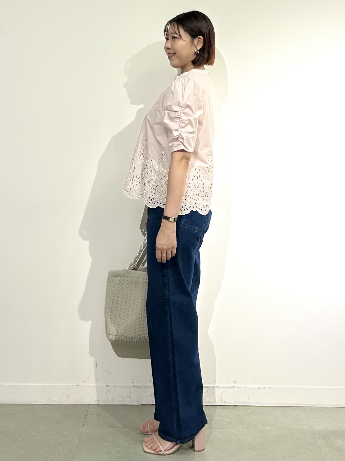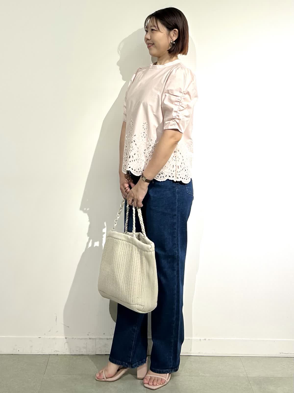【着用サイズ】全て9号 【着用カラー】ブラウス:ピンク デニム:インディゴ Maglie jeansで甘めカジュアルスタイル。 ブラウスは繊細なレースが華やかさと可愛らしさを演出してくれます。 1着で着映えるブラウスなので春から夏にかけてのお出かけシーンにぴったりです。 デニムはストレッチが効くので動きやすく、ウエスト位置が高く見えるので脚長効果も♪