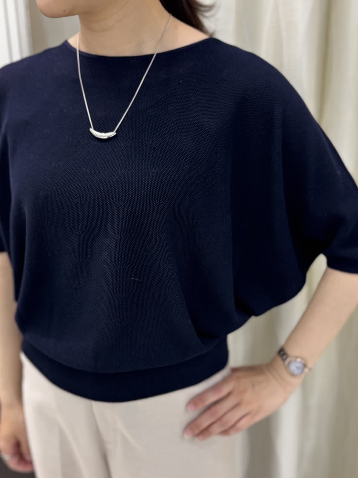 イネド定番のスポンディッシュなニットシリーズは、キュプラ混で吸湿性に優れているので、夏でも快適に過ごせます。プルオーバーは二の腕が目立たず、でもカーディガンを着てもゴロつかないのでとっても着やすいです。カーディガンは1枚着出来るので、アンサンブルで揃えておくとコーデの幅が広がること間違いなし。お家洗濯OKでそこまで気を使わなくて良い素材なのも◎