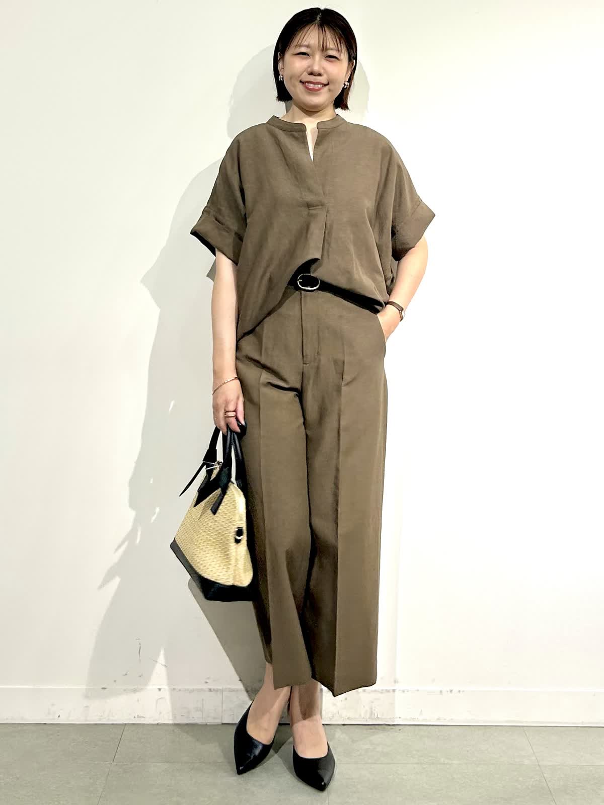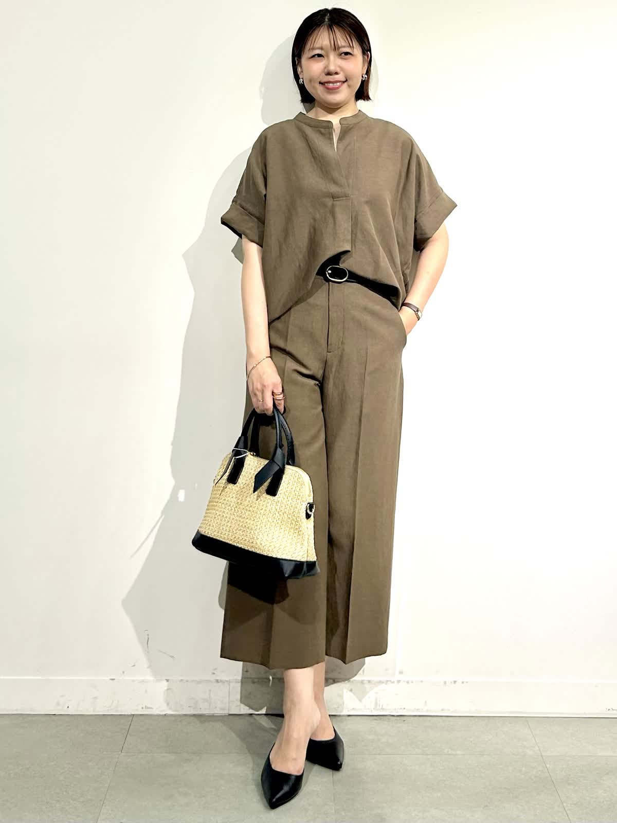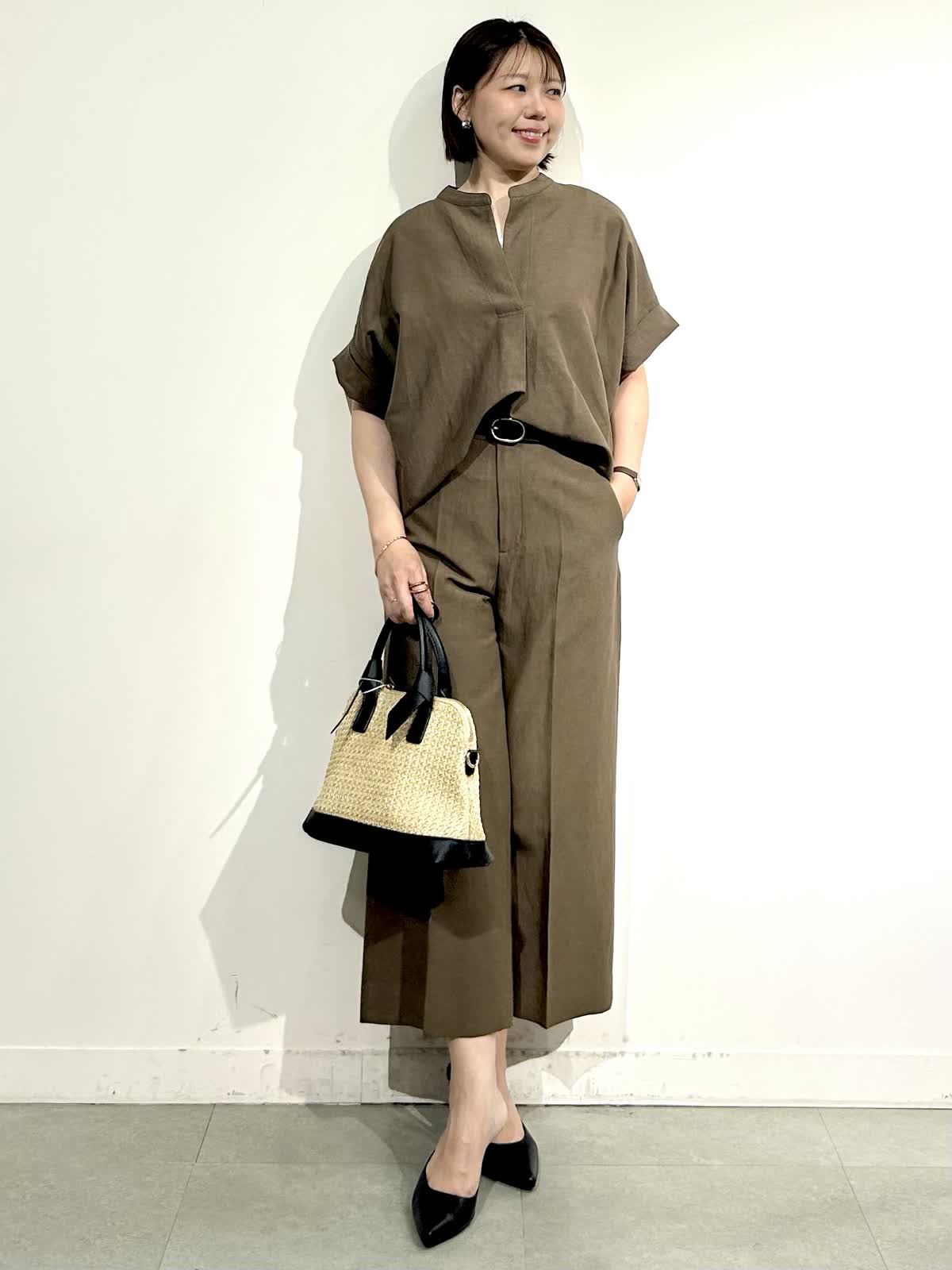 【着用カラー】ブラウス・パンツ:カーキ ベルト:ブラック