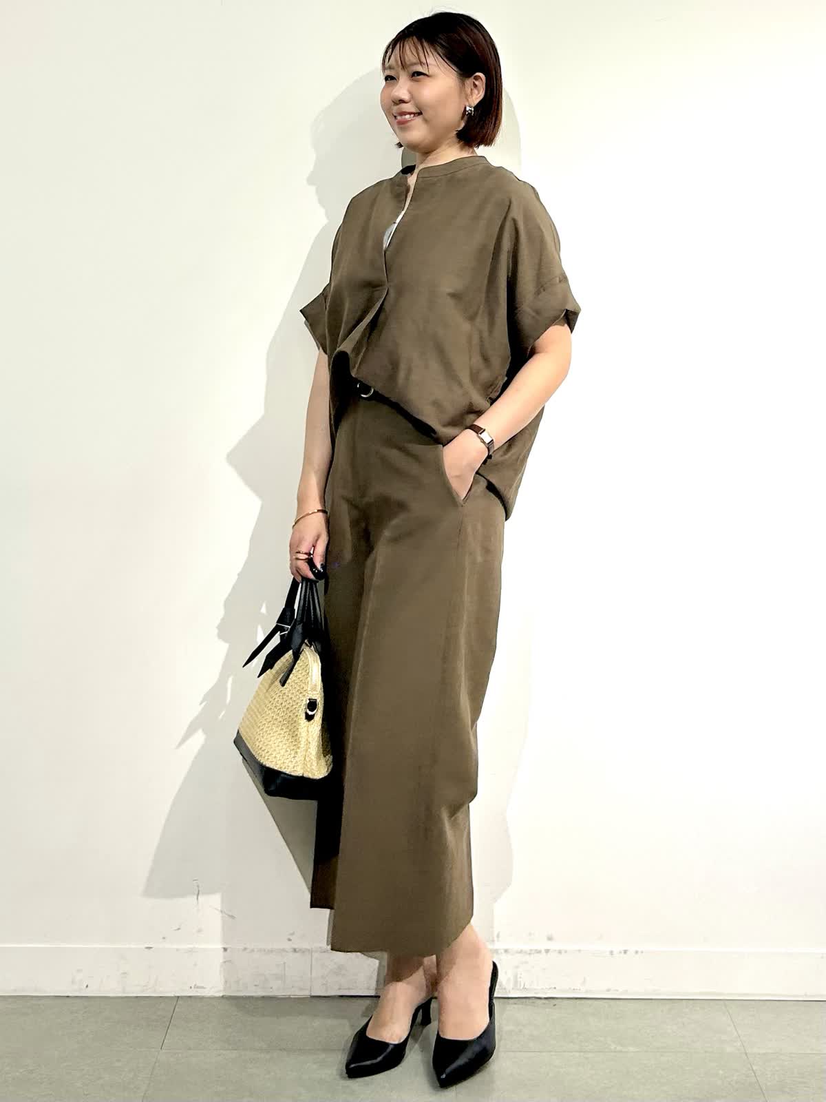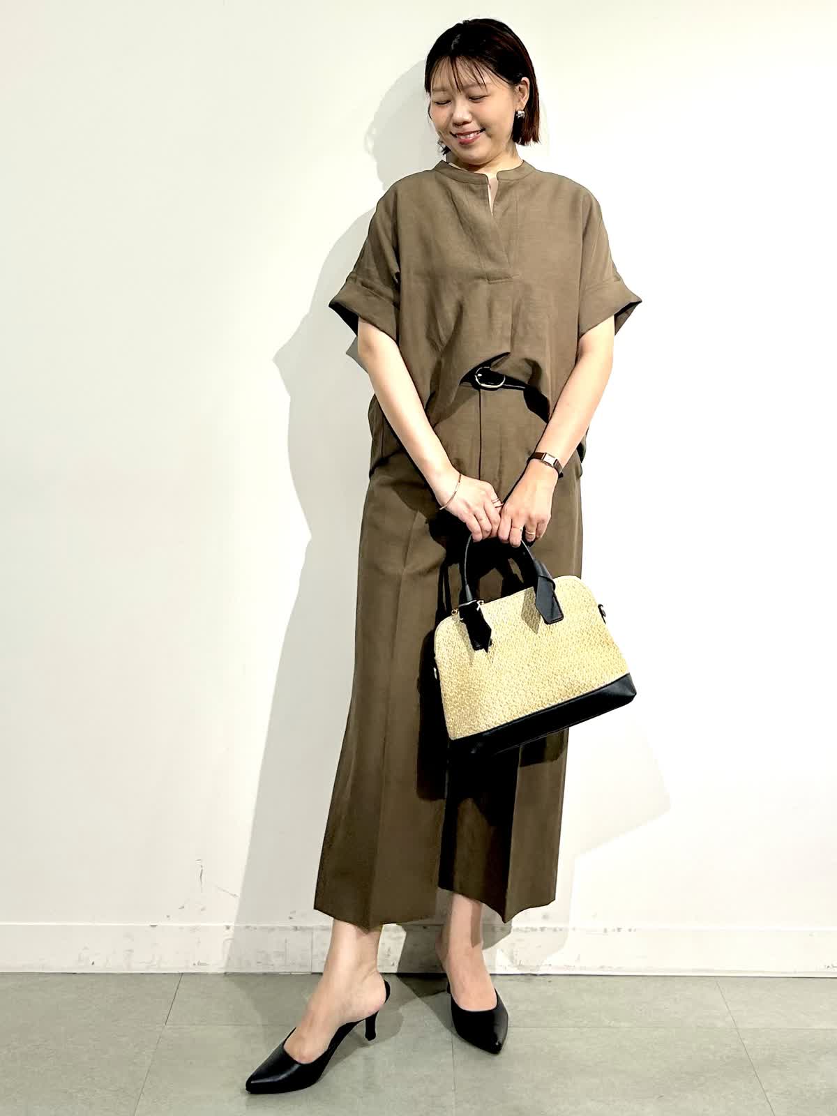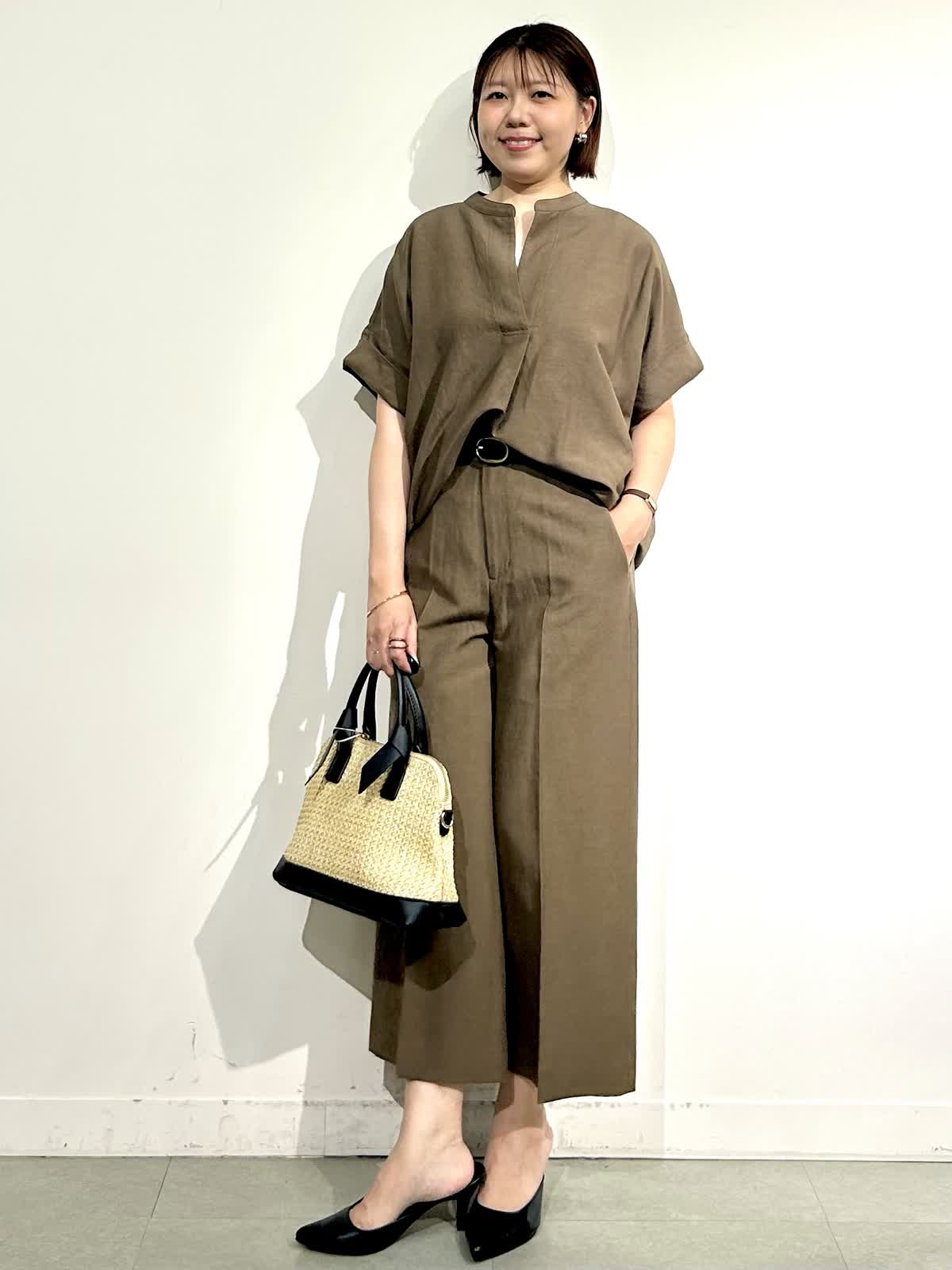 【着用カラー】ブラウス・パンツ:カーキ ベルト:ブラック