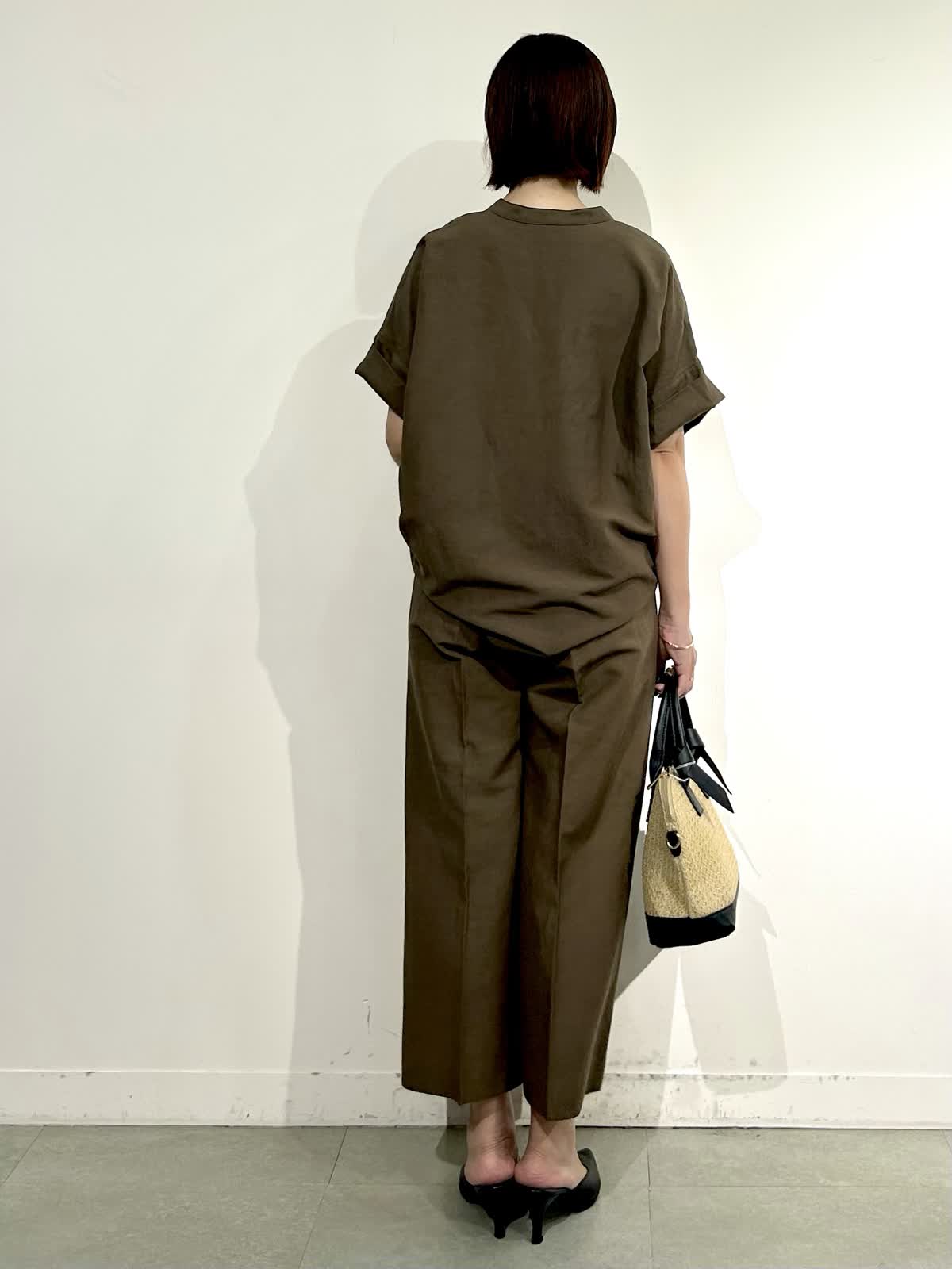 パンツは足首が見える着丈なので、フラットシューズやカジュアルにスニーカーでも合わせていただけます。