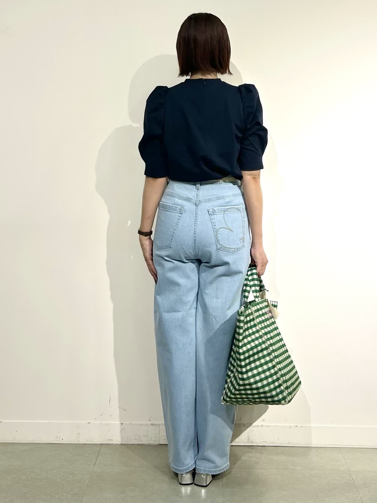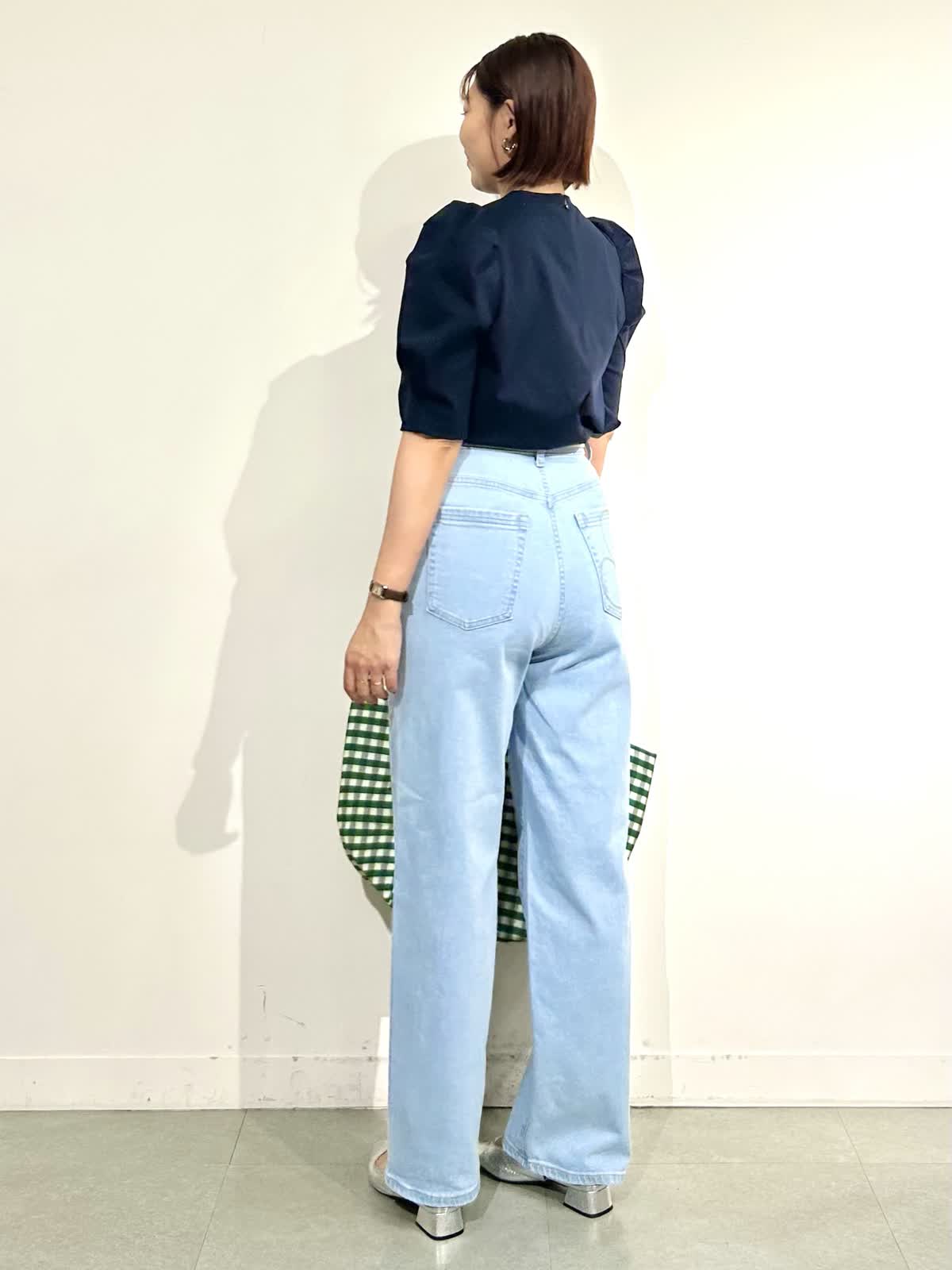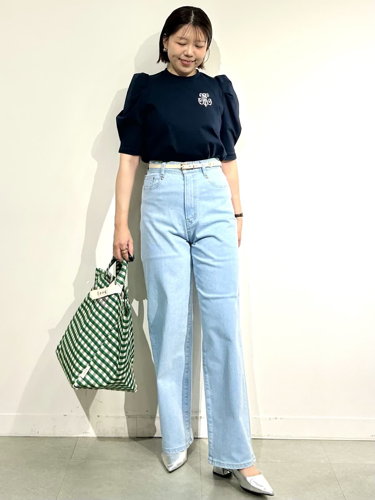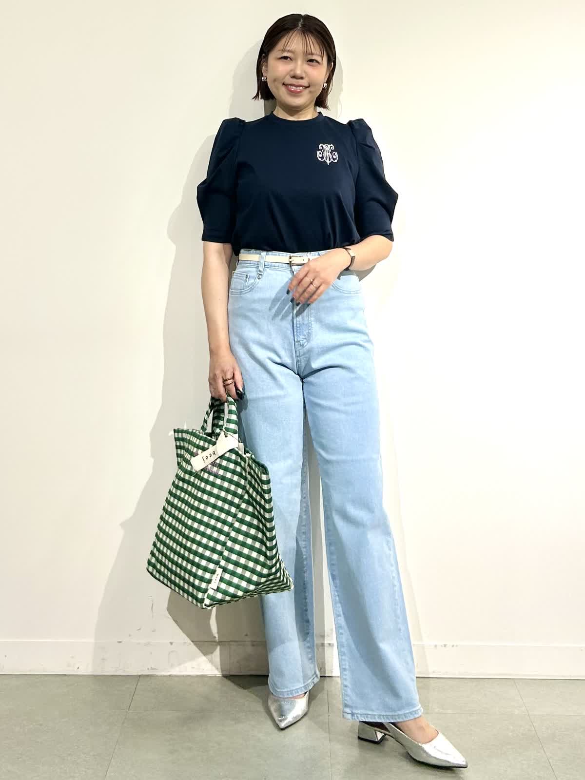 デニムは脚長効果がでるハイライズです。ストレッチが効くので動きやすさも抜群!後ろのハートステッチがさりげないキュートさです。