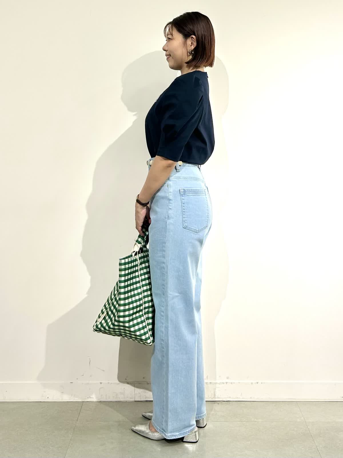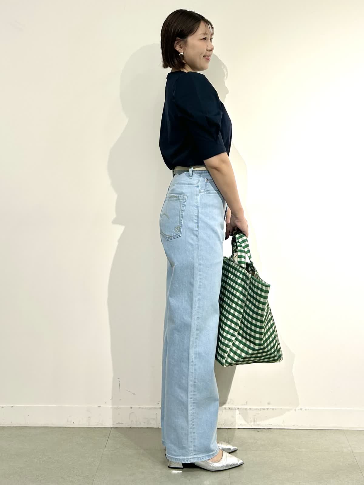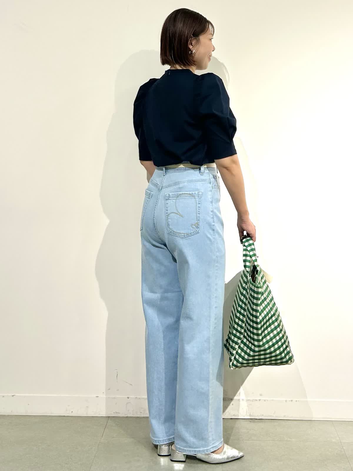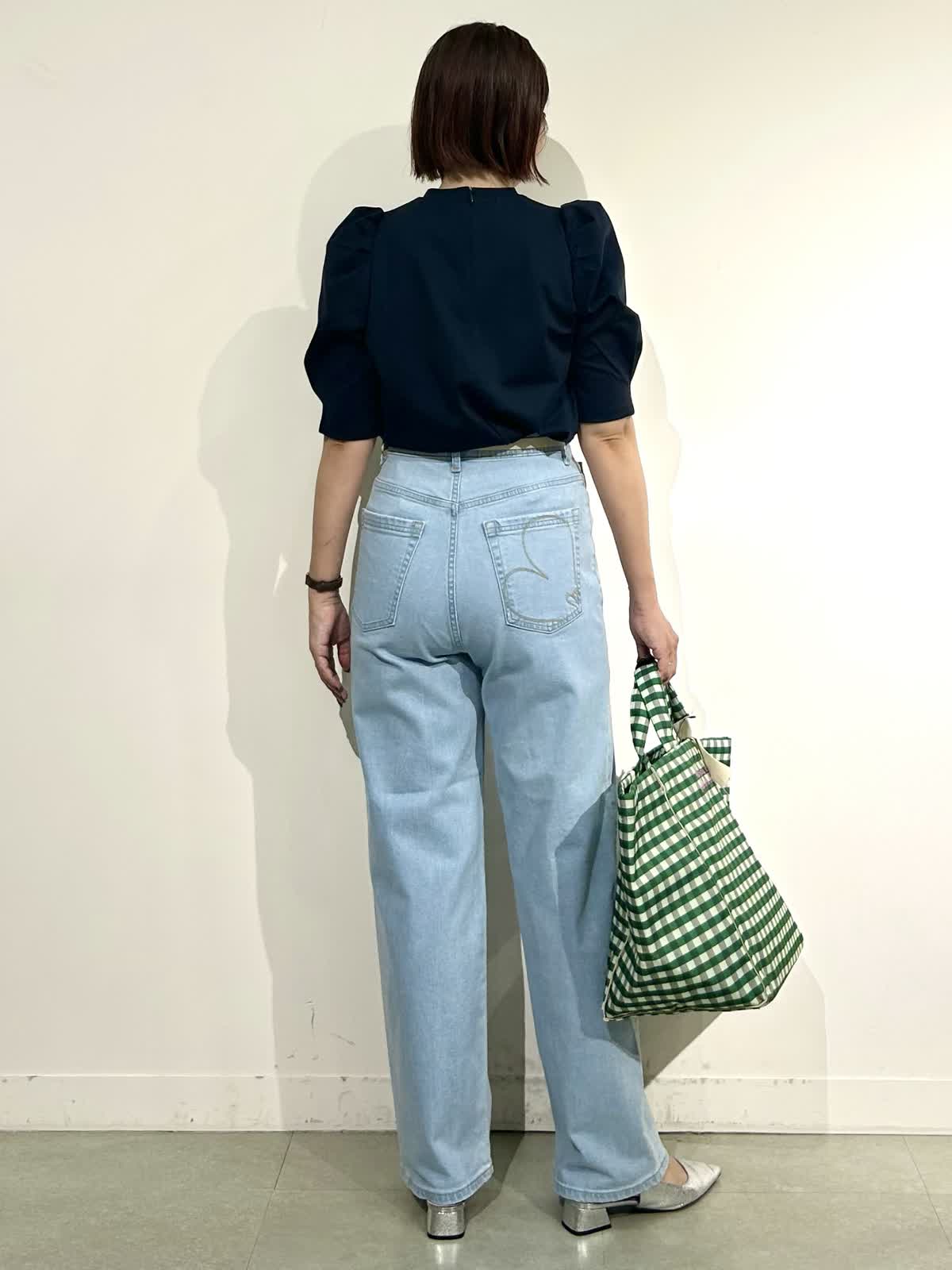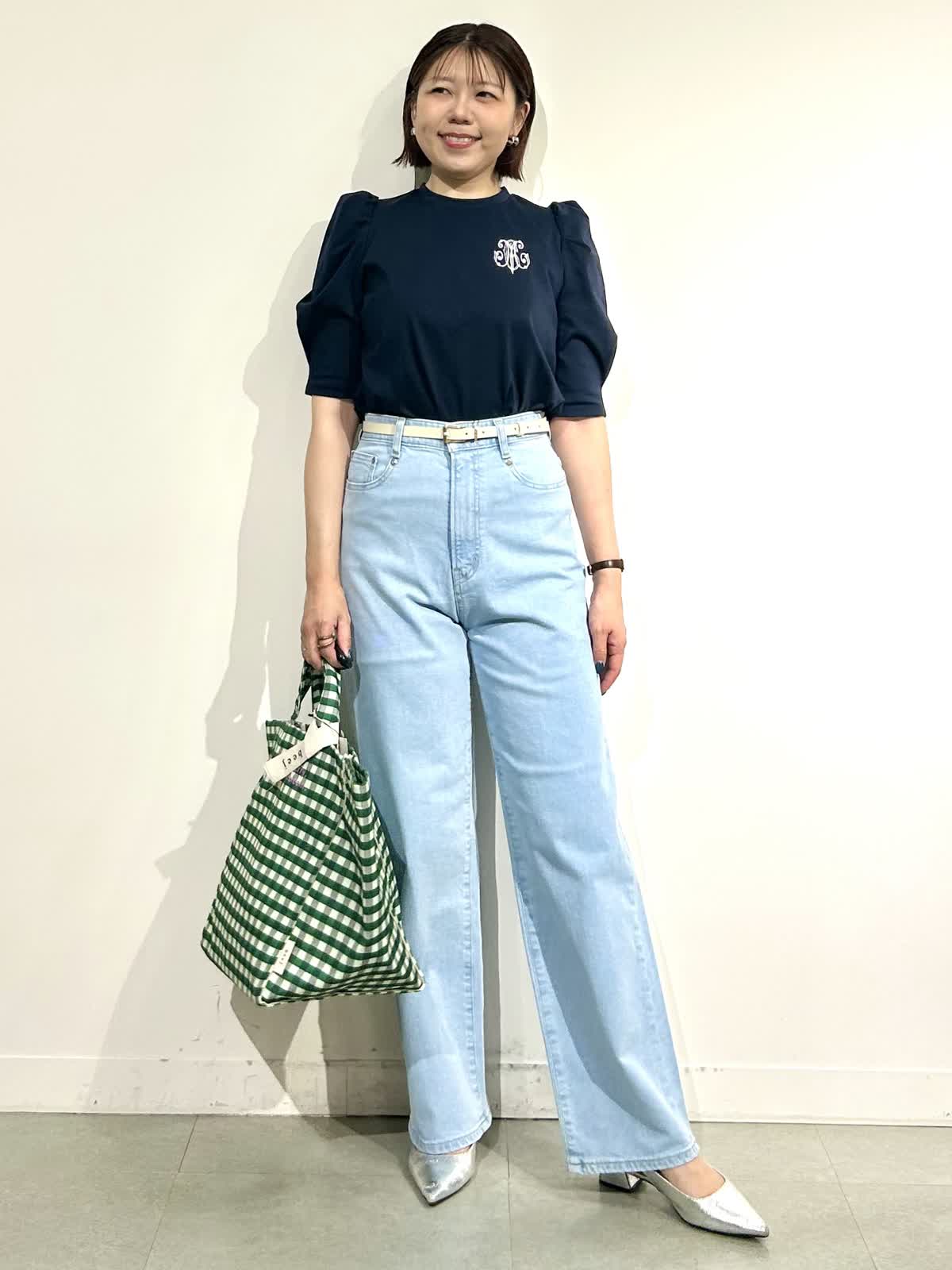 【着用カラー】カットソー:ネイビー デニム:アイボリー ベルト: アイボリー