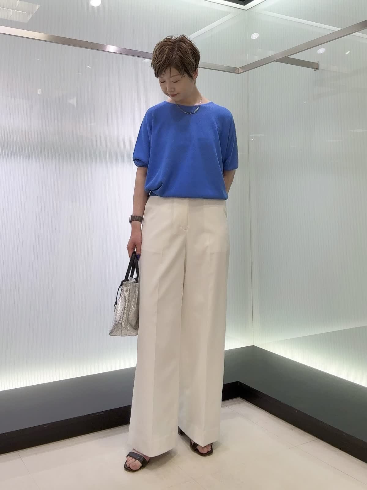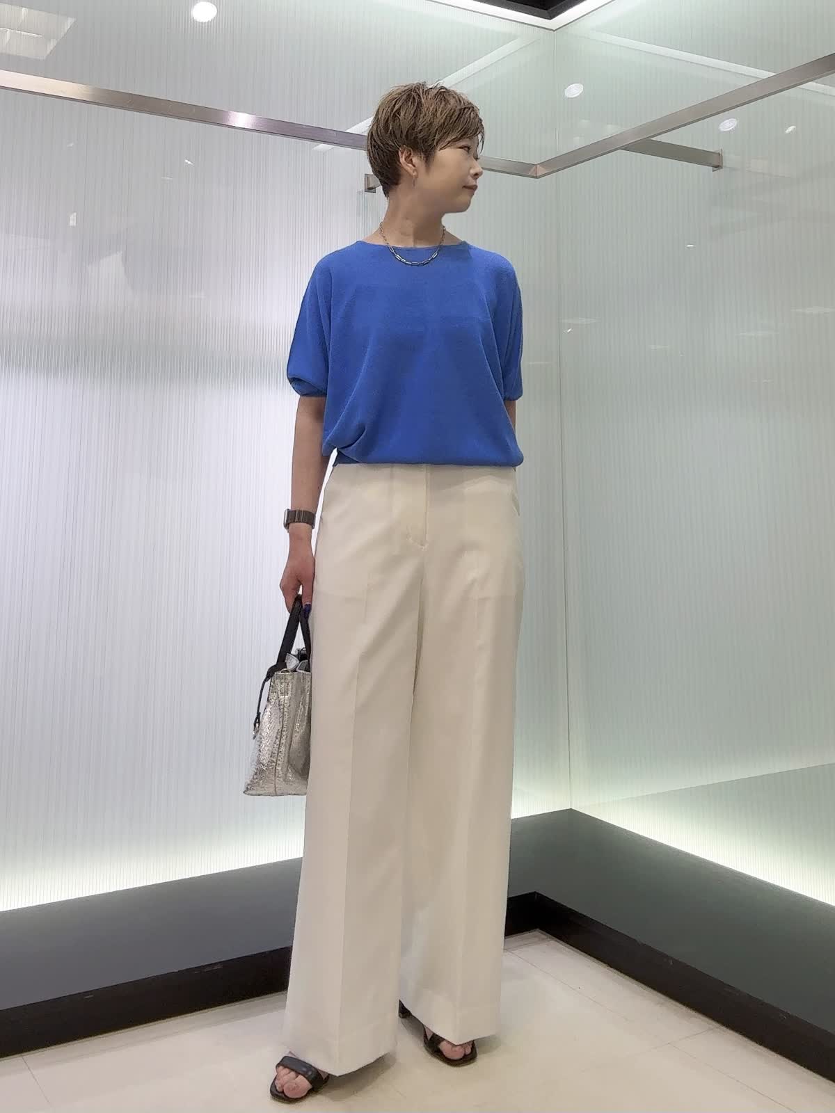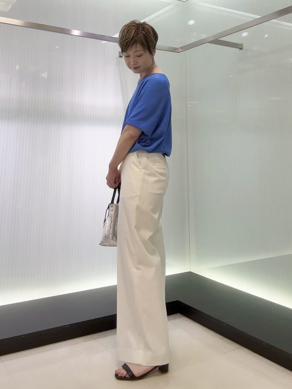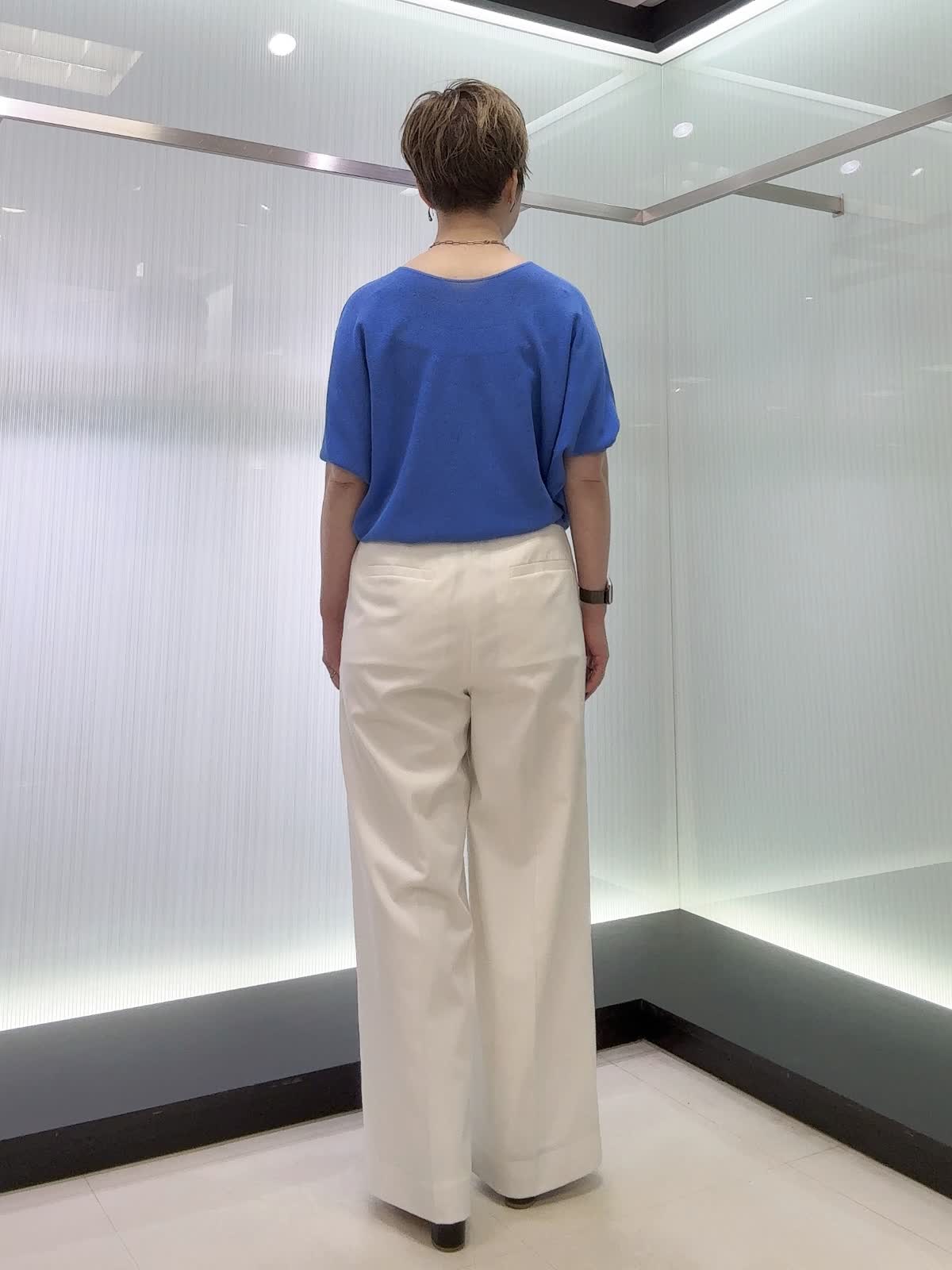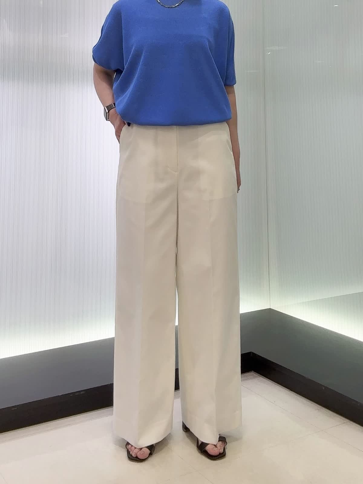 【着用カラー・サイズ】ニット : ブルー/9号 パンツ : オフホワイト/9号 ゆったりとしたニットプルオーバーは、抜群の着心地でリラクシーな雰囲気をプラス。合わせたセミワイドパンツは、程よいゆとりで動きやすく、きれい見えも叶える優秀アイテム。 オンオフ問わず活躍し、毎日の着こなしを上品にしてくれます。