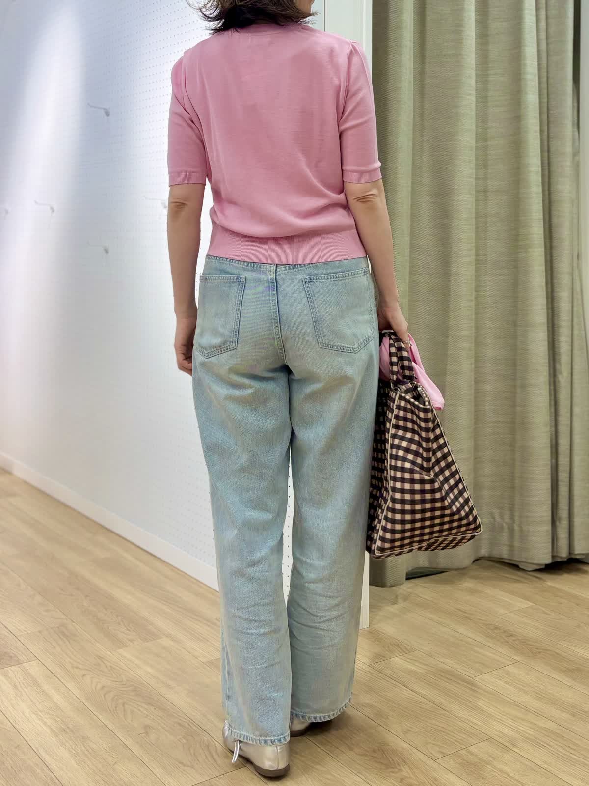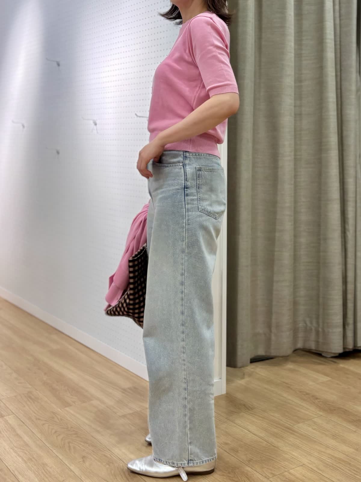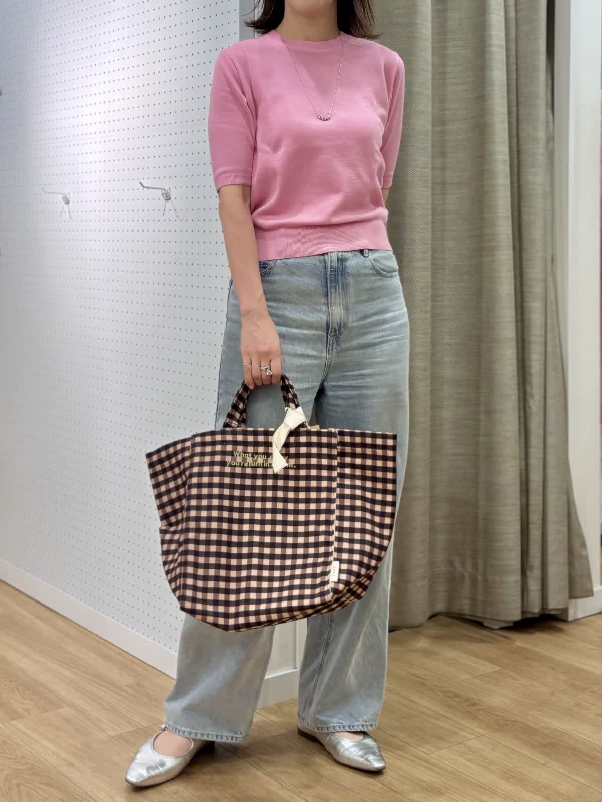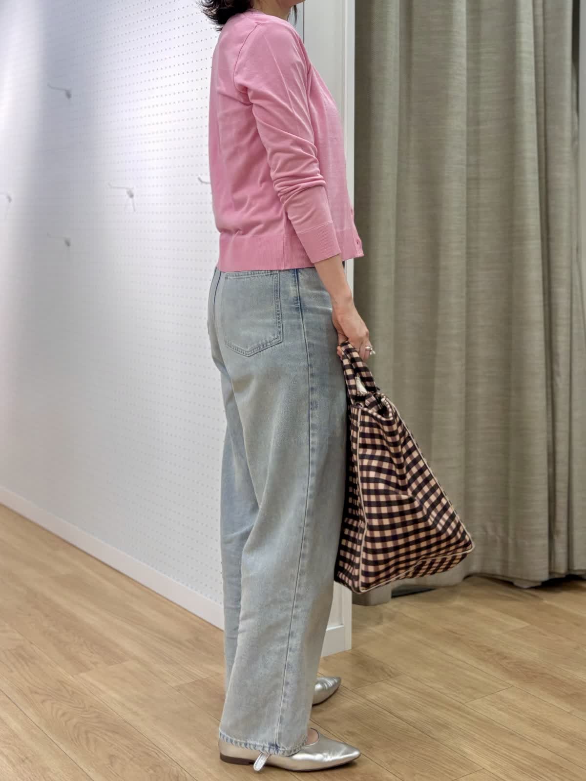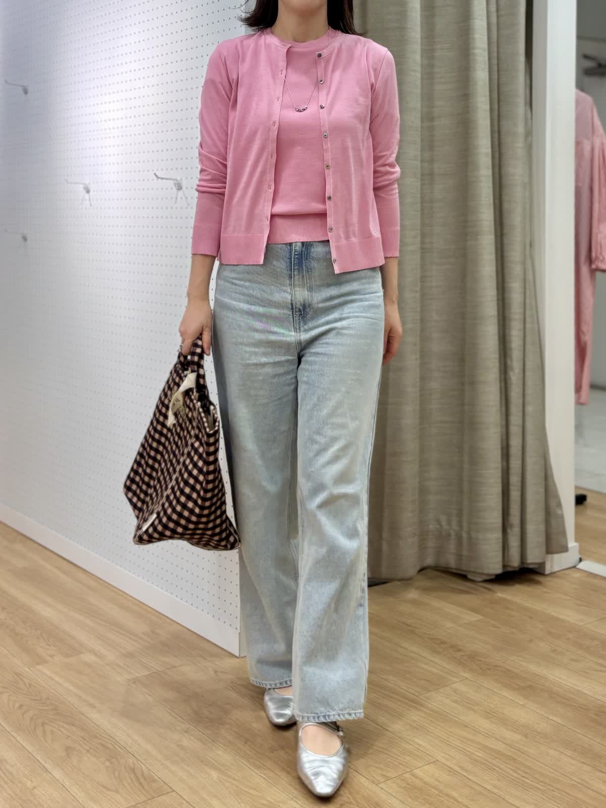 【着用カラー/サイズ】 ニット:ピンク/9号 カーディガン:ピンク/9号 パンツ:サックス/11号 初夏のお出掛けスタイリング。真夏に重宝するカーディガンとニットはコットン100%で表面の毛羽を焼くことで滑らかな手触り感と肌心地です。とても軽く薄手の生地なのでストレス無く着られます。夏のお出掛けには気分の上がるピンクがオススメです。