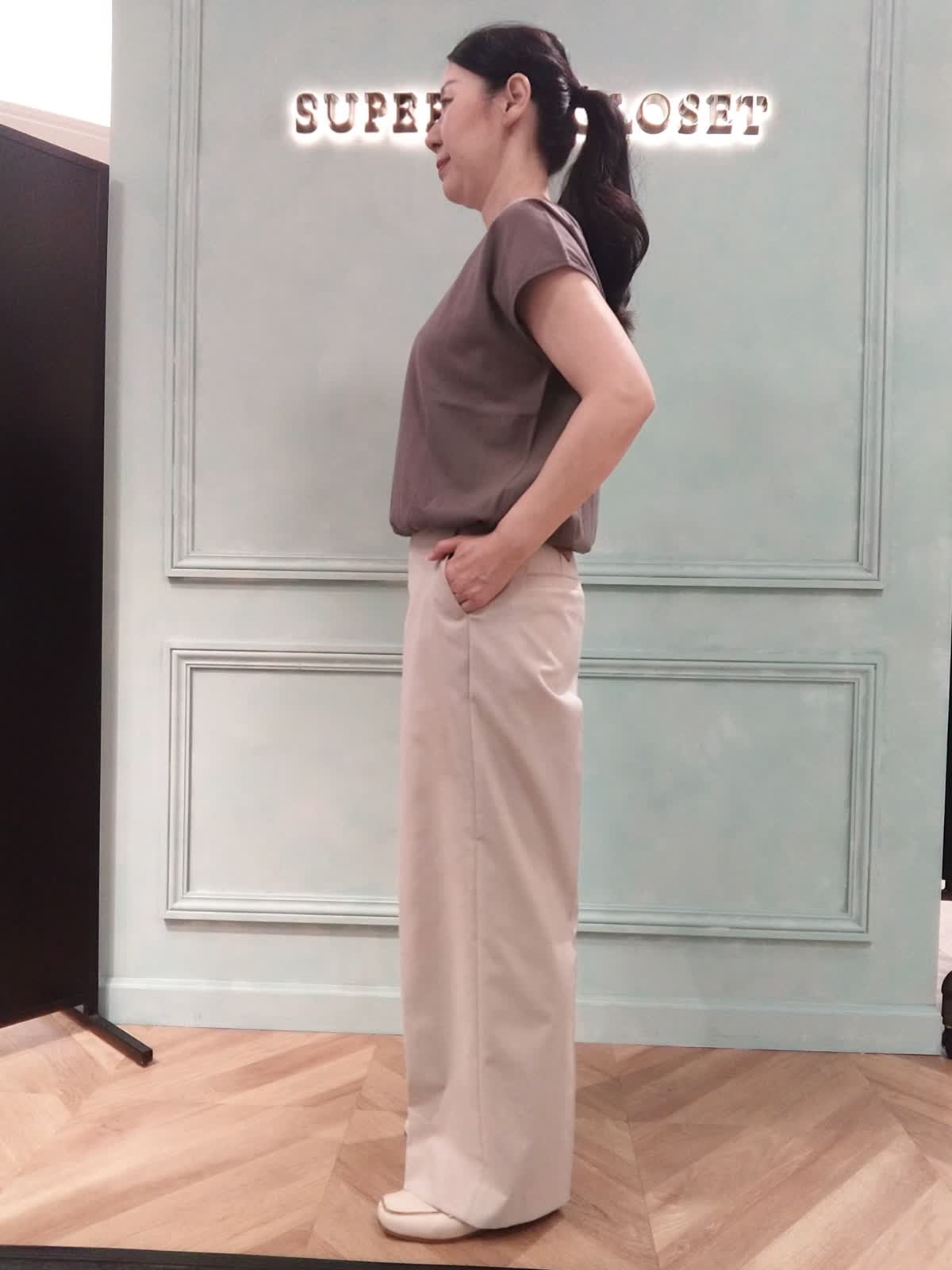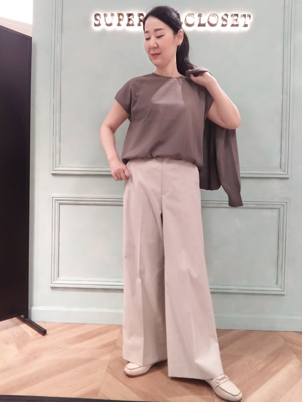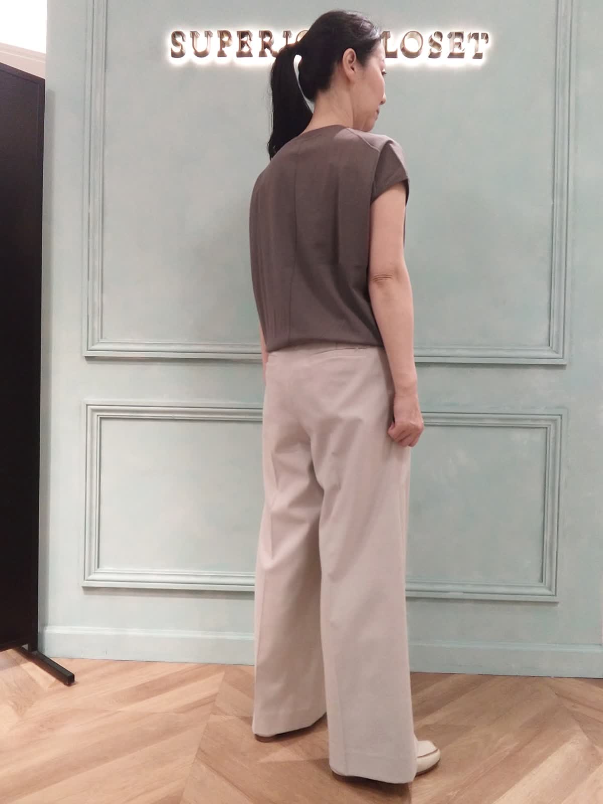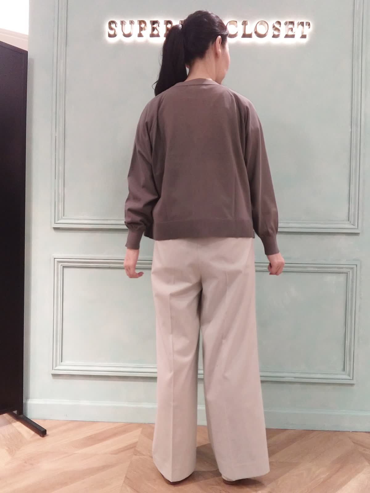 【着用サイズ】カーディガン:9号、ニット:9号、パンツ:9号 【着用カラー】カーディガン:モカチャ、ニット:モカチャ、パンツ:ベージュ 美術館めぐりにオススメのアンサンブルスタイル。1日の時間帯で温度差を感じる季節。薄手のニットアンサンブルはカーディガンを脱ぎ着して体温調節ができる便利アイテム。綿とポリエステル糸が肌当たりがやさしく、ドライタッチ。上品なモカチャの色合いと明るめベージュのパンツでコーディネート。パンツはセンタープレスがあり、スッキリ脚長効果が期待できます。ウエスト後ろゴムでラクな履き心地です。