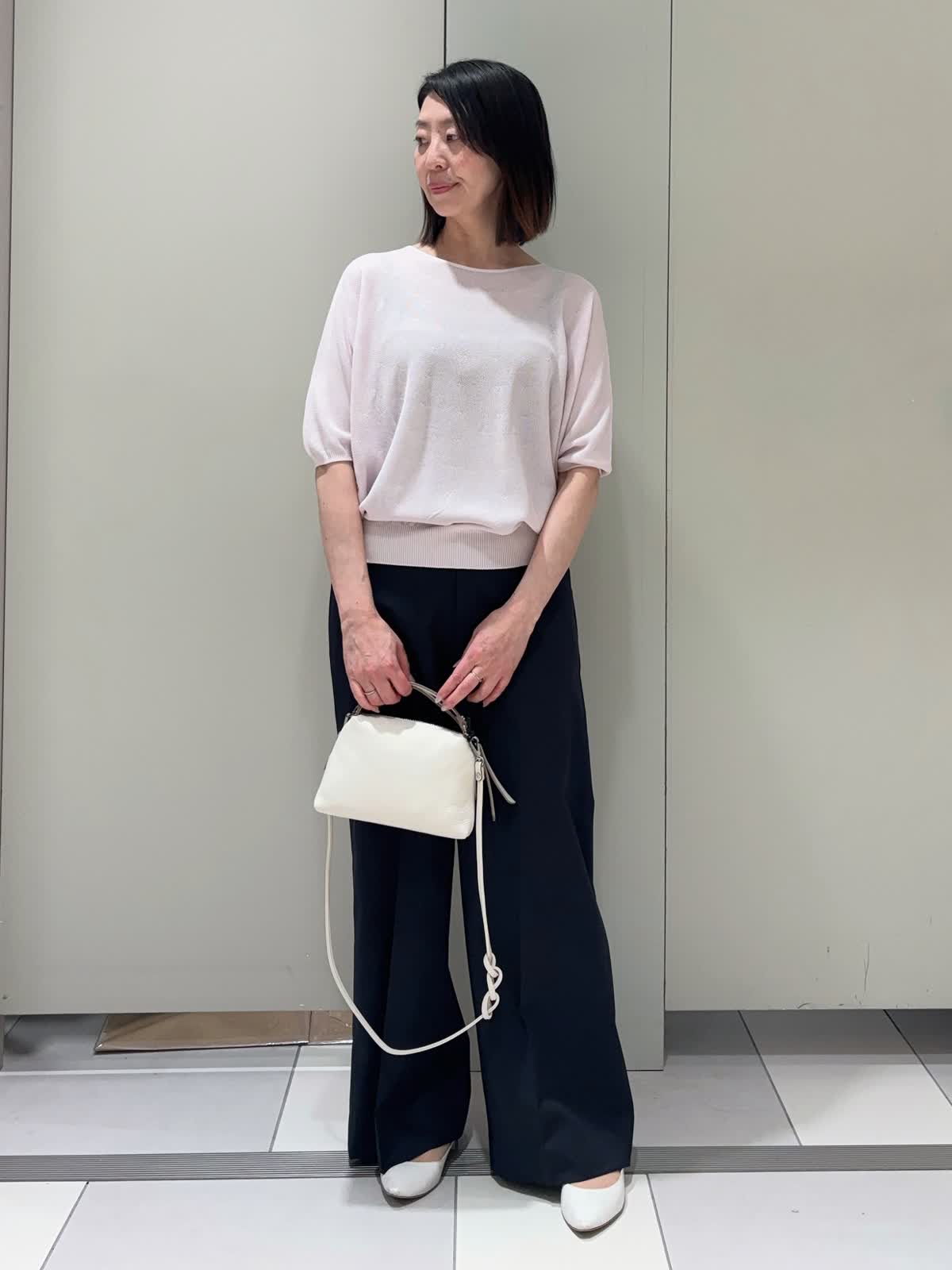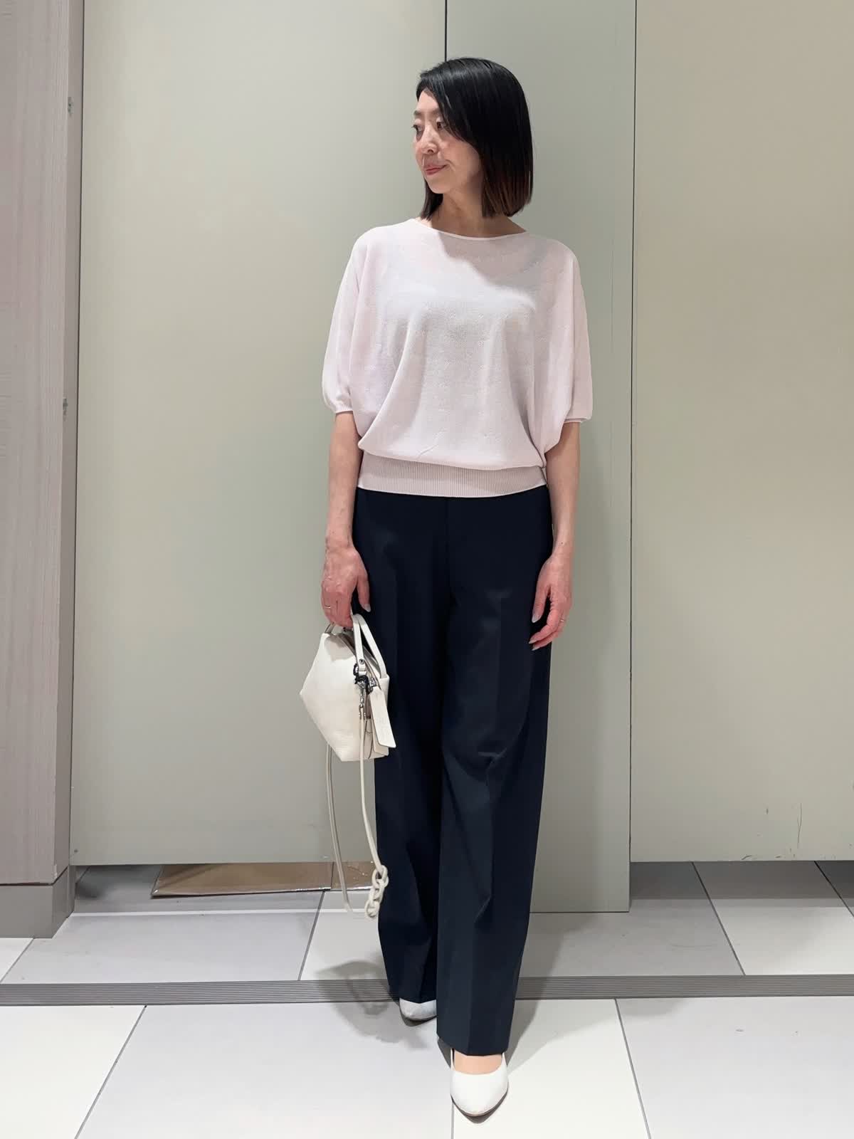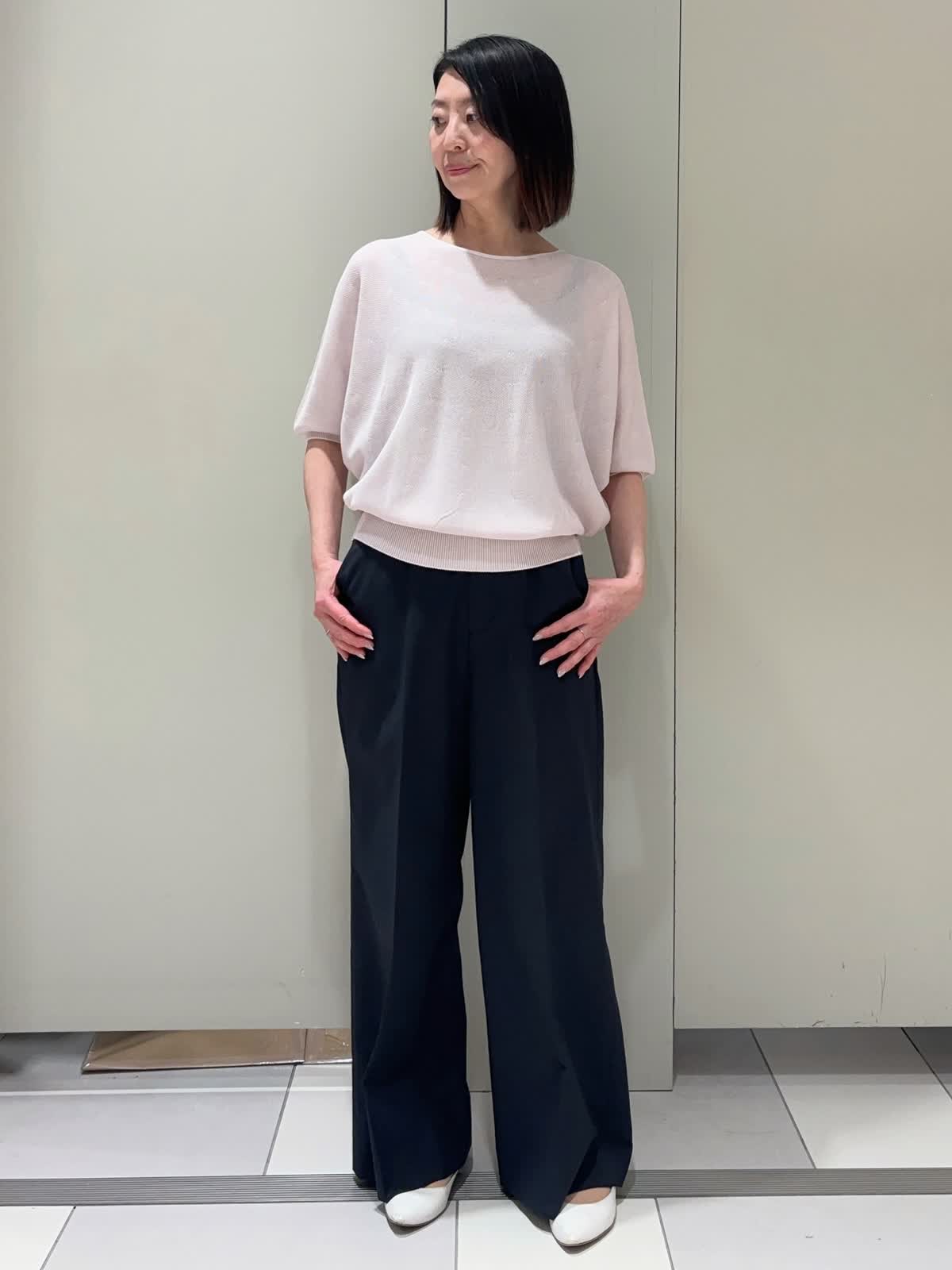 【着用サイズ】ニット:9号 パンツ:7号 【着用カラー】ニット:グレイッシュピンク パンツ:ネイビー バッグ:オフホワイト シンプルで使いやすいドルマンスリーブニット。毎年人気のCuooシリーズです。さらっとした着心地と五分袖でこれからの季節にぴったりです。 ピンクも甘すぎない色味なので、挑戦しやすくコーデに取り入れやすいです。