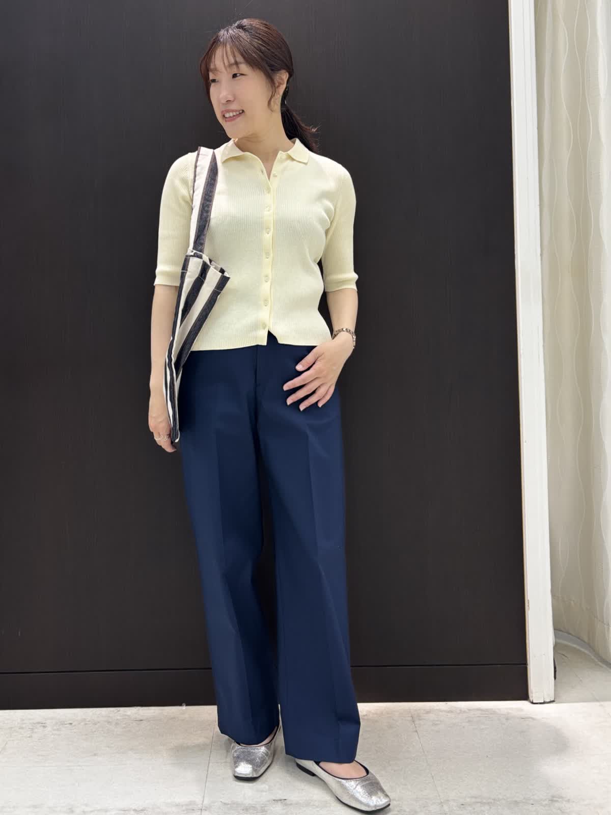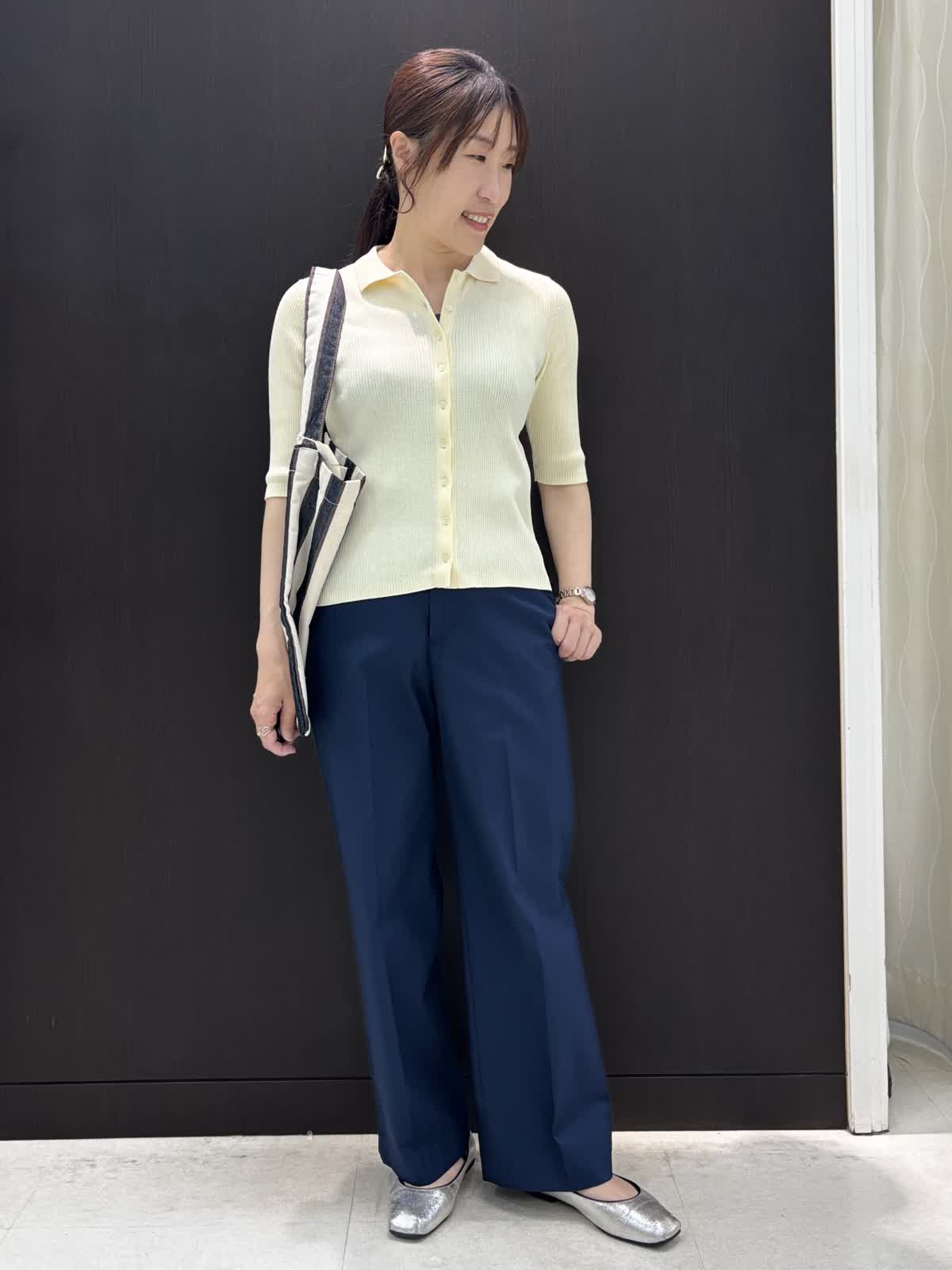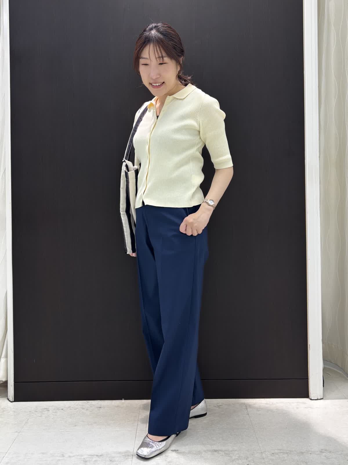【着用カラー】ニット:イエロー パンツ:ネイビー バッグ:ブラック