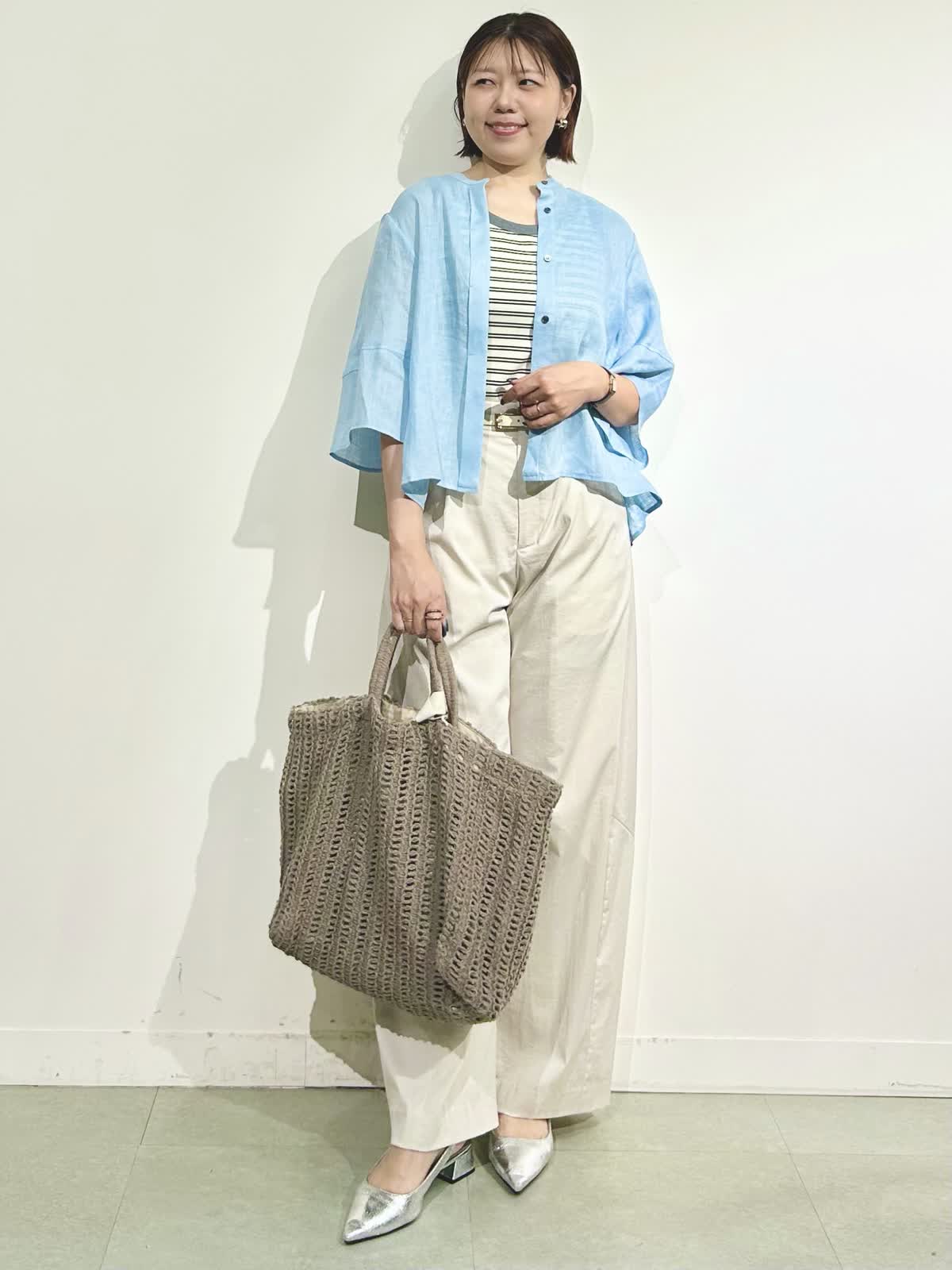 爽やかに明るく着られるコーデにしています。リネンシャツは上質生地なのでチクチク感がなくガサつきゼロです。