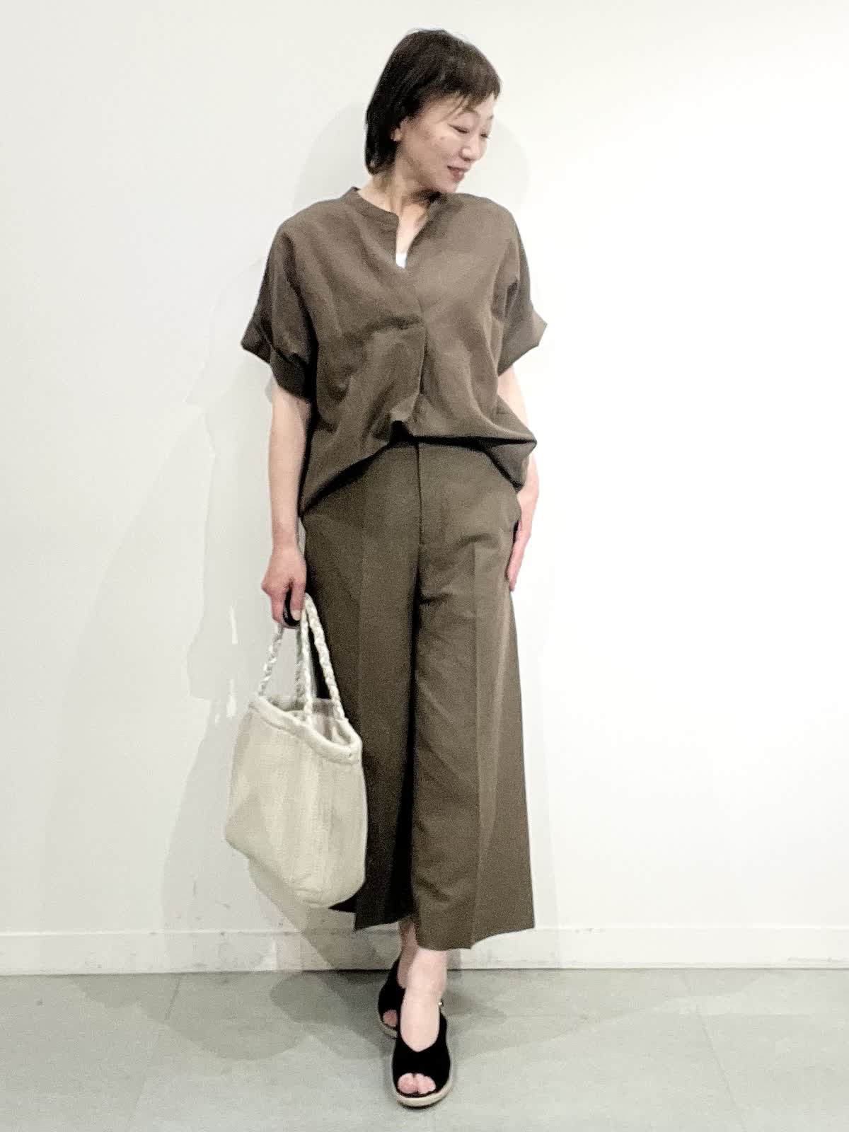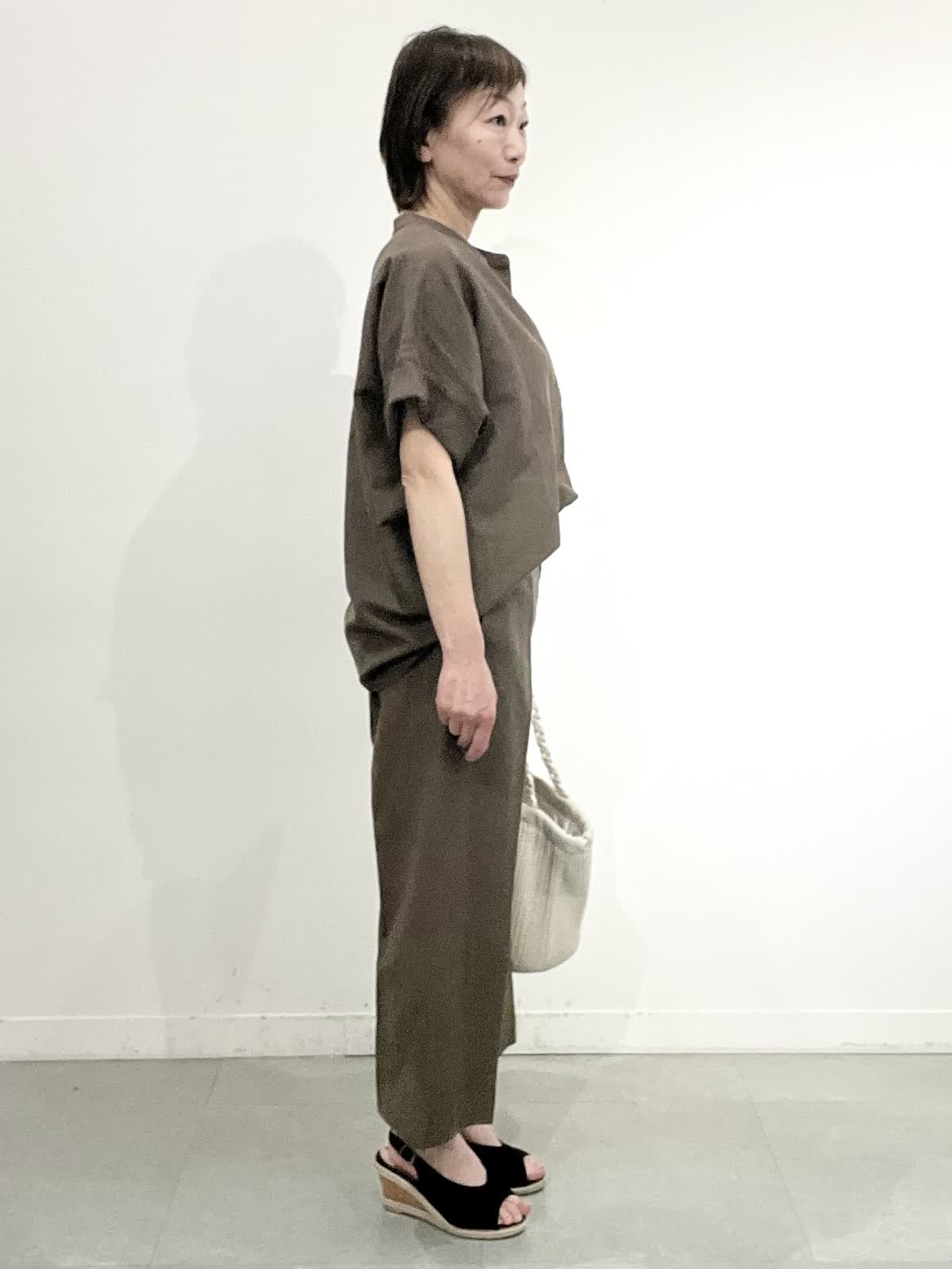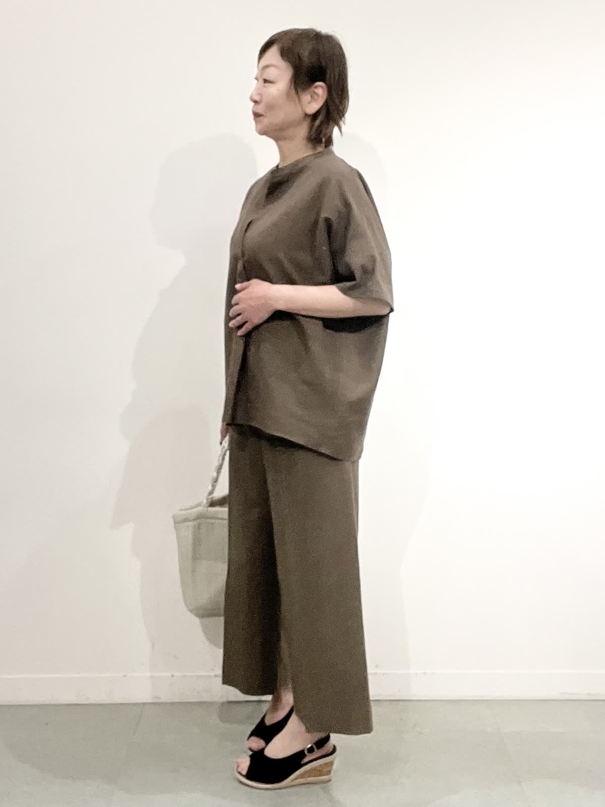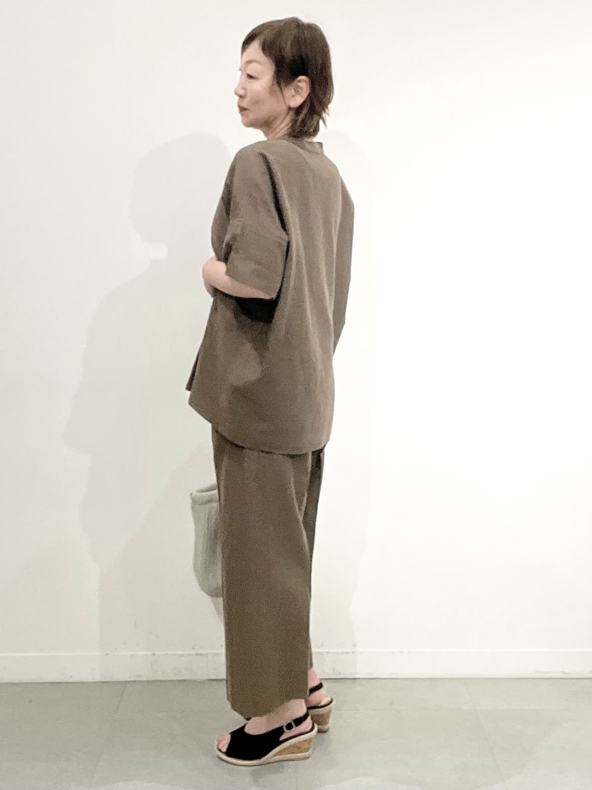 【着用サイズ】全て09 リネンセットアップ。とても柔らかな膨らみのある素材です。 シャツ、パンツそれぞれ着回しがしやすく、オンオフどちらにでもお使いいただけます。 セミワイドのパンツは着丈が短めのクロップドパンツ。夏場は足元が軽く見えます。 どちらともご自宅でお洗濯できます。