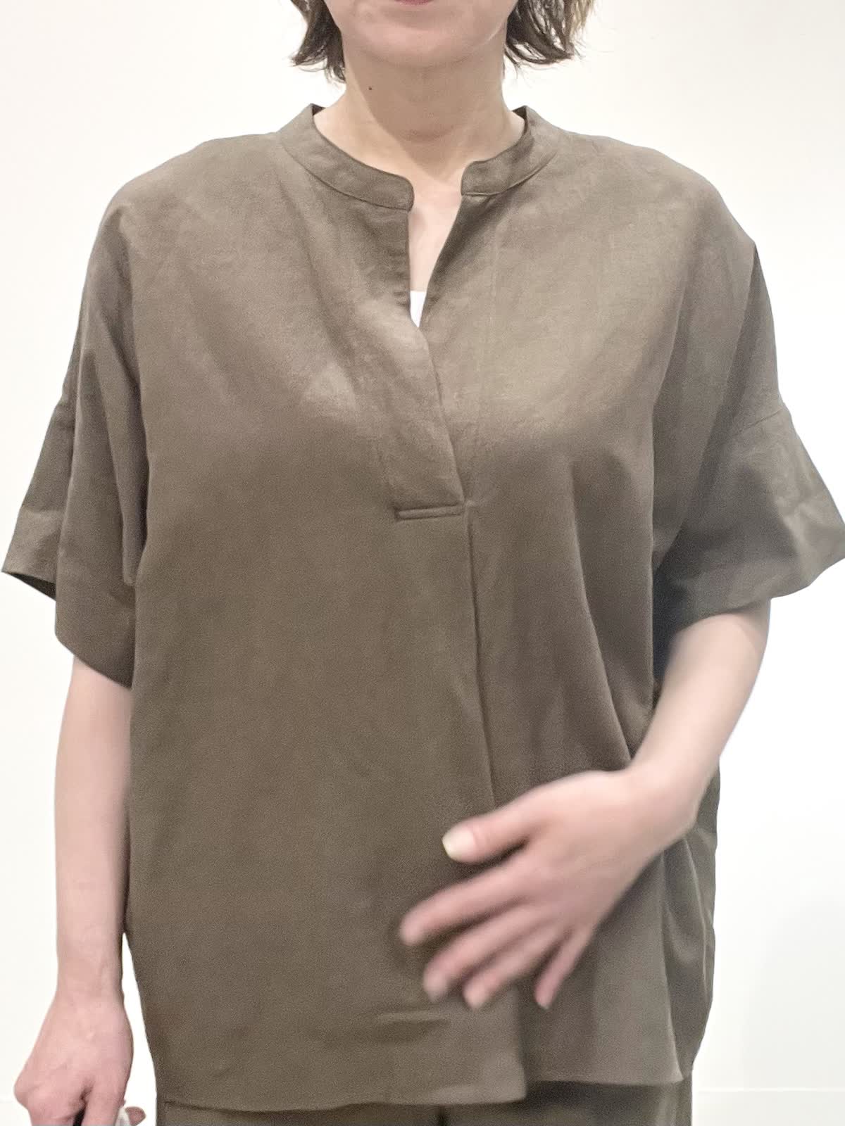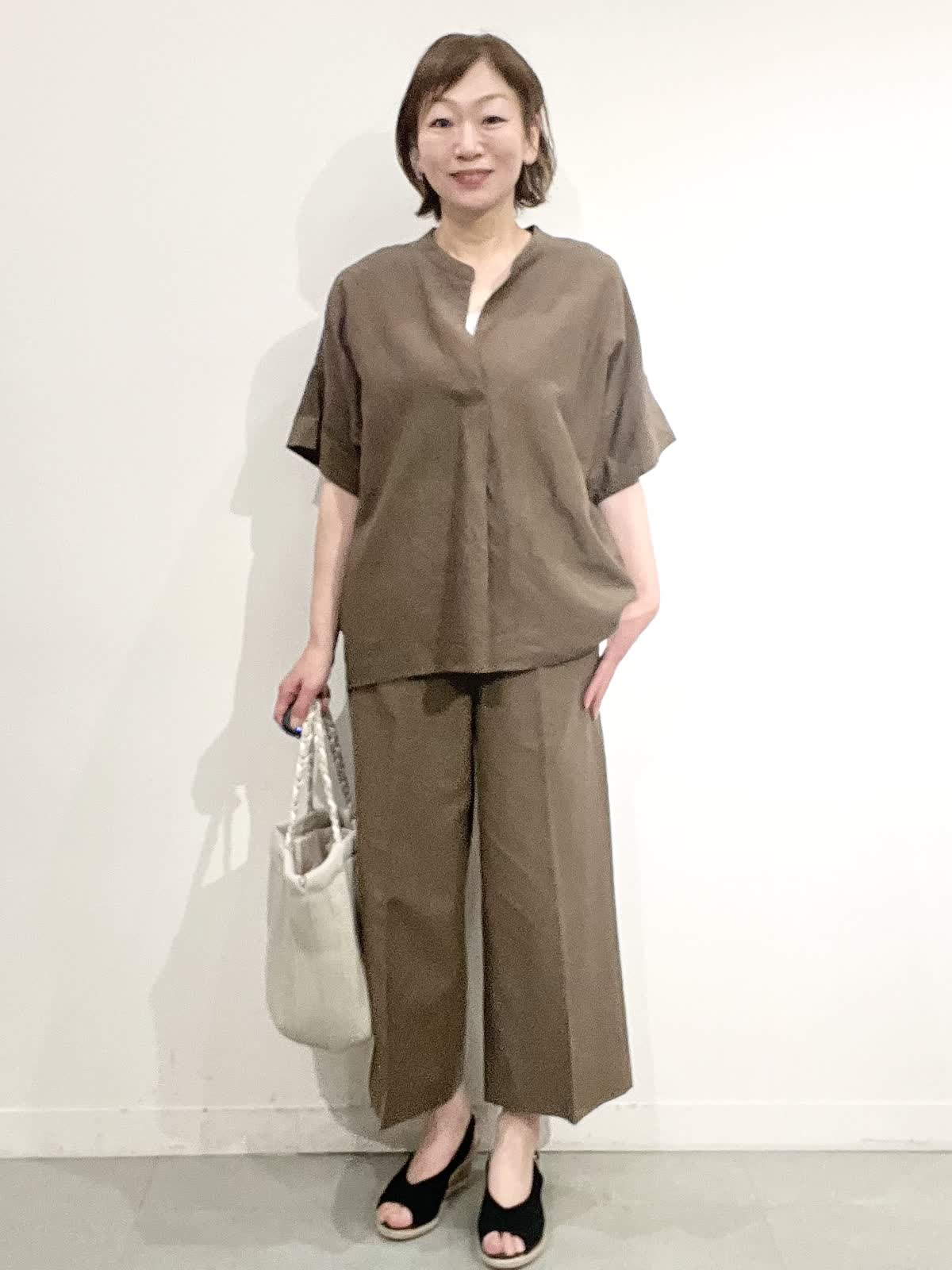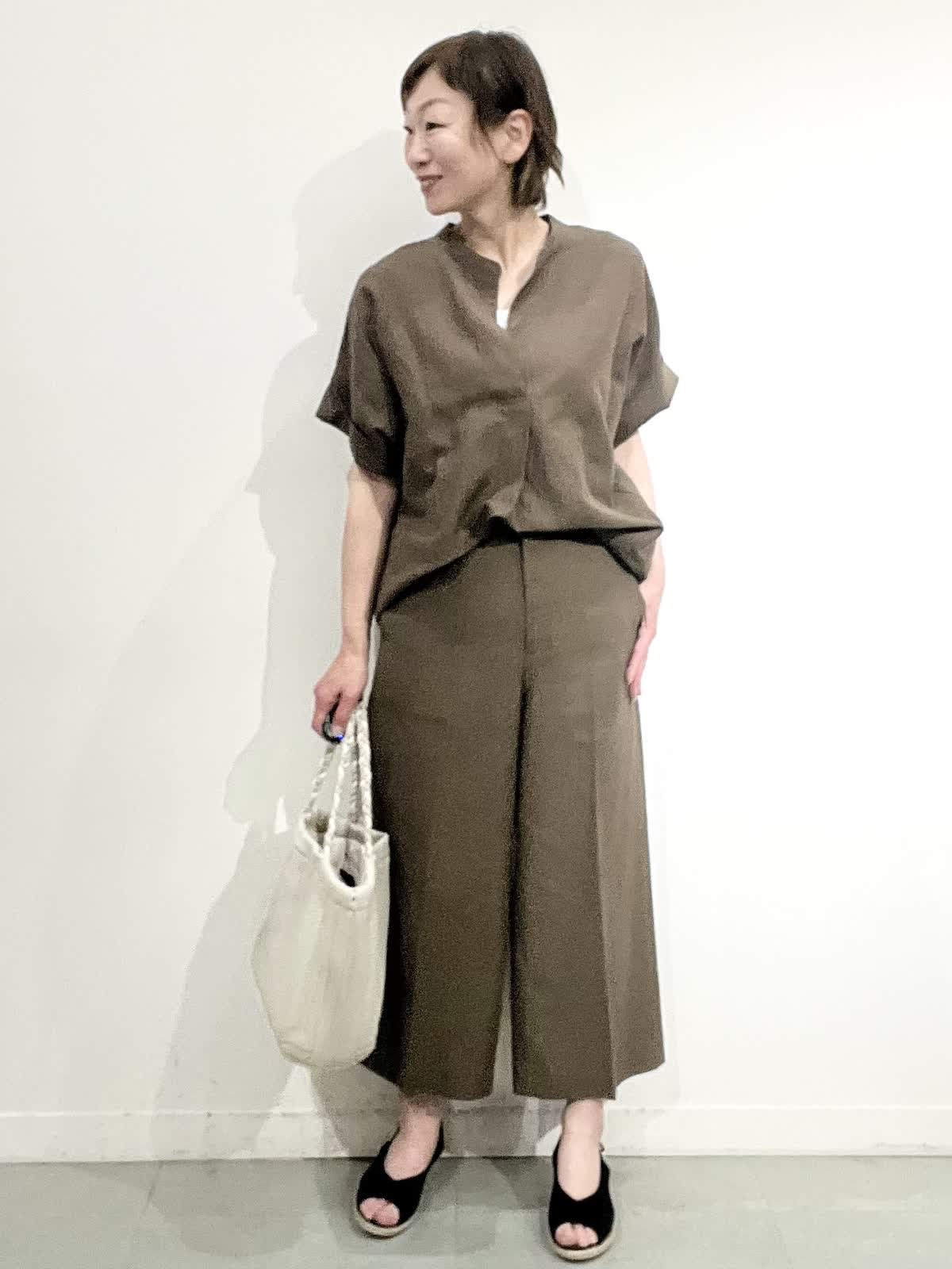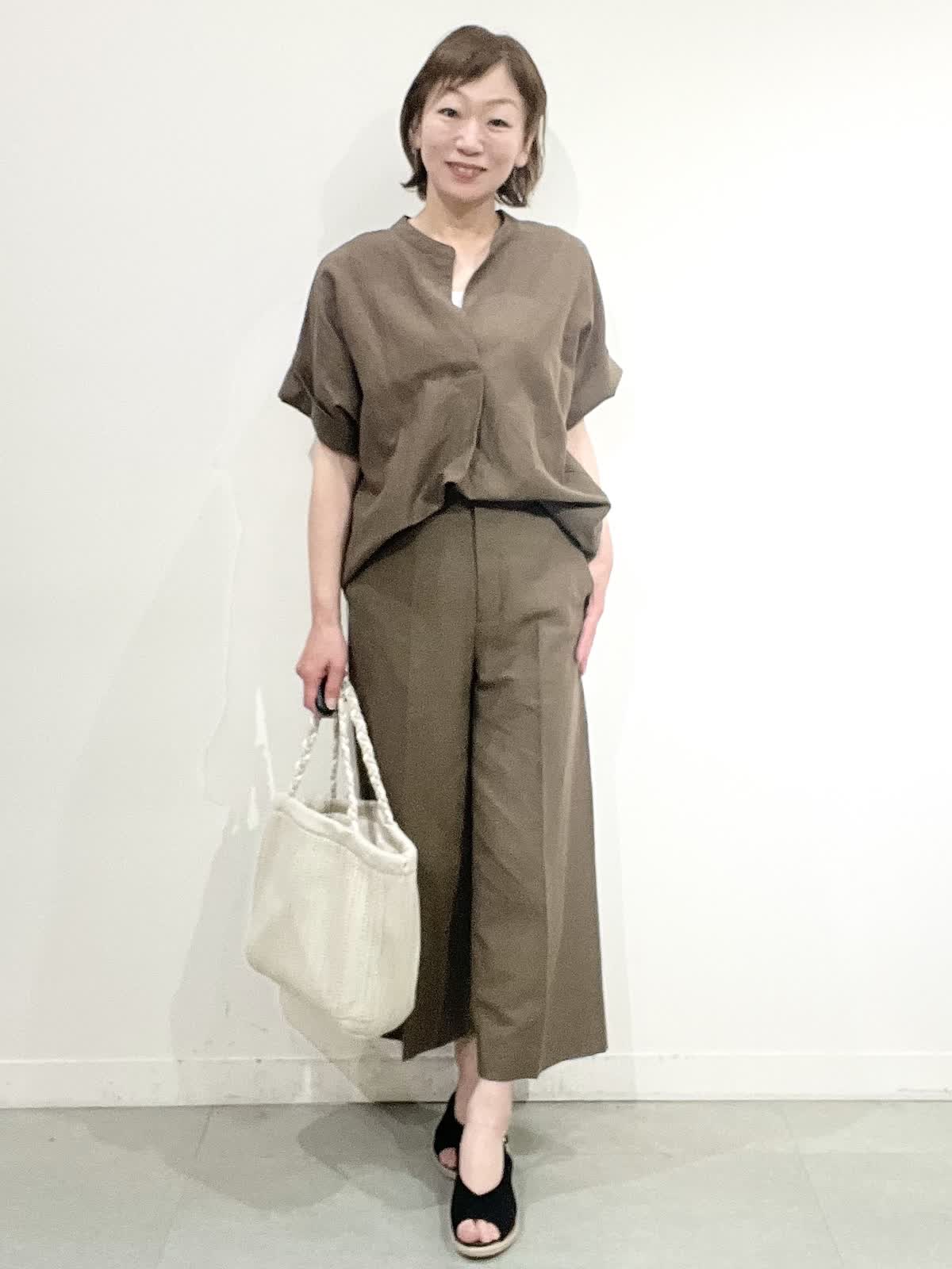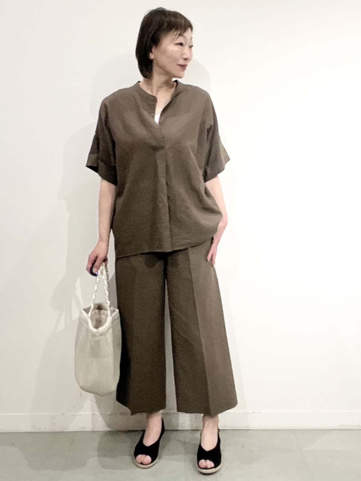 【着用サイズ】全て09 リネンセットアップ。とても柔らかな膨らみのある素材です。 シャツ、パンツそれぞれ着回しがしやすく、オンオフどちらにでもお使いいただけます。 セミワイドのパンツは着丈が短めのクロップドパンツ。夏場は足元が軽く見えます。 どちらともご自宅でお洗濯できます。