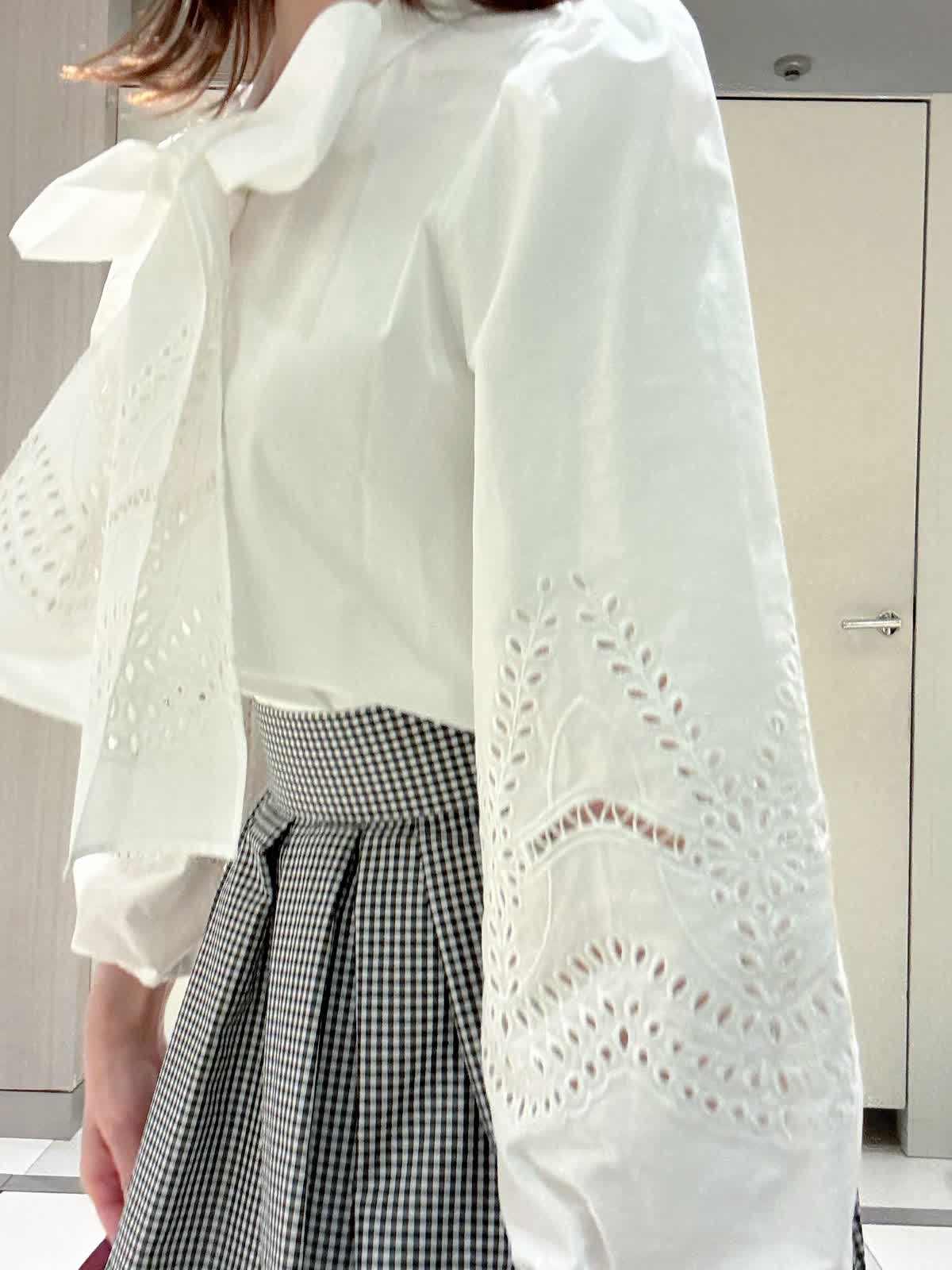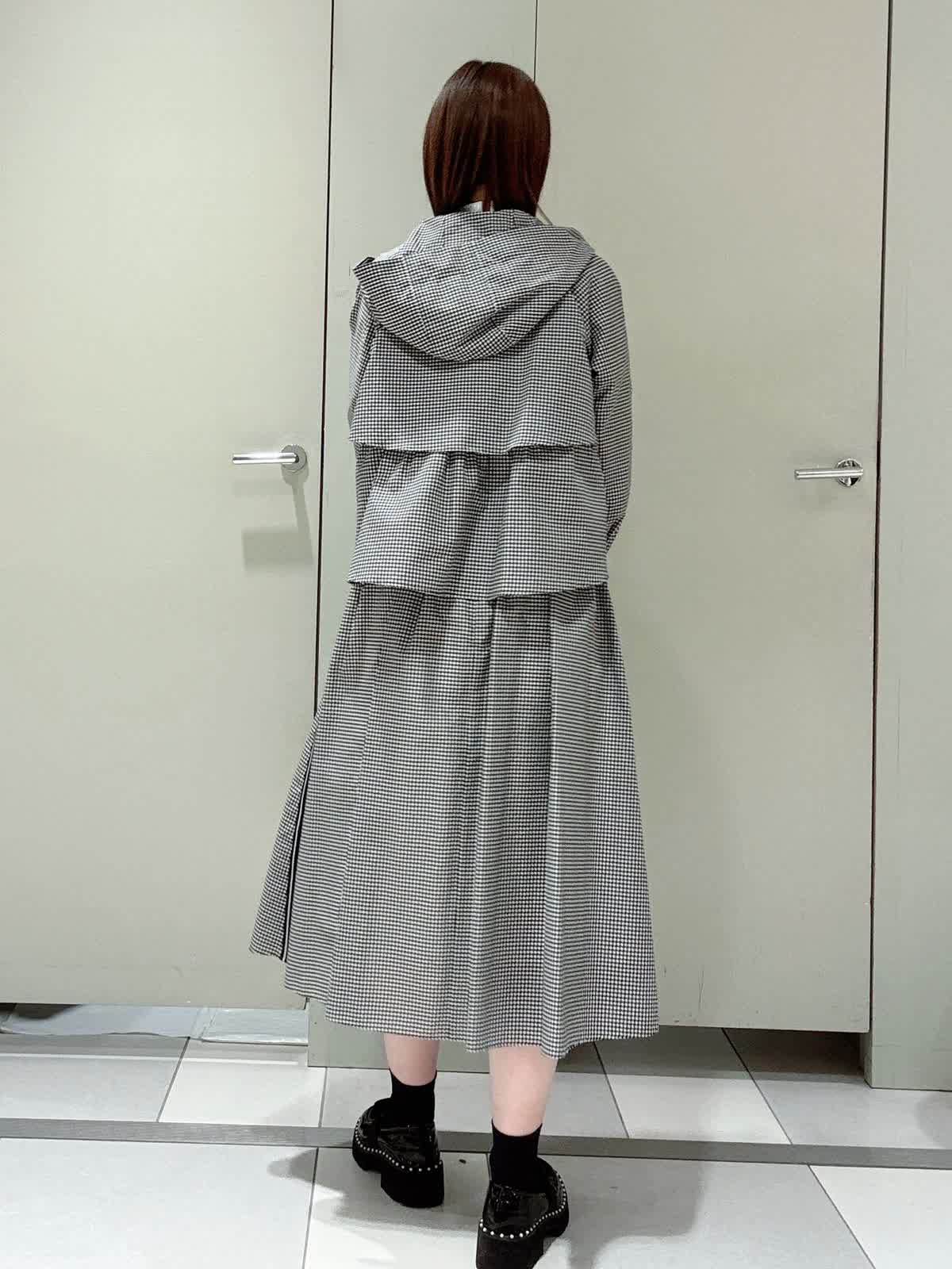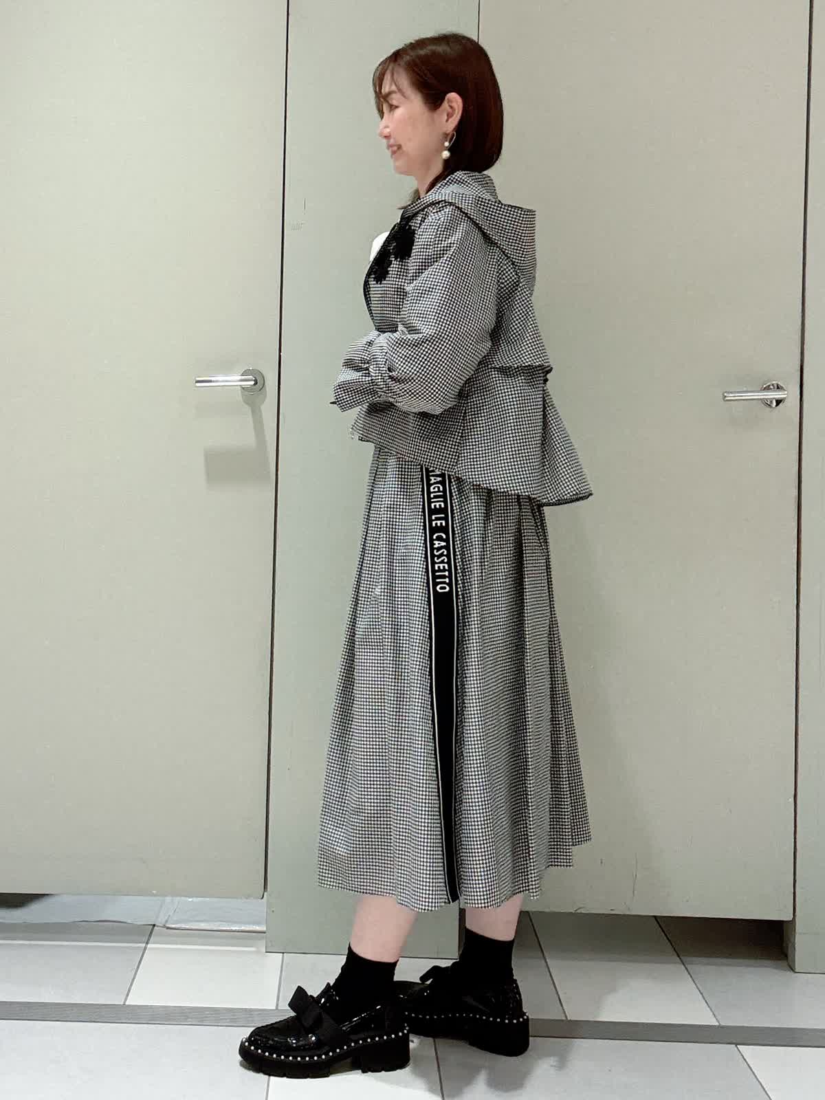 【着用サイズ/カラー】ブルゾン:7号 格子 ブラウス:9号 オフホワイト スカート:7号 格子 GWお出かけコーデ ブルゾンを脱いでもブラウス合わせでカジュアルすぎないコーディネートです。スカートにTシャツ合わせで夏も着ていただけます。