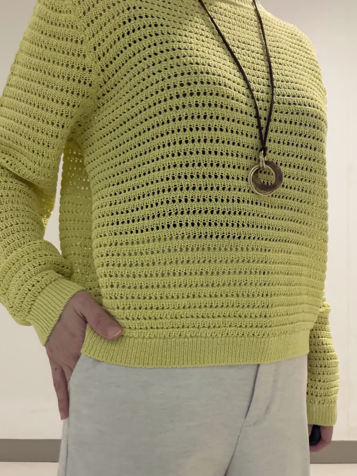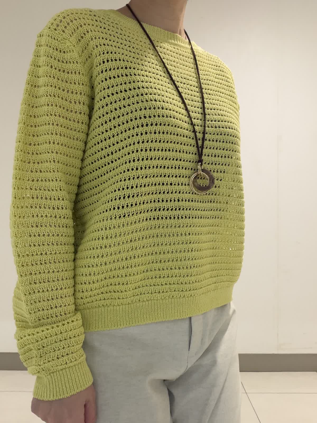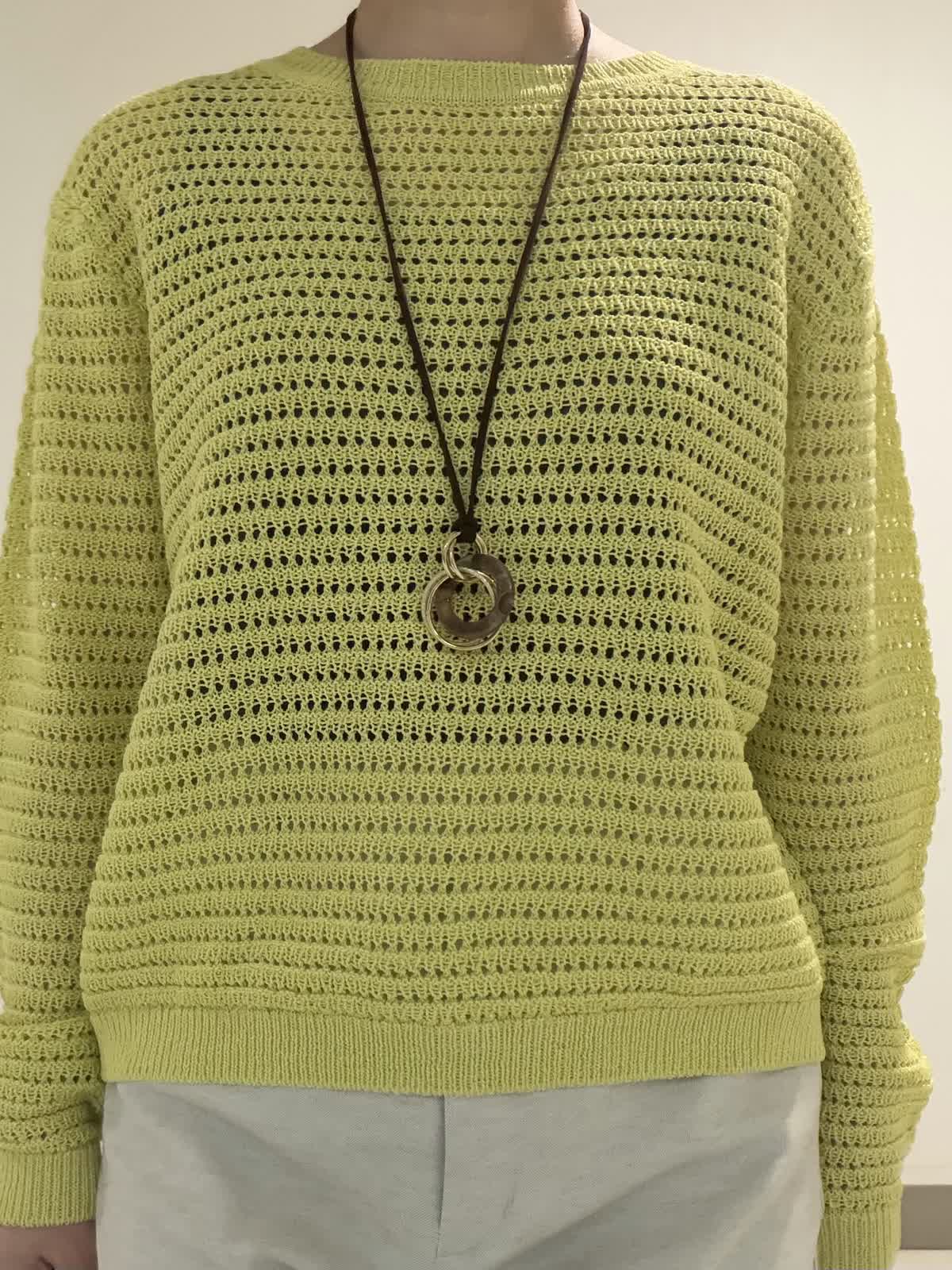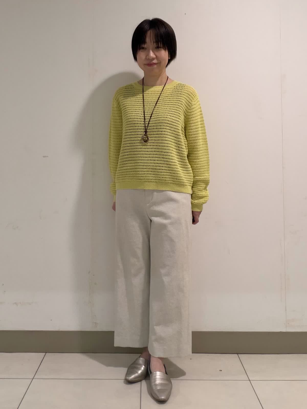 【着用サイズ】ニット:フリー パンツ:9号 透かし柄のプルオーバーニットは身体のラインを拾いにくい程良いサイズ感が◎。ボトムを選ばず着回しやすい丈感も嬉しいポイントです。パンツは綿麻混のポリエステル素材を使用した大人気のクロップトパンツ。スッキリとしながらも程良くワイド感もありバランスが取りやすいです◎。シワにもなりにくいので春のご旅行にも最適です。
