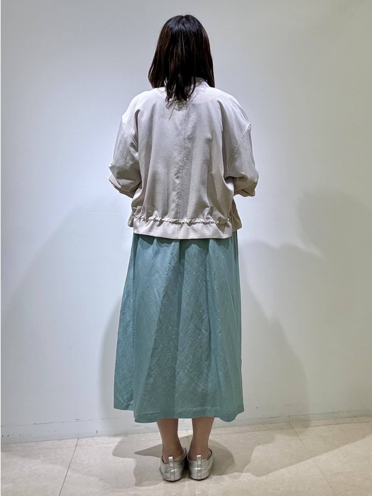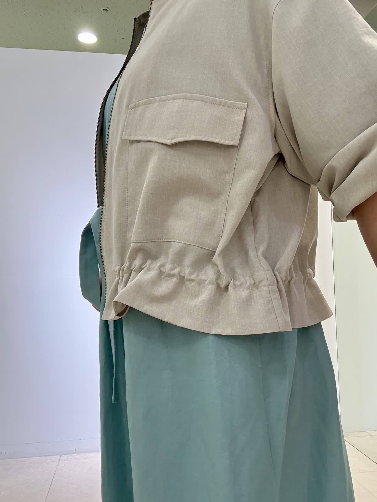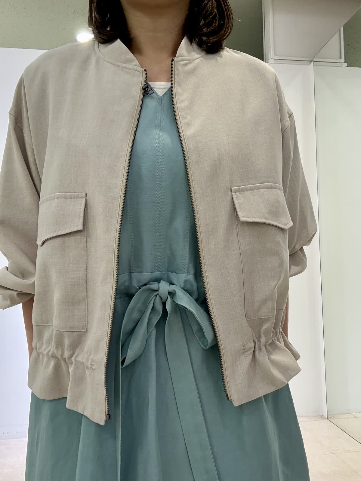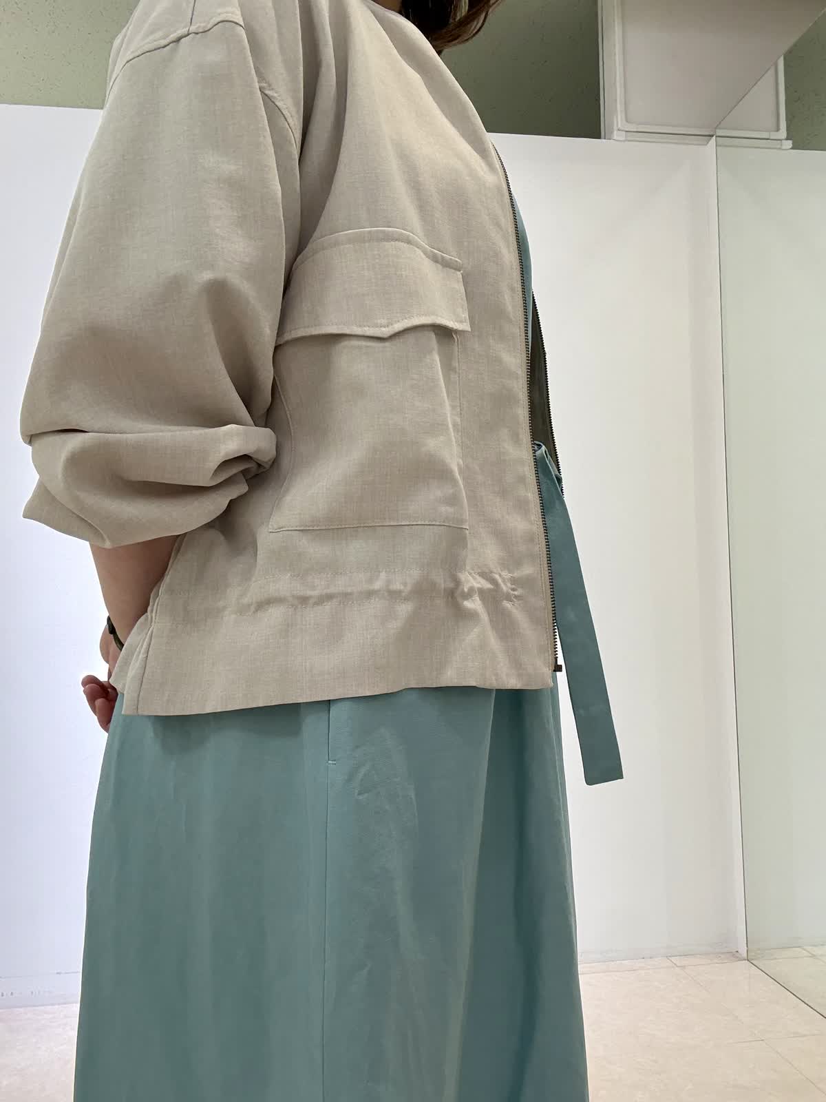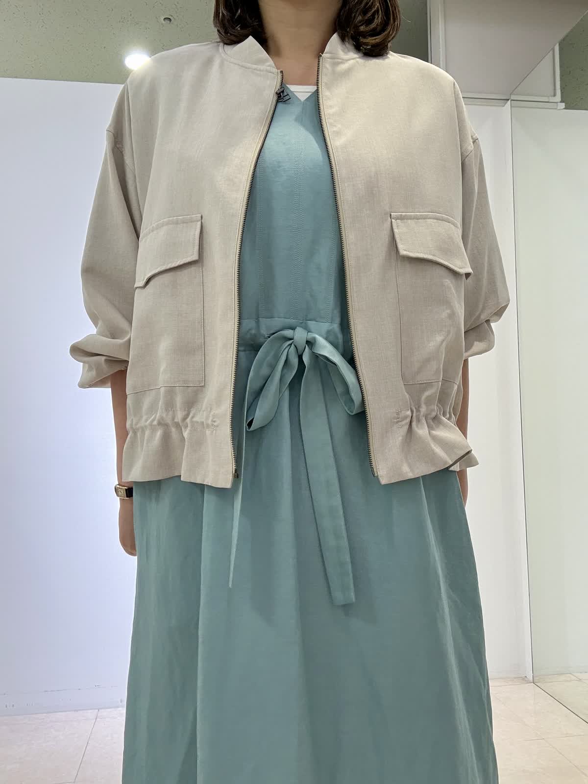 ブルゾン着用サイズ フリー リネン風ジップタイプブルゾンです。裾をクシュッとブラウジングすることができ、お好きなように調整可能です。軽くて羽織りやすいので、アウターとしては勿論、室内の冷房対策にも着用できます。ワンピース着用サイズ フリー ウエストがリボン結びになっていて透け感もなく、ゆったりと着られます。風が入って涼しいです。夏は是非サンダルで◎