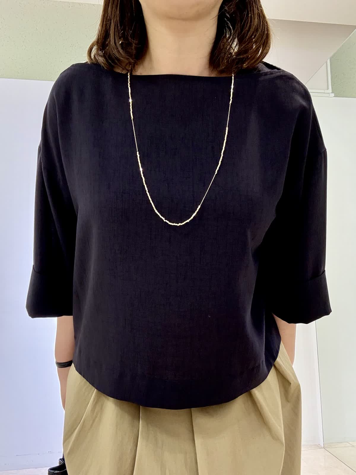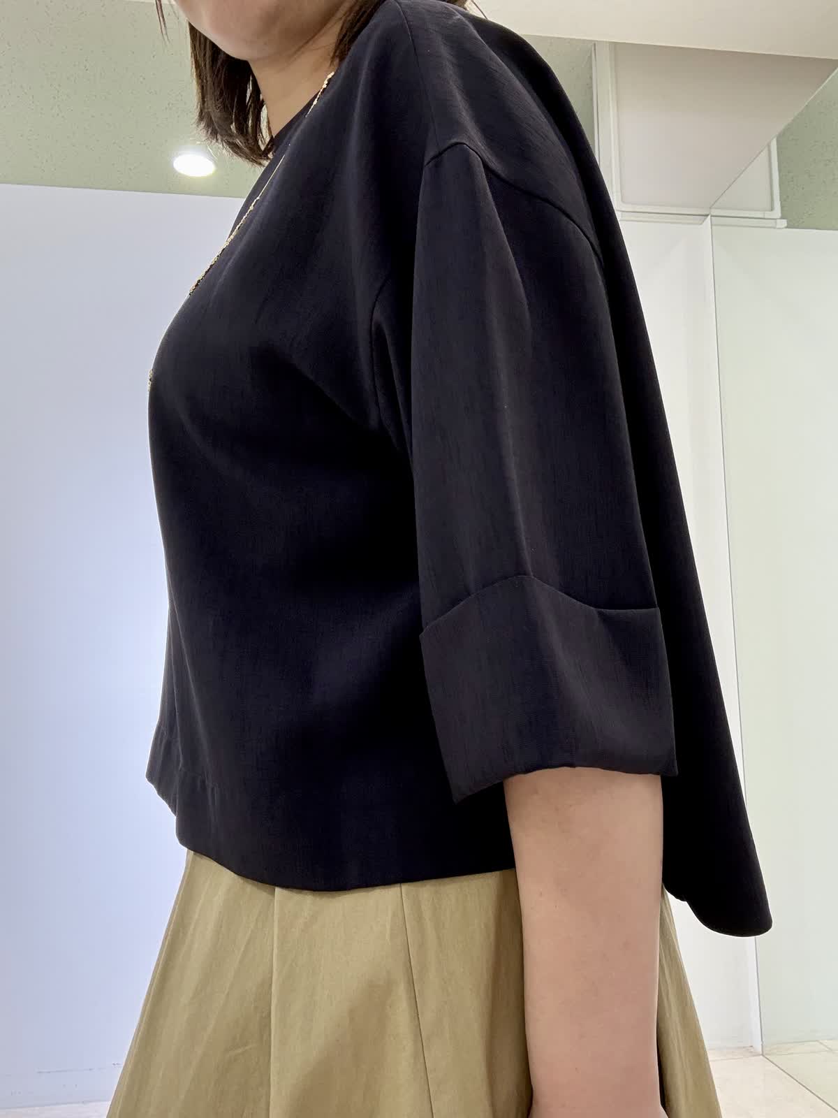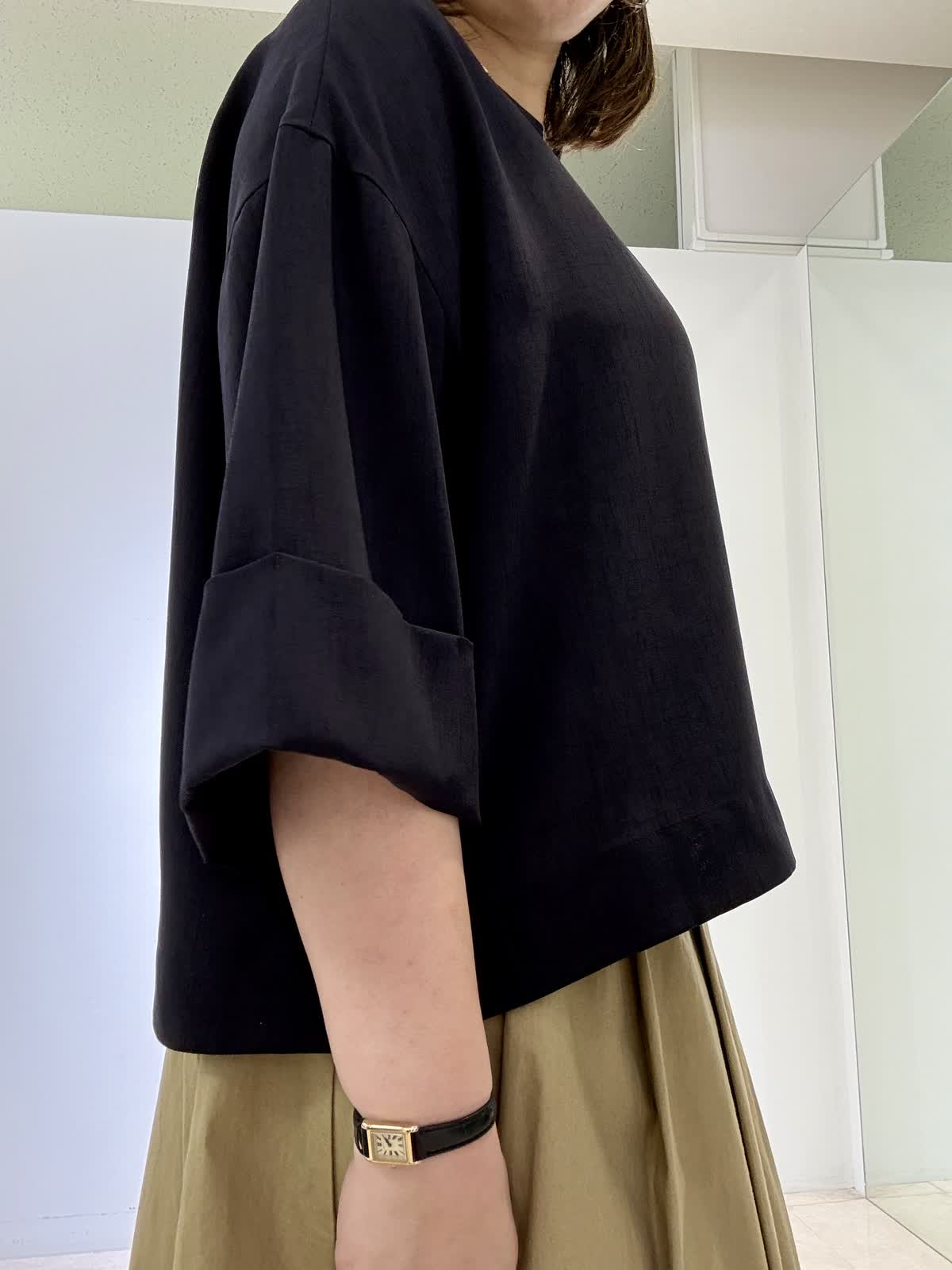 ブラウス着用サイズ フリー 初夏から早速着られるブラウスです。ボートネックで顔周りスッキリで、ゆとりのあるデザインですのでサッと着られて完成します!お袖も肘くらいまであるので気にせず着れます。 スカート着用サイズ 9号 ハリがある綿素材なので、肉感を拾わず爽やかなイメージです。ストーリーコラボ商品です。Tシャツでも可愛いですよ。茶話会や、保護者会などに。