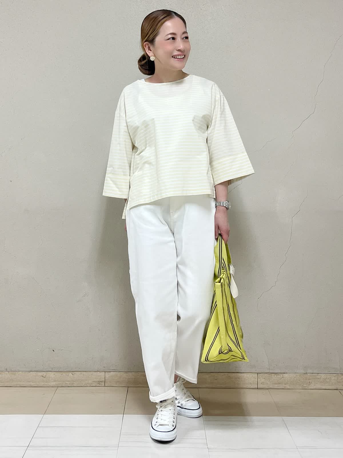 【着用カラー】ブラウス:イエロー タンクトップ:ホワイト パンツ:オフホワイト