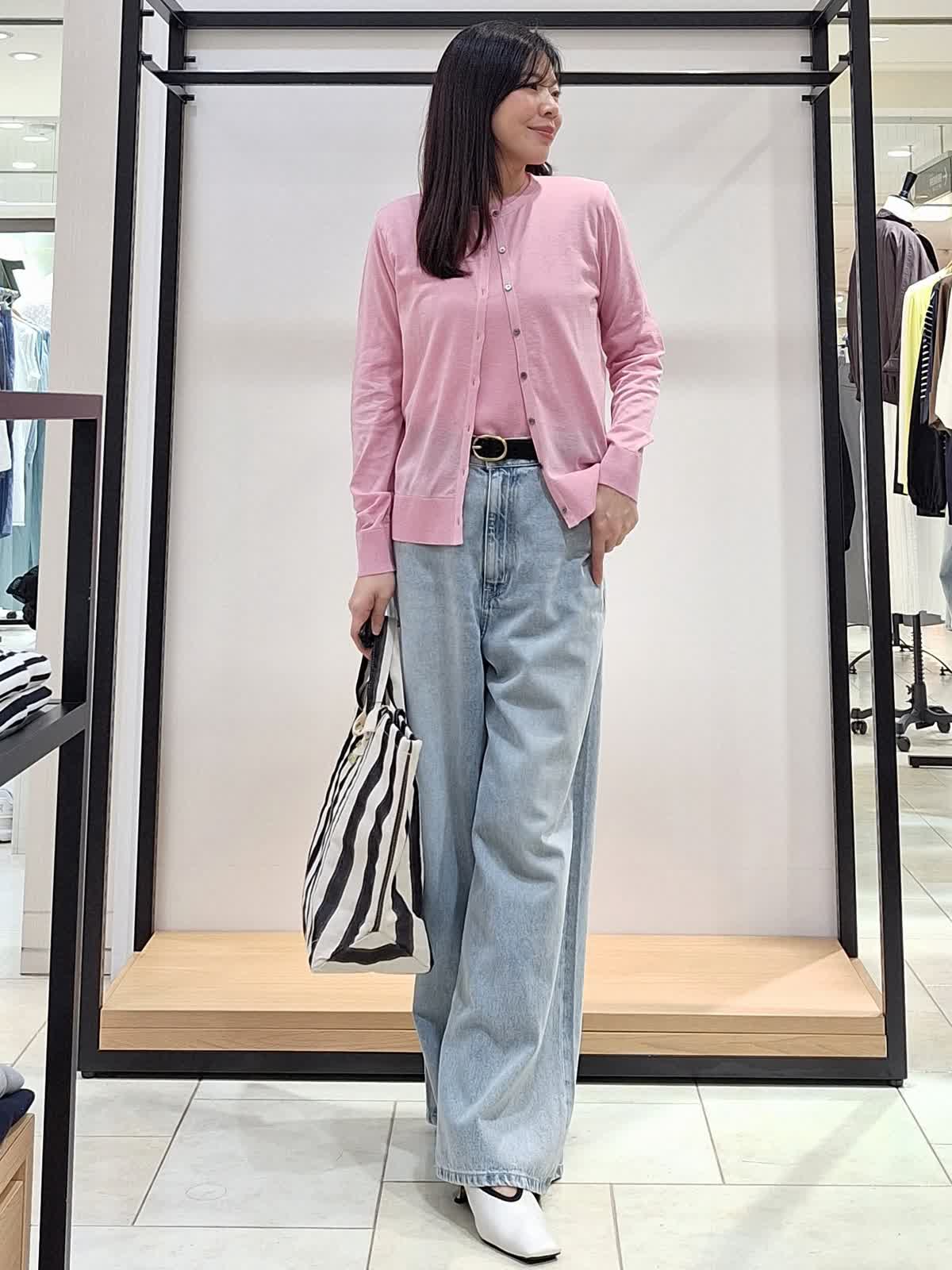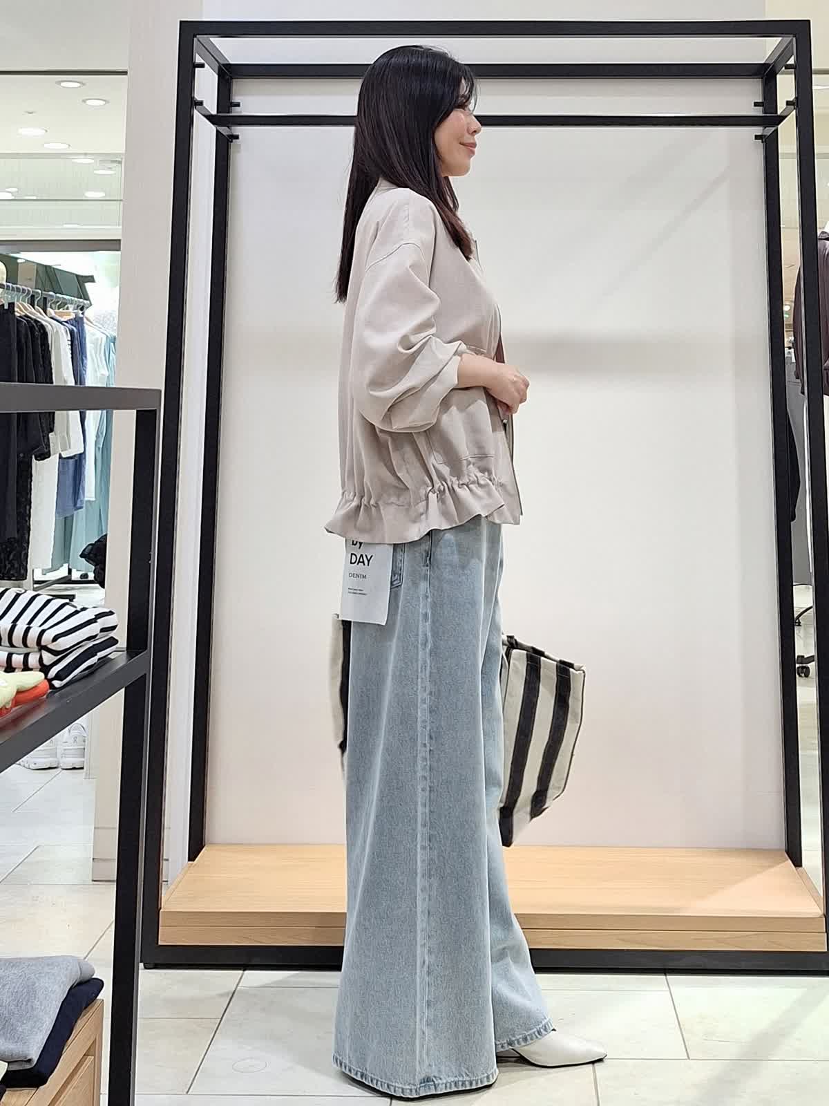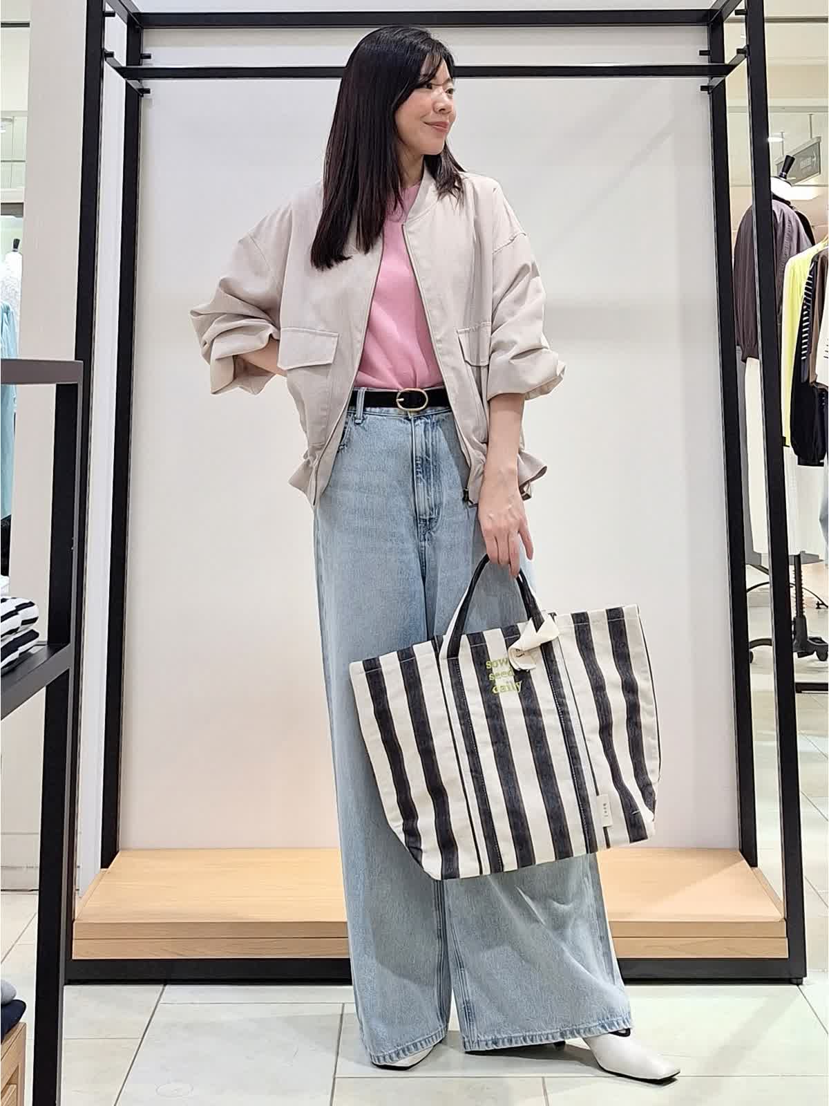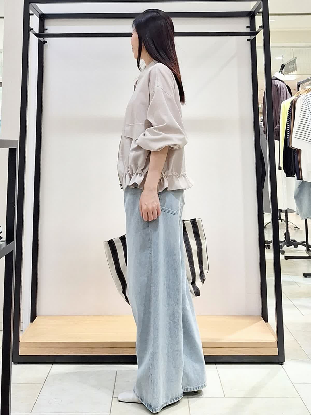 【着用サイズ、カラー】全て9号 ブルゾン:ベージュ カットソー、カーディガン:ピンク パンツ:サックス 《休日カジュアルSTYLE》薄地でシャツ感覚で着れるリネンライクブルゾン。裾の絞りや袖のブラウジングでアレンジを楽しめます♪インナーはピンクで明るく可愛げのある印象に。ボトムはワイドデニムパンツでカジュアルにコーディネートしました。GWのお出掛けカジュアルにもお勧めです。ぜひチェックしてみてね☆