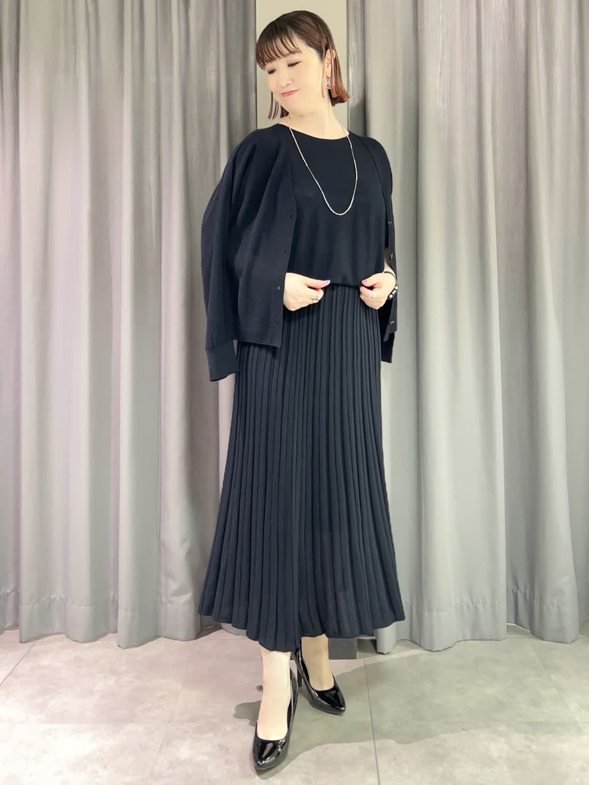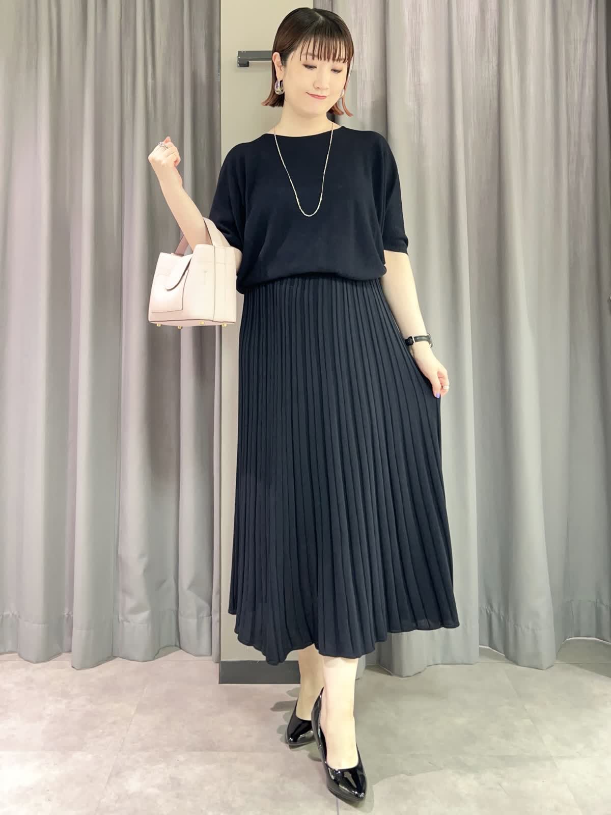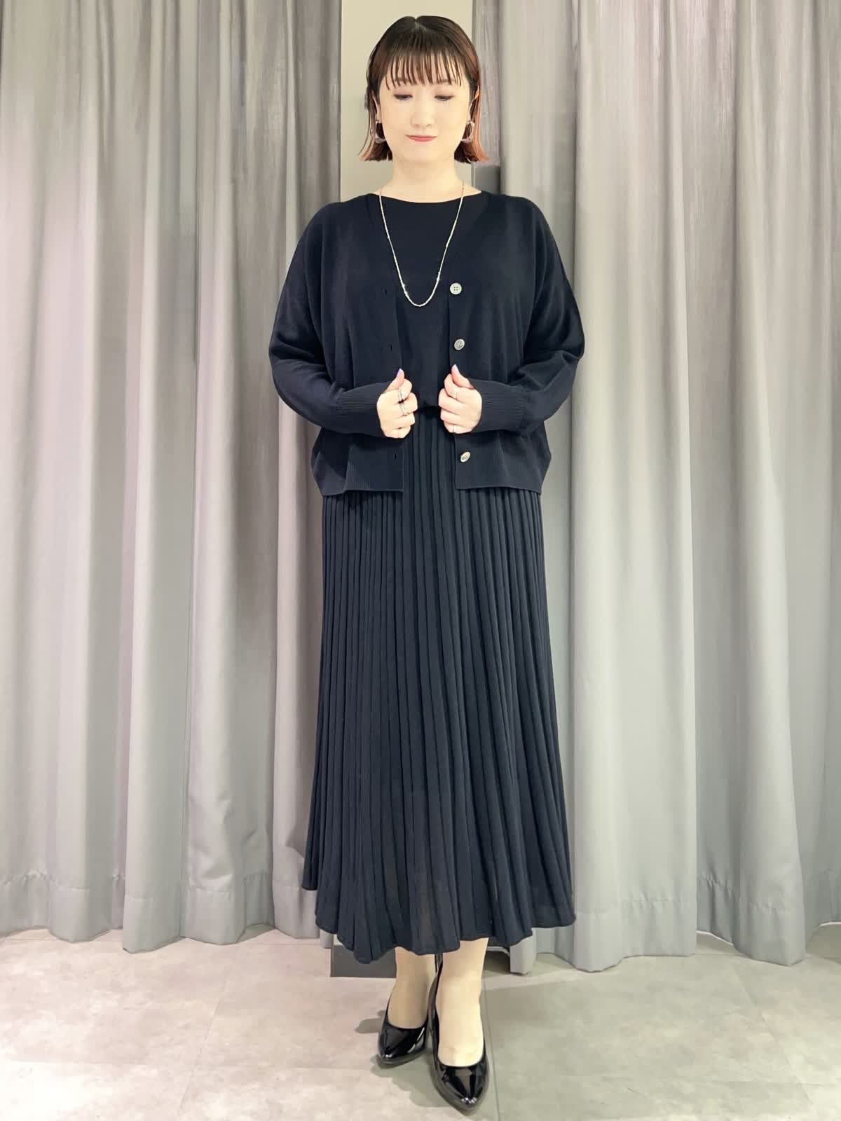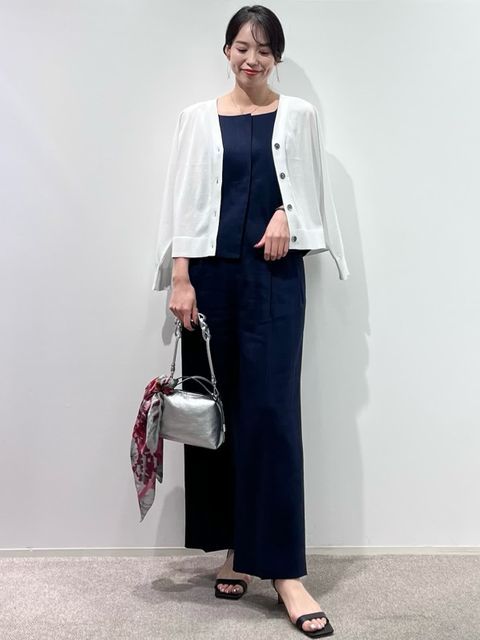 【着用サイズ/カラー】ニット・カーディガン共に9号/ダークネイビー スカート:11号/ダークネイビー ネックレス:シルバー バッグ:ピンク [万能Cuooニットアップコーデ] [ニット]イネドで毎年定番人気のキュプラを使ったサラッとしたニットです。程よいオーバーサイズで着痩せ効果があります。シワになりにくいので旅行にもオススメです。 [カーディガン]ニットと同素材のカーディガンです。ややオーバーサイズでゆったりとしたトップスの上からも羽織れます。夏の冷房対策にもオススメです。 [スカート]ニットと同素材のスカートです。ペチコート付きなので安心です。ウエストはゆるめで11号だと少し大きく感じました。 [ネックレス]カットビーズの光沢が華やかなロングネックレスです。とても軽くて付けやすかったです。 [バッグ]FAVORITEの人気シリーズ〈CANDY〉のバッグです。普段使いからフォーマルシーンでも活躍するサイズです。