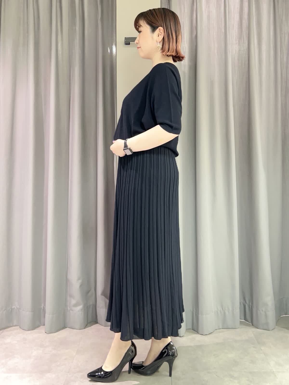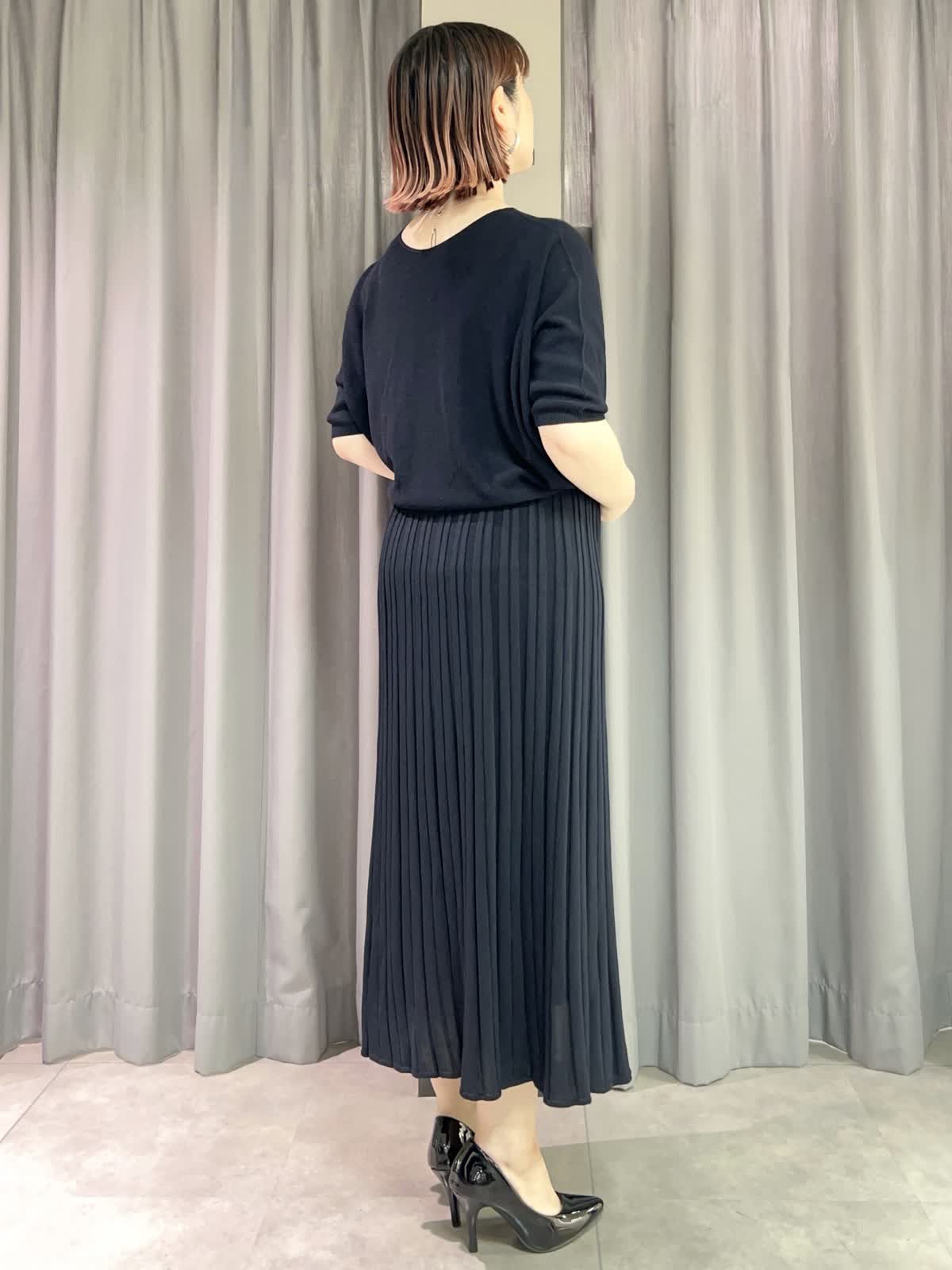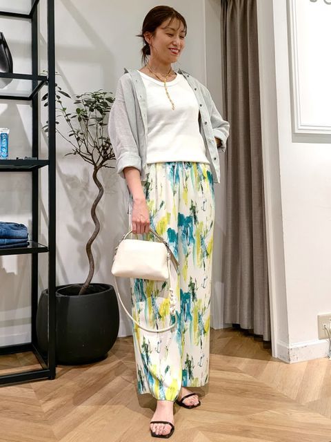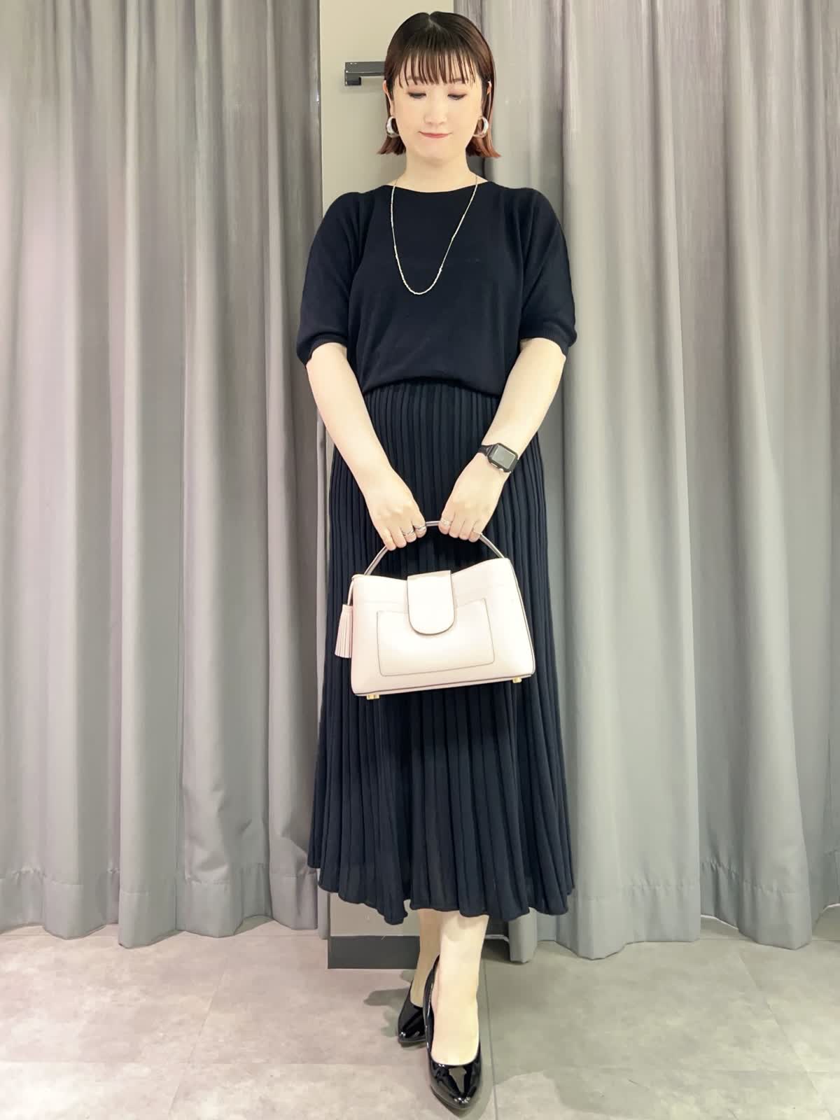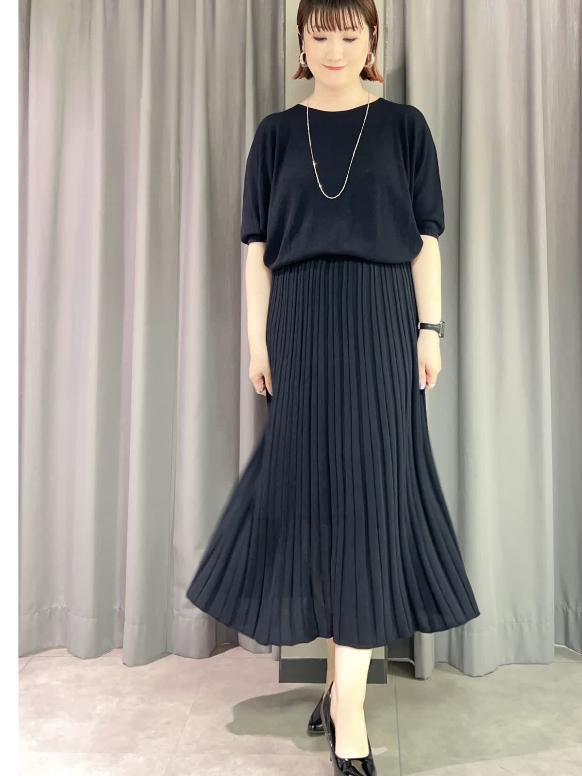 【着用サイズ/カラー】ニット・カーディガン共に9号/ダークネイビー スカート:11号/ダークネイビー ネックレス:シルバー バッグ:ピンク [万能Cuooニットアップコーデ] [ニット]イネドで毎年定番人気のキュプラを使ったサラッとしたニットです。程よいオーバーサイズで着痩せ効果があります。シワになりにくいので旅行にもオススメです。 [カーディガン]ニットと同素材のカーディガンです。ややオーバーサイズでゆったりとしたトップスの上からも羽織れます。夏の冷房対策にもオススメです。 [スカート]ニットと同素材のスカートです。ペチコート付きなので安心です。ウエストはゆるめで11号だと少し大きく感じました。 [ネックレス]カットビーズの光沢が華やかなロングネックレスです。とても軽くて付けやすかったです。 [バッグ]FAVORITEの人気シリーズ〈CANDY〉のバッグです。普段使いからフォーマルシーンでも活躍するサイズです。