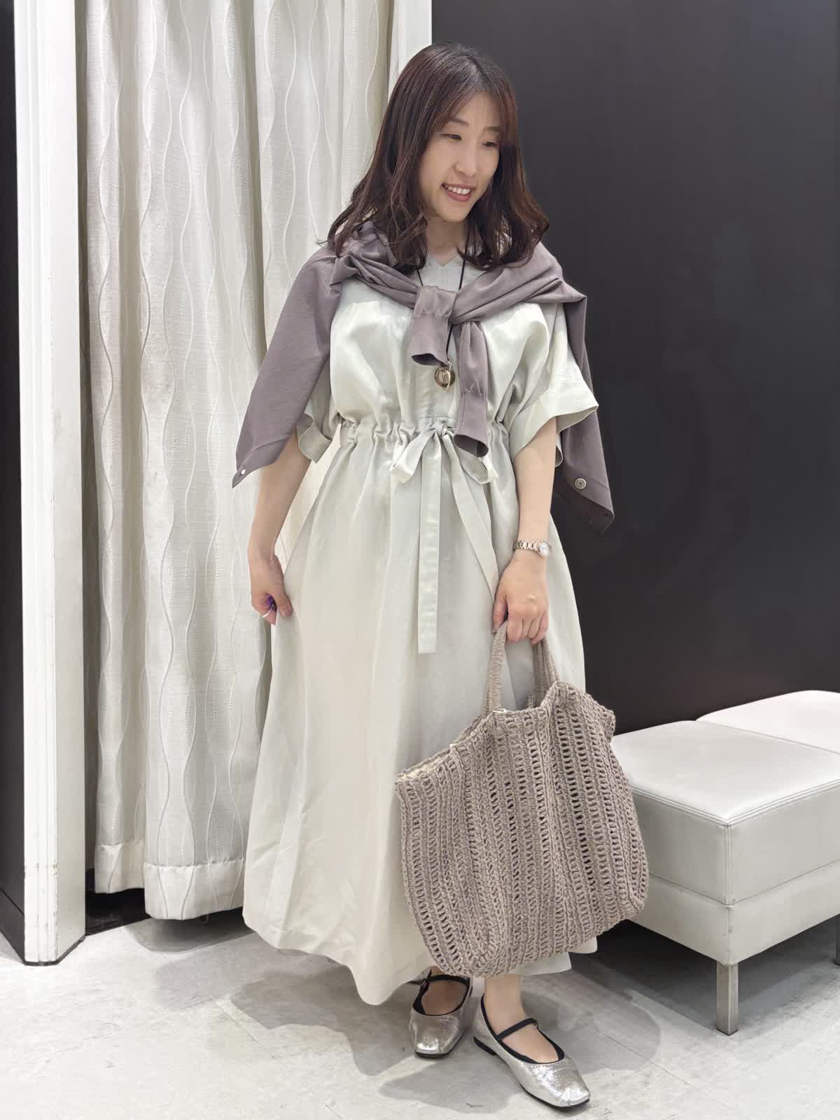 【着用カラー】ワンピース: グレージュ ニットカーディガン:モカチャ バッグ:グレー