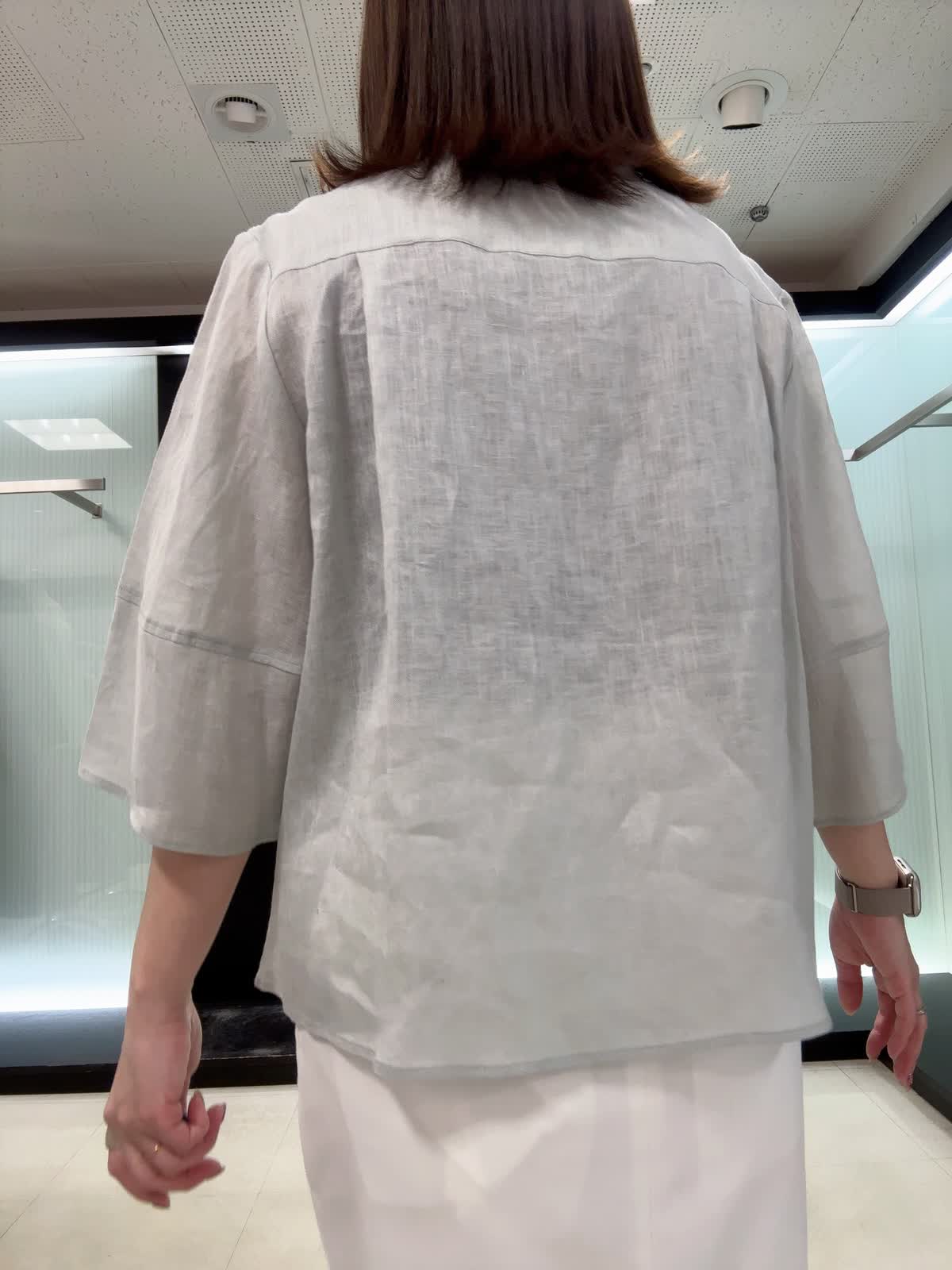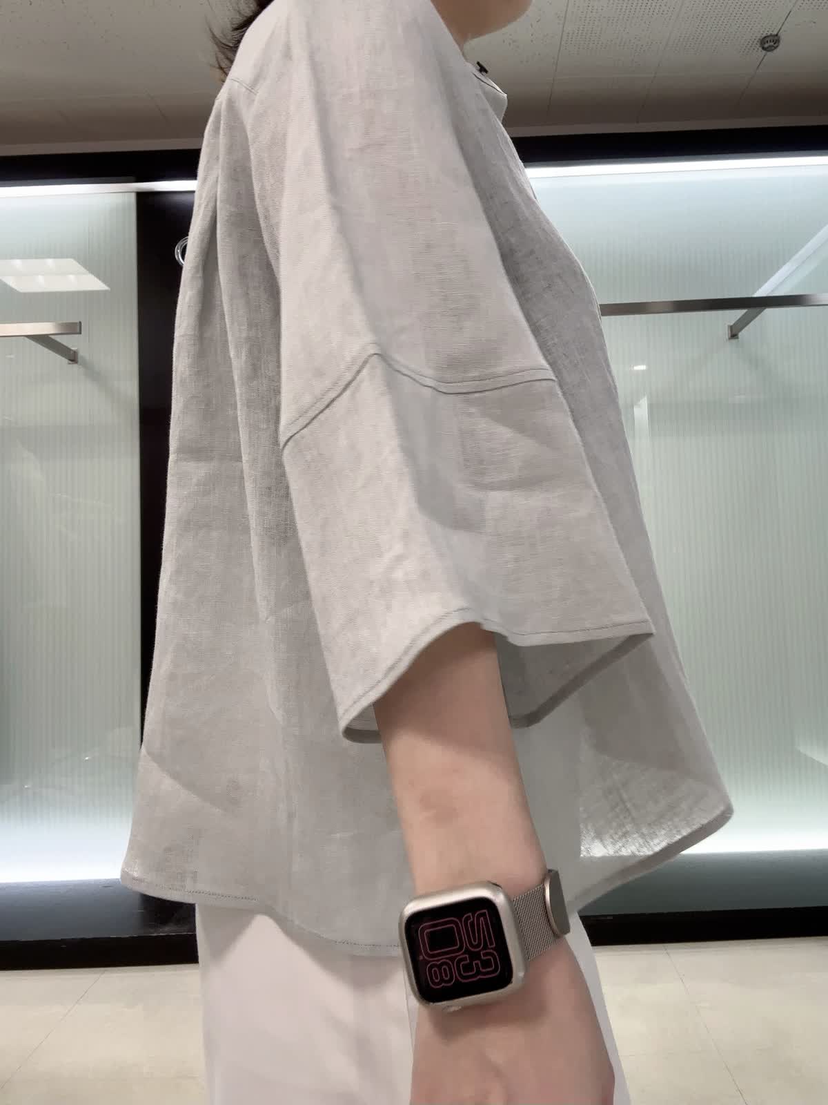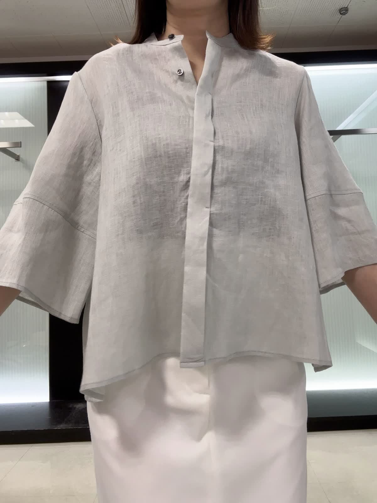 【着用サイズ】全て9号 リラックス感のあるリネンブラウスです。 立体シルエットとふんわり袖で二の腕カバー&涼しく着られます。 一枚でも羽織りでも着回しOK◎ 上質リネンで程よいツヤ感+ご自宅洗いも可能です