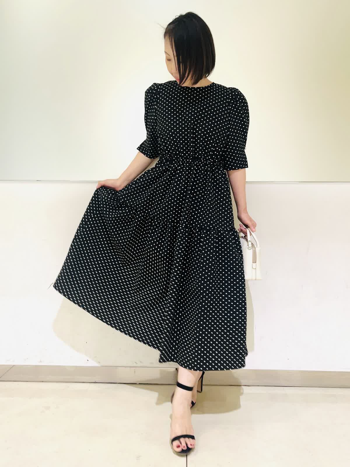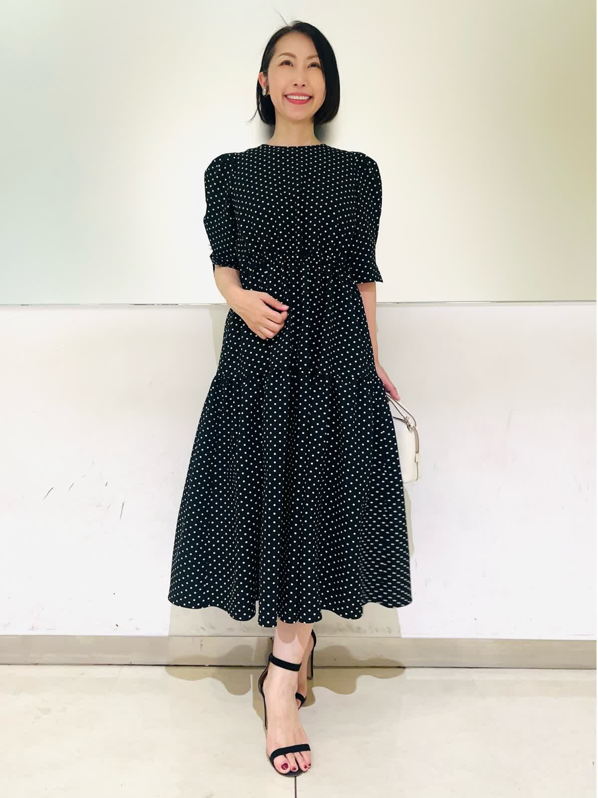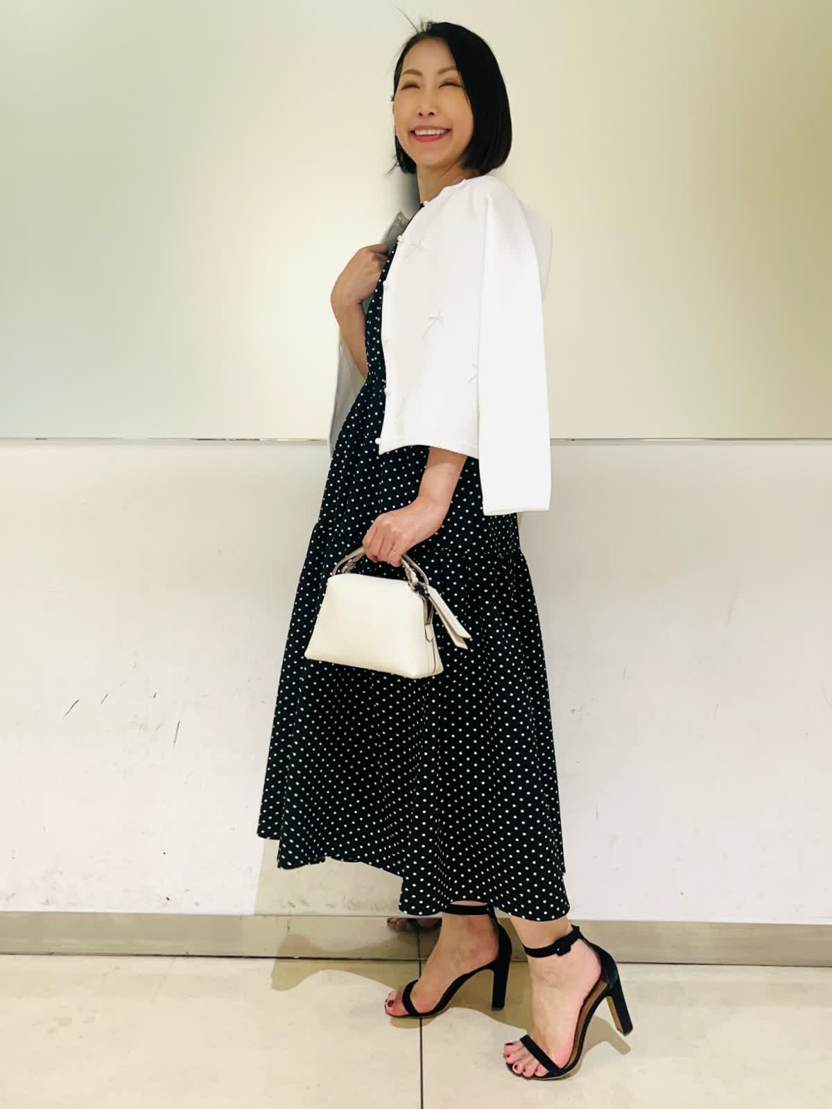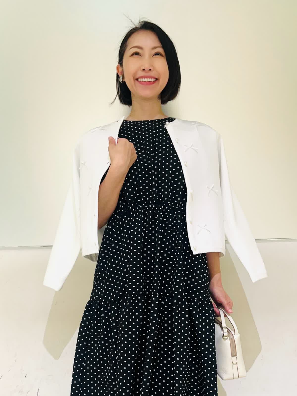 【着用アイテム】すべて9号 【着用カラー】カーディガン:オフホワイト ワンピース:ブラック 初夏のお出かけコーディネート。夏のお出かけに欠かせないワンピース。ドライタッチな素材感でさらっとした着心地です。ティアードのふんわりしたデザインが歩くたびに可愛く揺れます。1枚で着ても肩が華奢見えする袖デザインで、二の腕もカバーしてくれる安心なお袖丈。ホームケア出来るので、デイリーにもお召しいただけます。