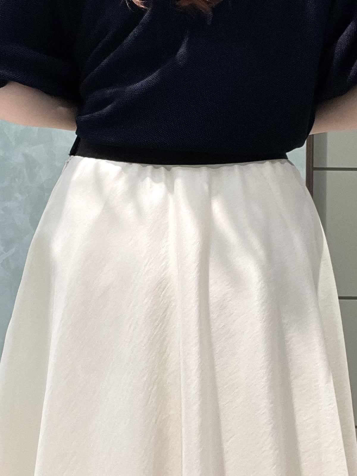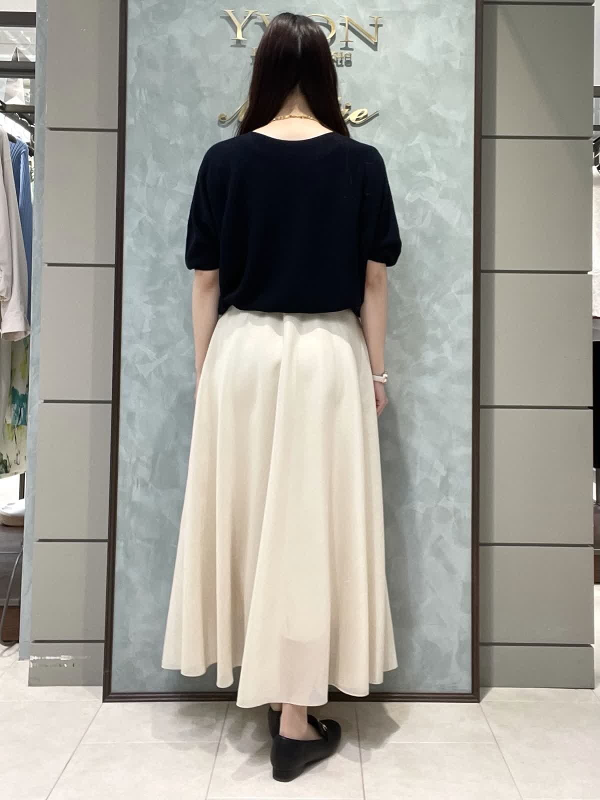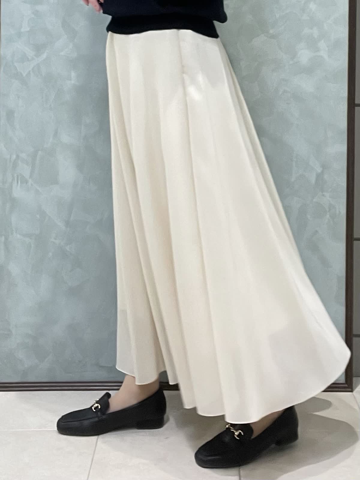 【着用サイズ】ニット:9号 スカート:7号 程よく品のあるランチスタイリングです。キュプラ混でサラッと着やすい定番のCuooシリーズはINEDのマストアイテムです。ドルマンスリーブニットはコンパクトな丈感でスカートやワイドなボトムにもバランスよく合わせられます。お袖は肘丈、着丈は腰にかかるくらいです。裾がリブなので丈感調節できます。スカートは軽さとハリのあるオーガンジー素材で、広がりすぎないフレアシルエットです。光沢感もあるので華やかさが出ます。ウエストはオールゴムで履き心地良いです。透け感気にならないです。着丈は157センチで足首くらいです。左ファスナー、ポケットなしです。