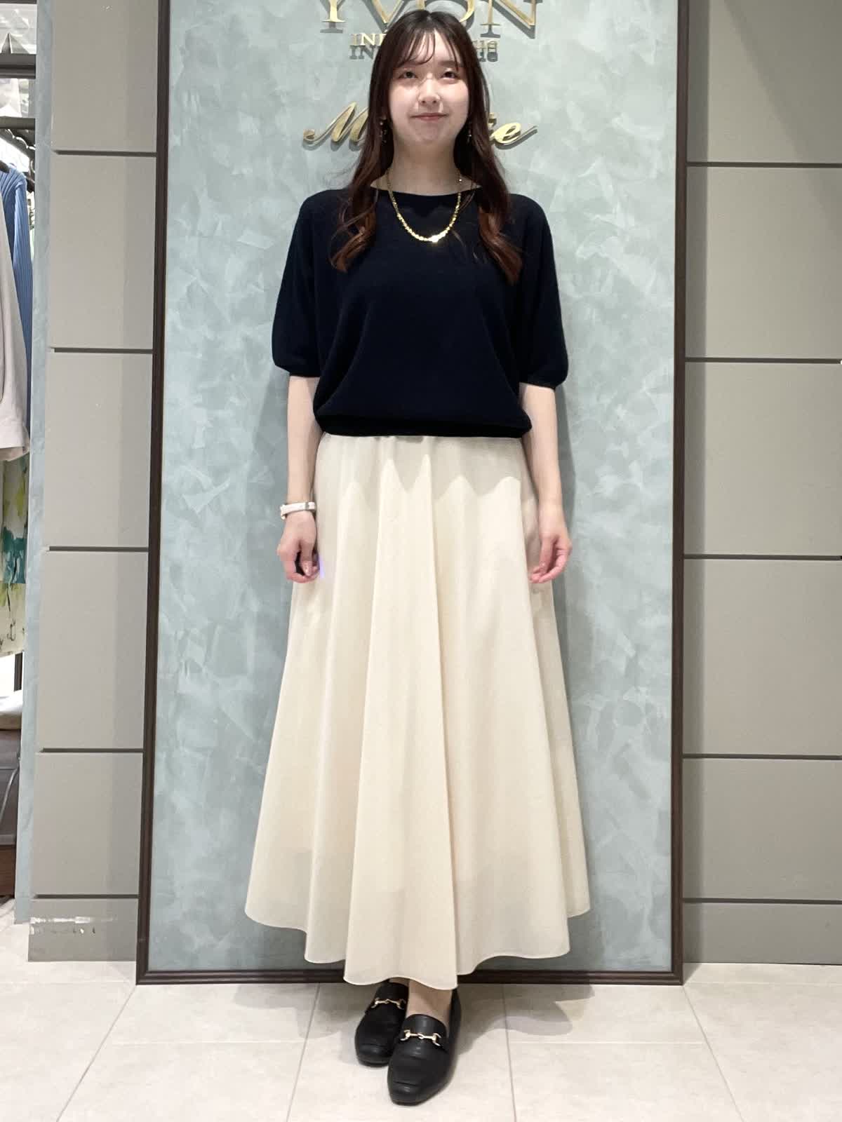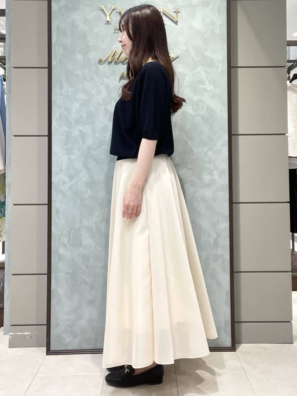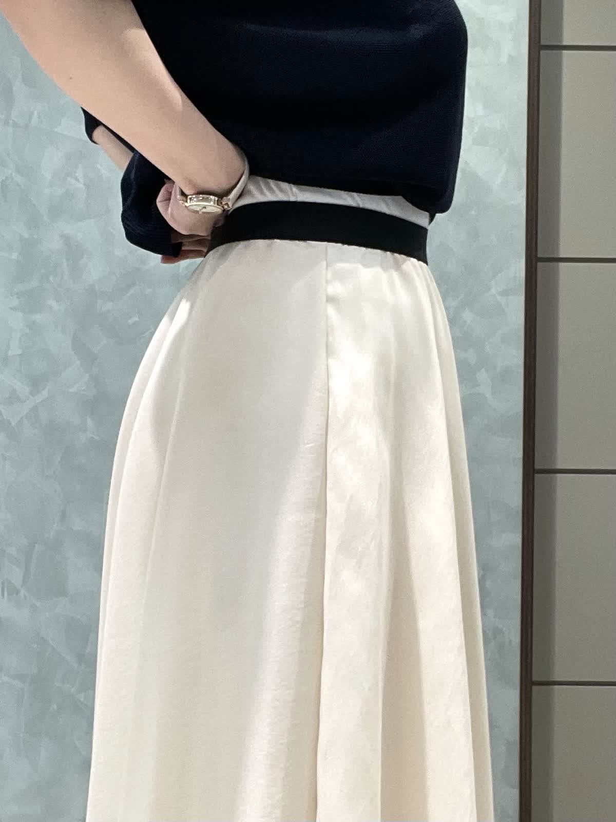 【着用サイズ】ニット:9号 スカート:7号 程よく品のあるランチスタイリングです。キュプラ混でサラッと着やすい定番のCuooシリーズはINEDのマストアイテムです。ドルマンスリーブニットはコンパクトな丈感でスカートやワイドなボトムにもバランスよく合わせられます。お袖は肘丈、着丈は腰にかかるくらいです。裾がリブなので丈感調節できます。スカートは軽さとハリのあるオーガンジー素材で、広がりすぎないフレアシルエットです。光沢感もあるので華やかさが出ます。ウエストはオールゴムで履き心地良いです。透け感気にならないです。着丈は157センチで足首くらいです。左ファスナー、ポケットなしです。