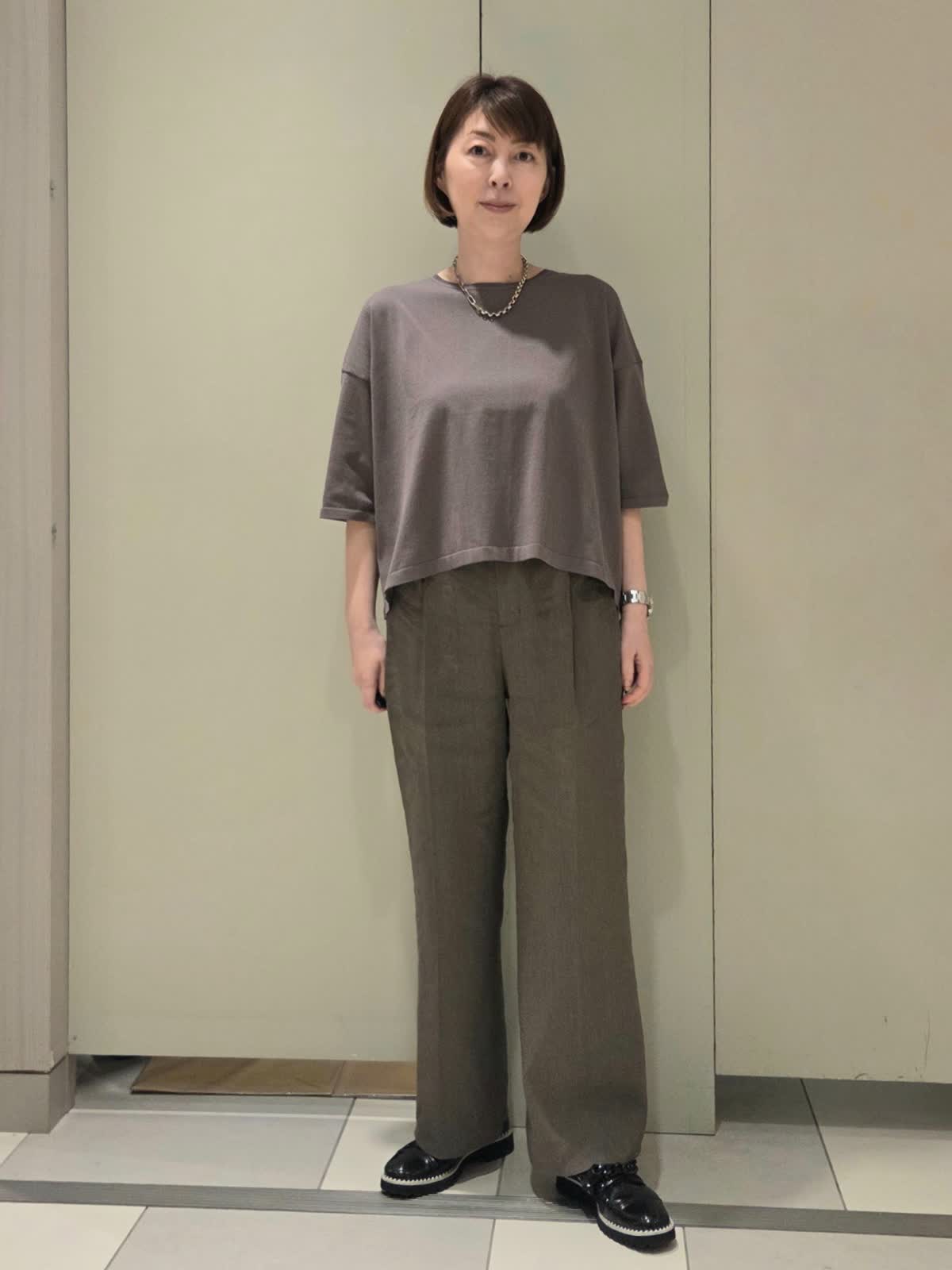 [着用サイズ] 全て9号 [着用カラー] 全てモカチャ やや短めの着丈と肘が隠れるくらいの5分袖で着やすいデザインです。Tシャツよりもきちんとした印象の大人っぽいスタイリングに役立ちます。