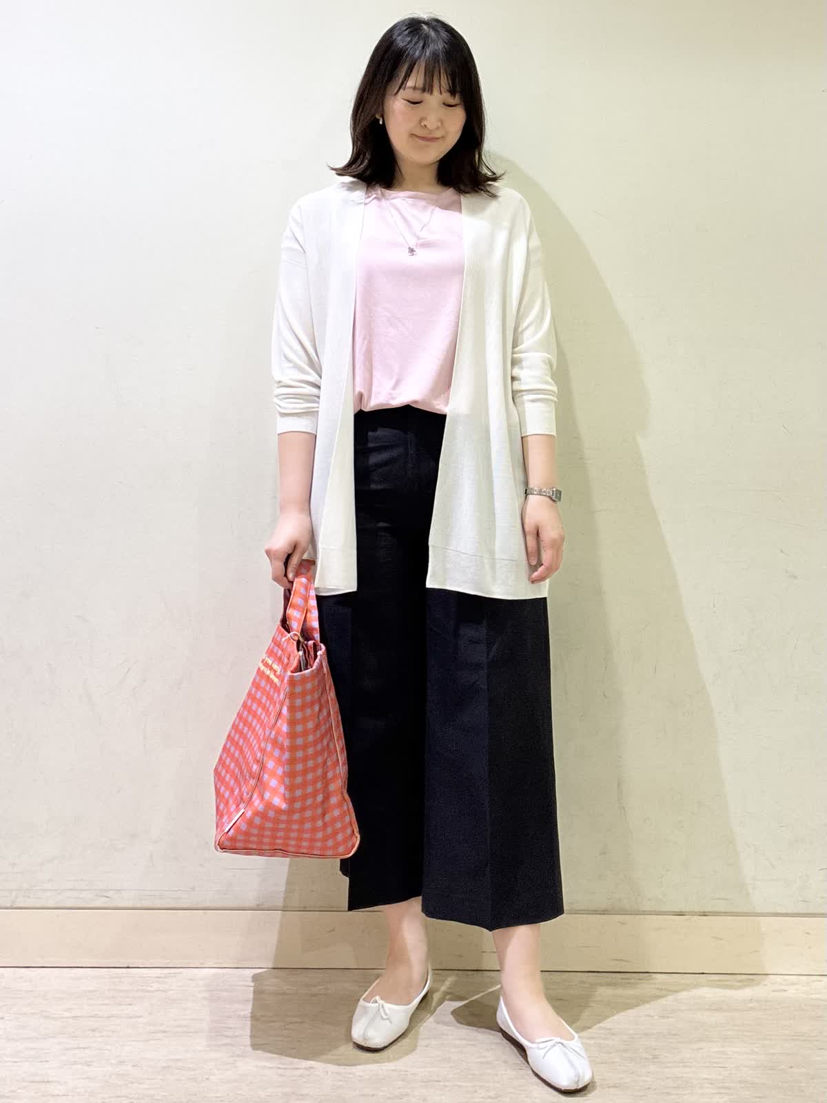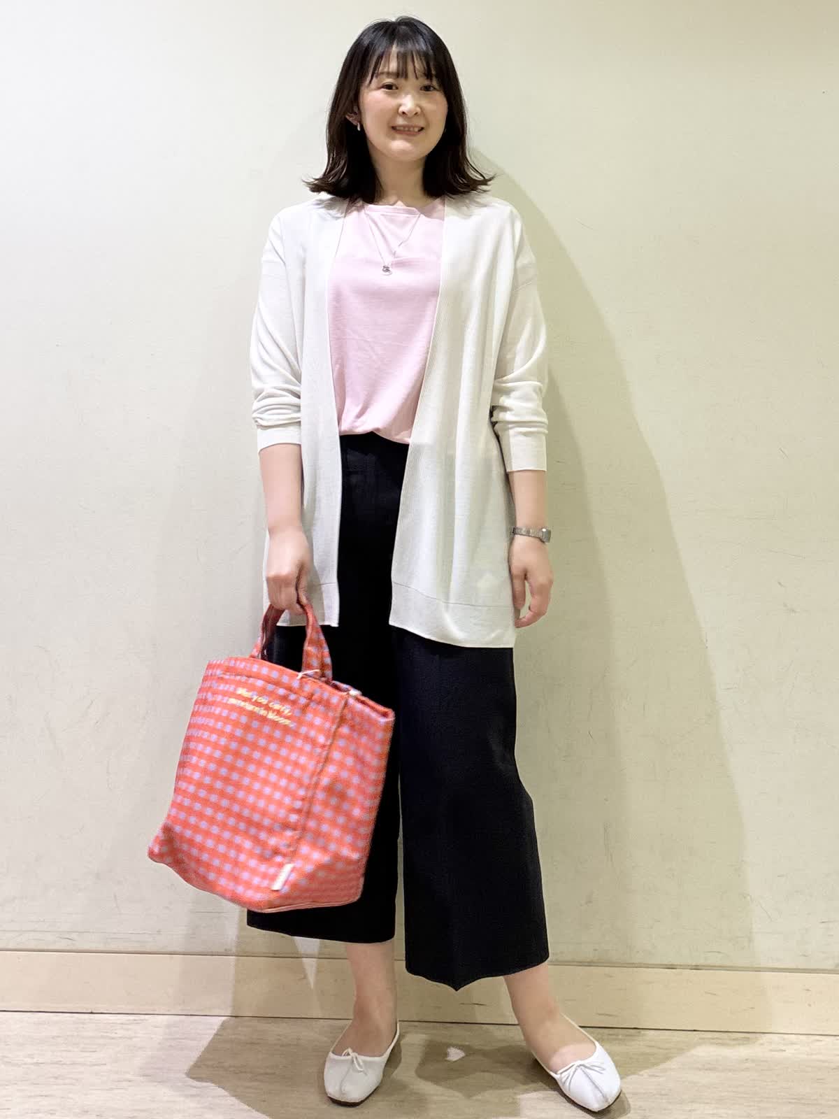 【着用カラー/サイズ】カーディガン:グレーベージュ/フリー カットソー:ピンク/9号 パンツ:ネイビー/13号 GWおでかけカジュアルコーデ。キュプラ混のカーディガンはドライタッチで、天気が不安定なこの時期にあると便利です。ホールガーメント製法で肌あたりが柔らかいです。パンツは、綿麻素材なので夏まで履けるサラサラ素材です。
