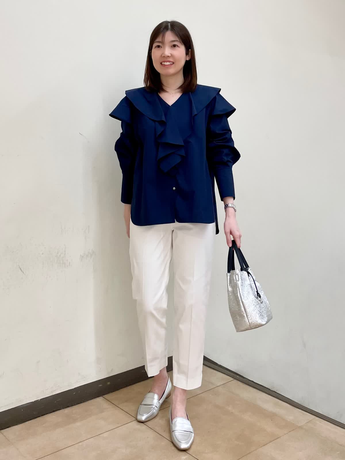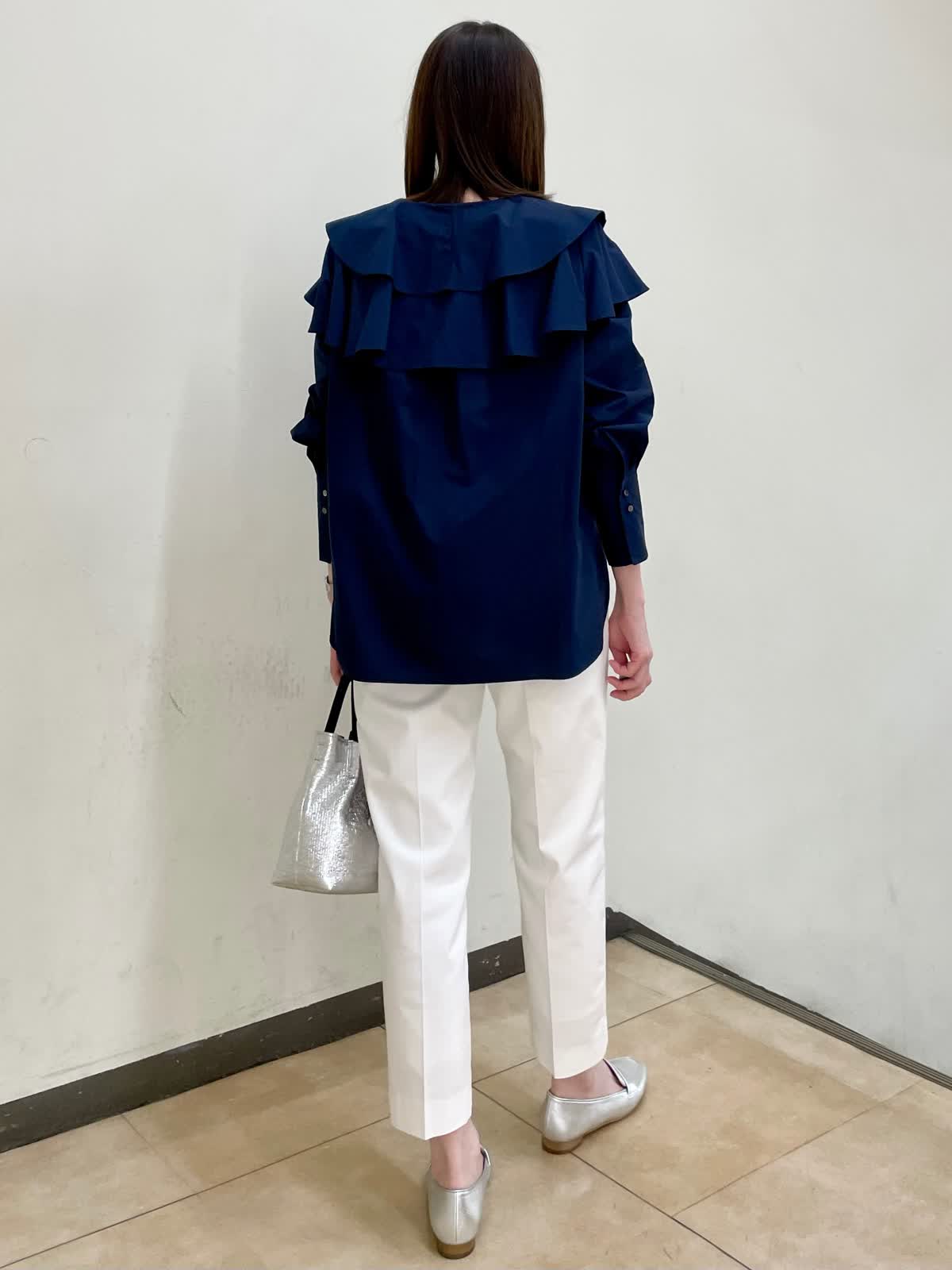 【着用サイズ】ブラウス:フリー パンツ:9号 大人気STORYコラボのラッフルフリルディテールが華やかなブラウスは360度着映えする一着です。
