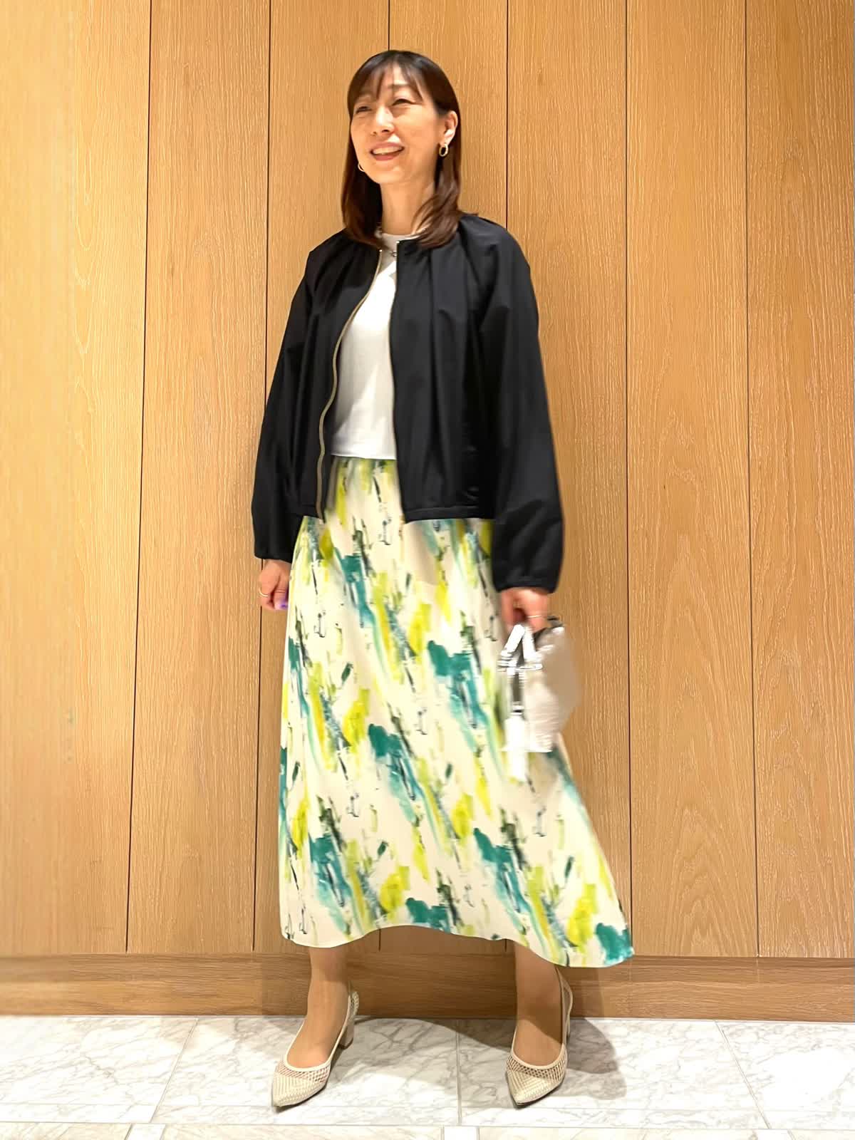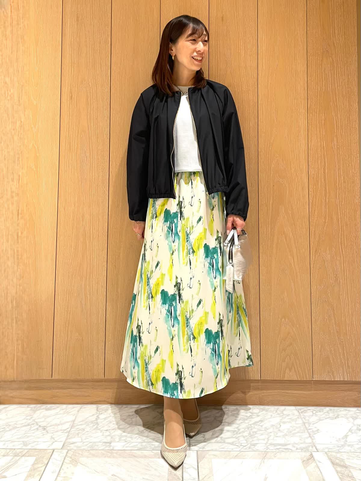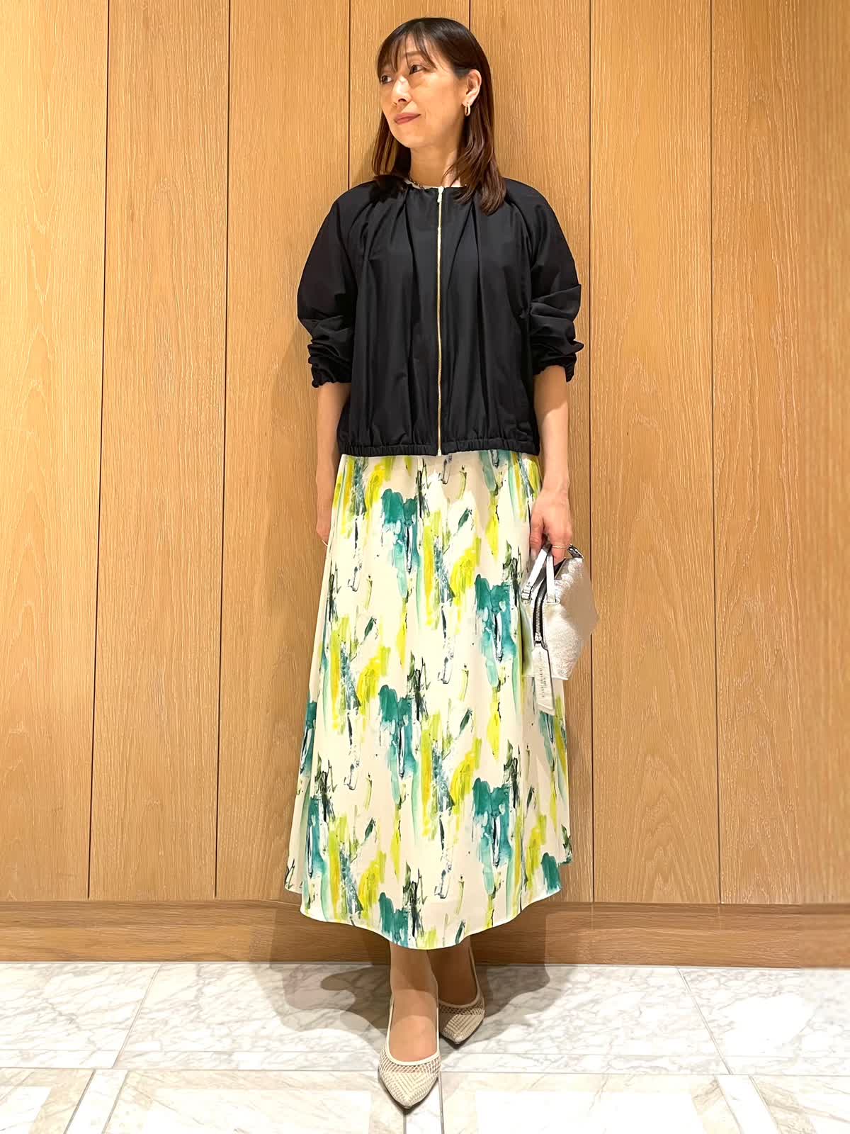 【着用サイズ・カラー】ブルゾン : 9号 ネイビー ニット : 9号 サックス スカート : 7号 ペパーミント 気温差の大きいシーズンには、軽く羽織れるブルゾンがオススメです。シンプルで着心地がとても軽いので、カバンに入れておいて朝晩だけ羽織るのもありです。スカートにもパンツにも合う着丈で活躍すること間違いなしです。