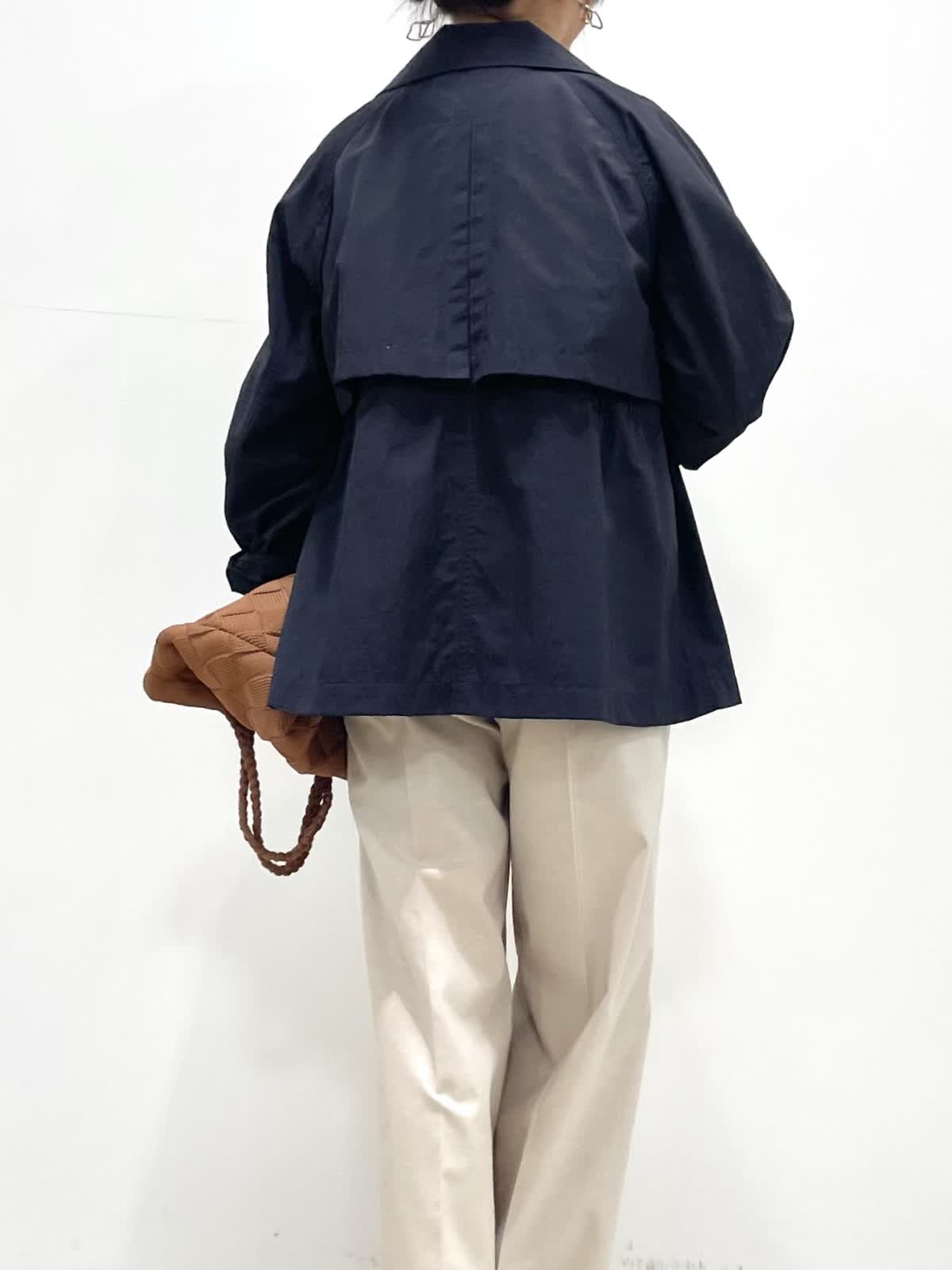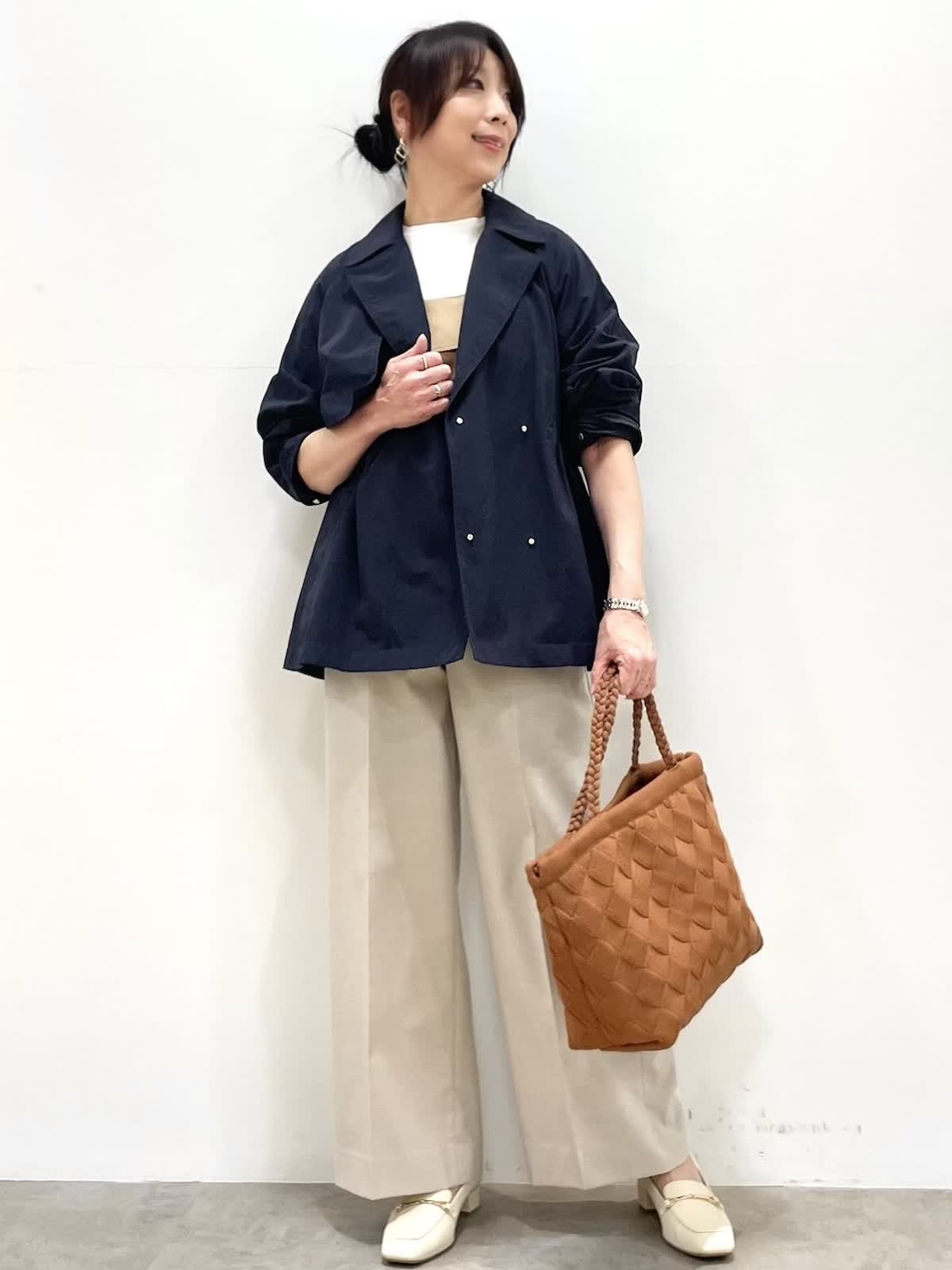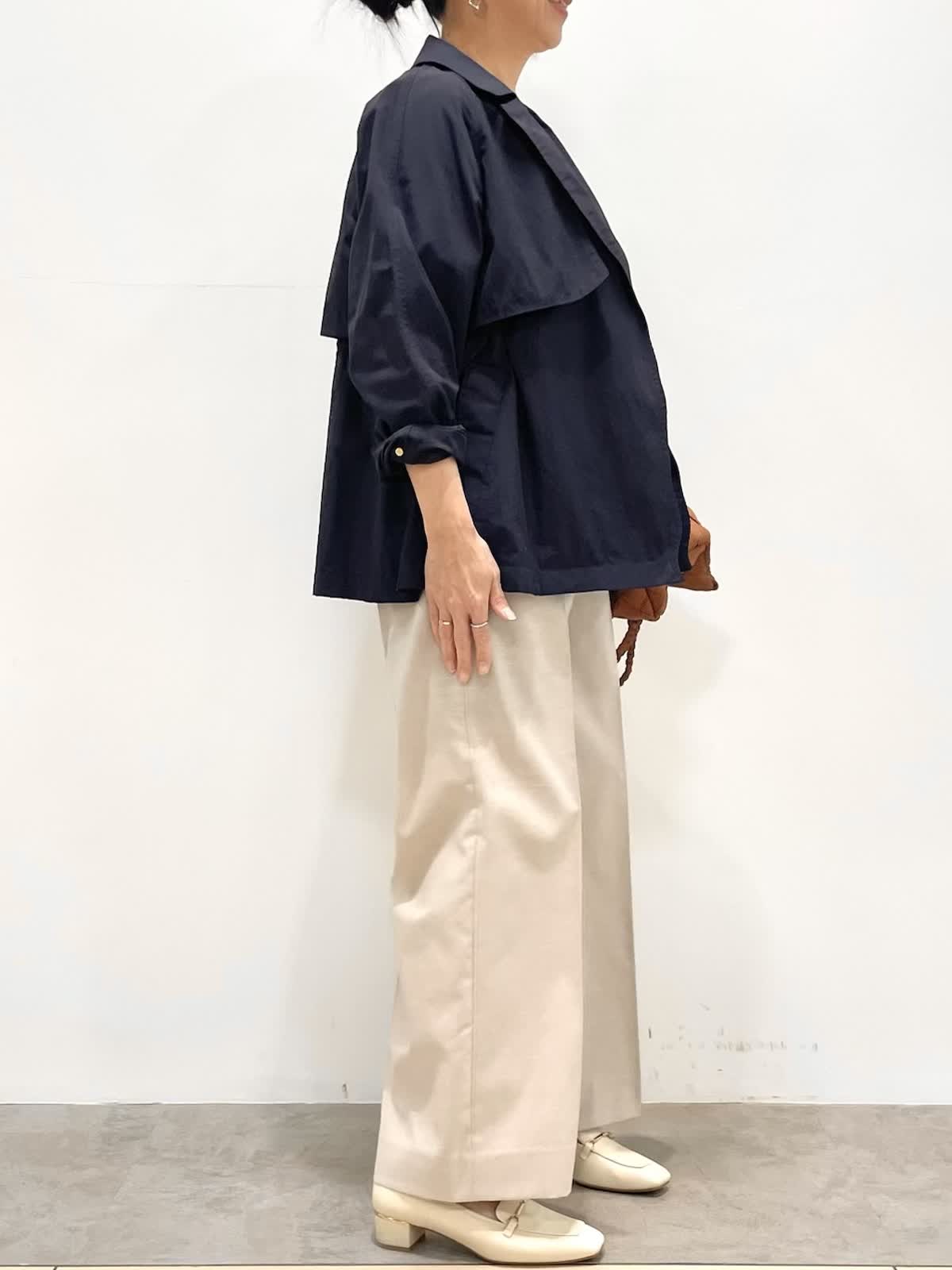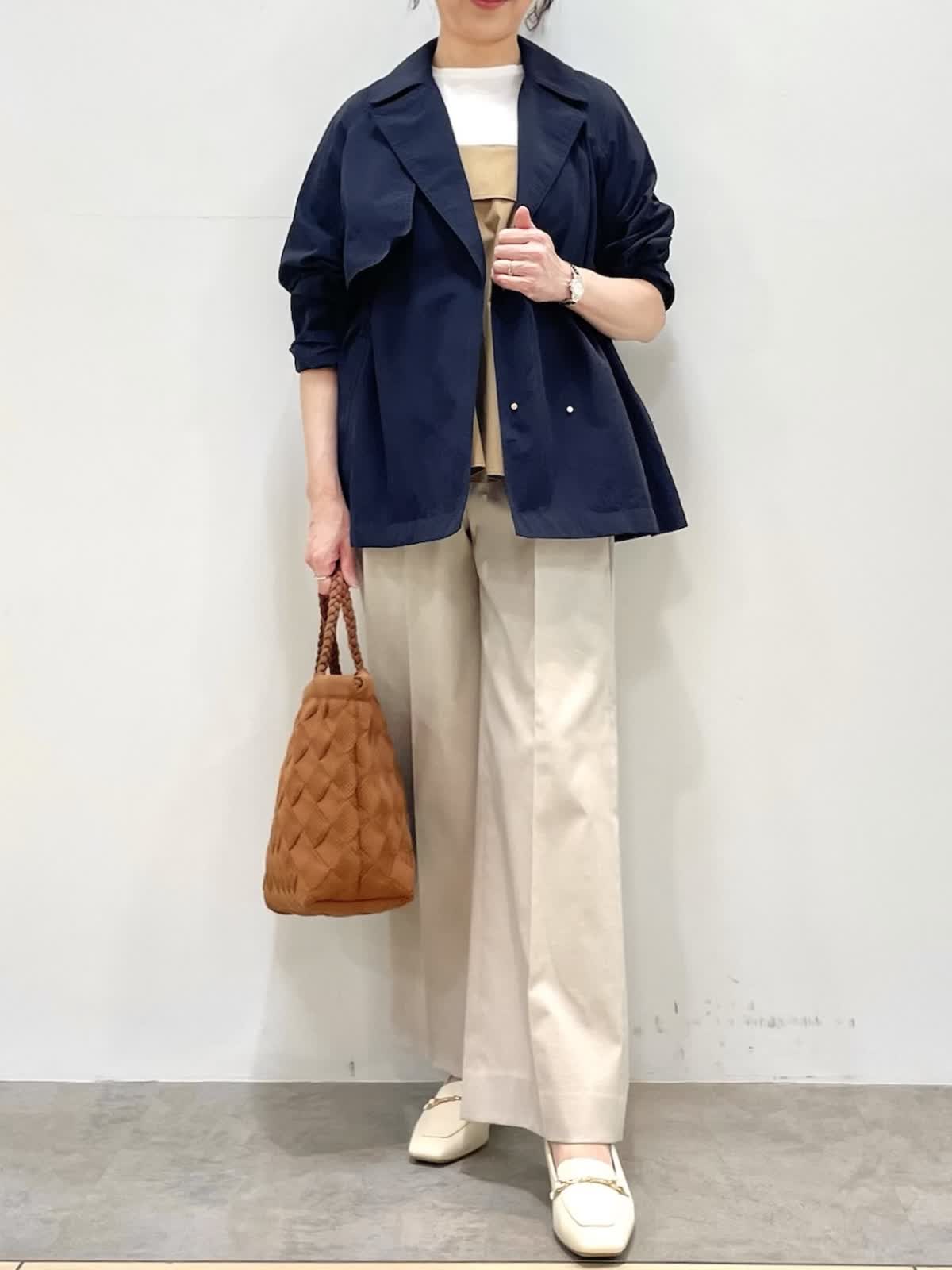 【着用サイズ】全て9号 【着用カラー】コート: ネイビー カットソー: ベージュ パンツ:ベージュ カジュアルになりすぎないキレイめなビスチェ風カットソー。異素材切り替えデザインで1枚でも着映えするおすすめアイテム。胸下からブラウス素材になってるので体に沿わず、ウエスト周りが安心です。ジャケットやカーディガンのインナーにも映えるデザインなので季節長く着用いただけます。