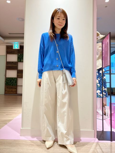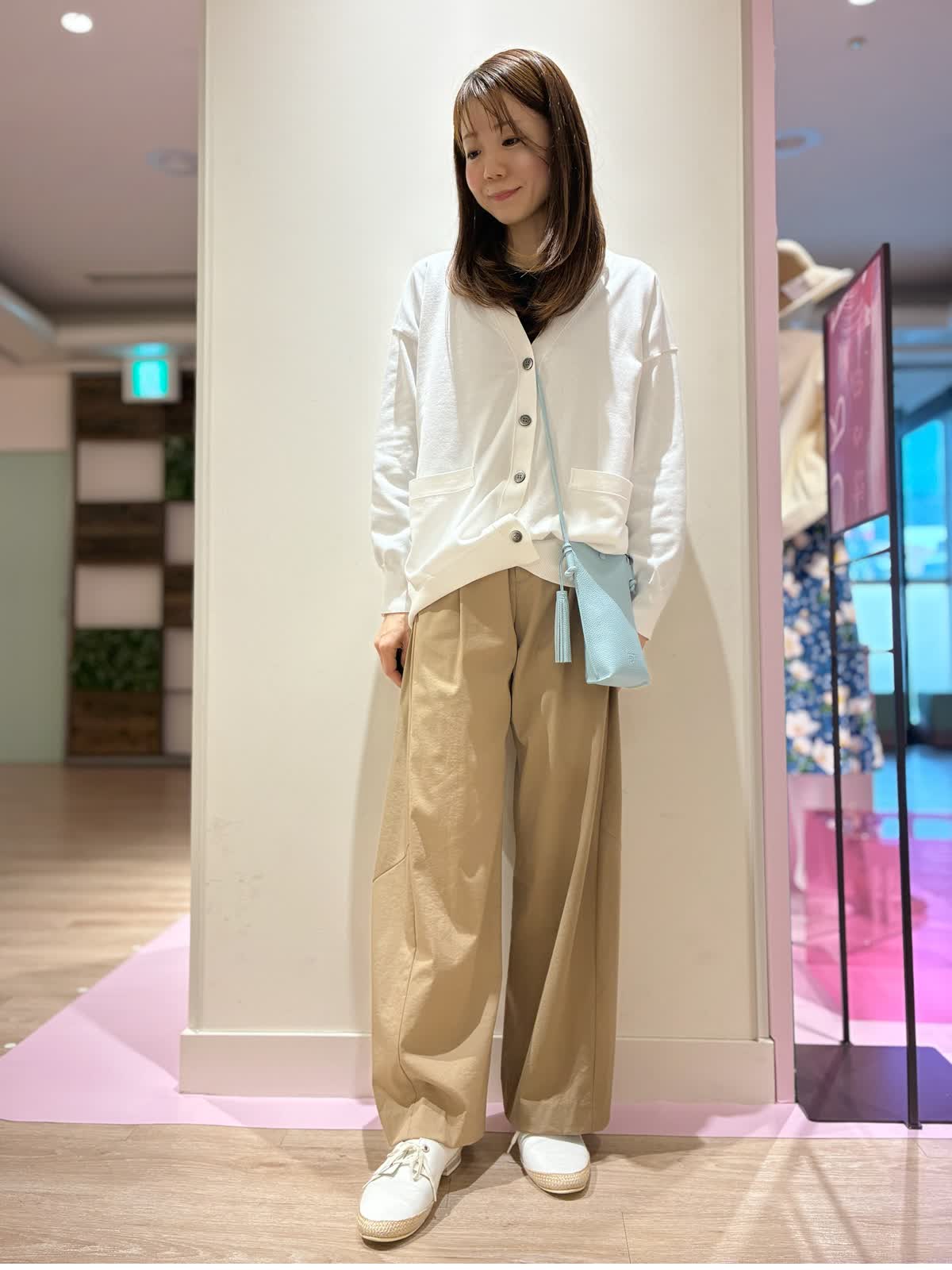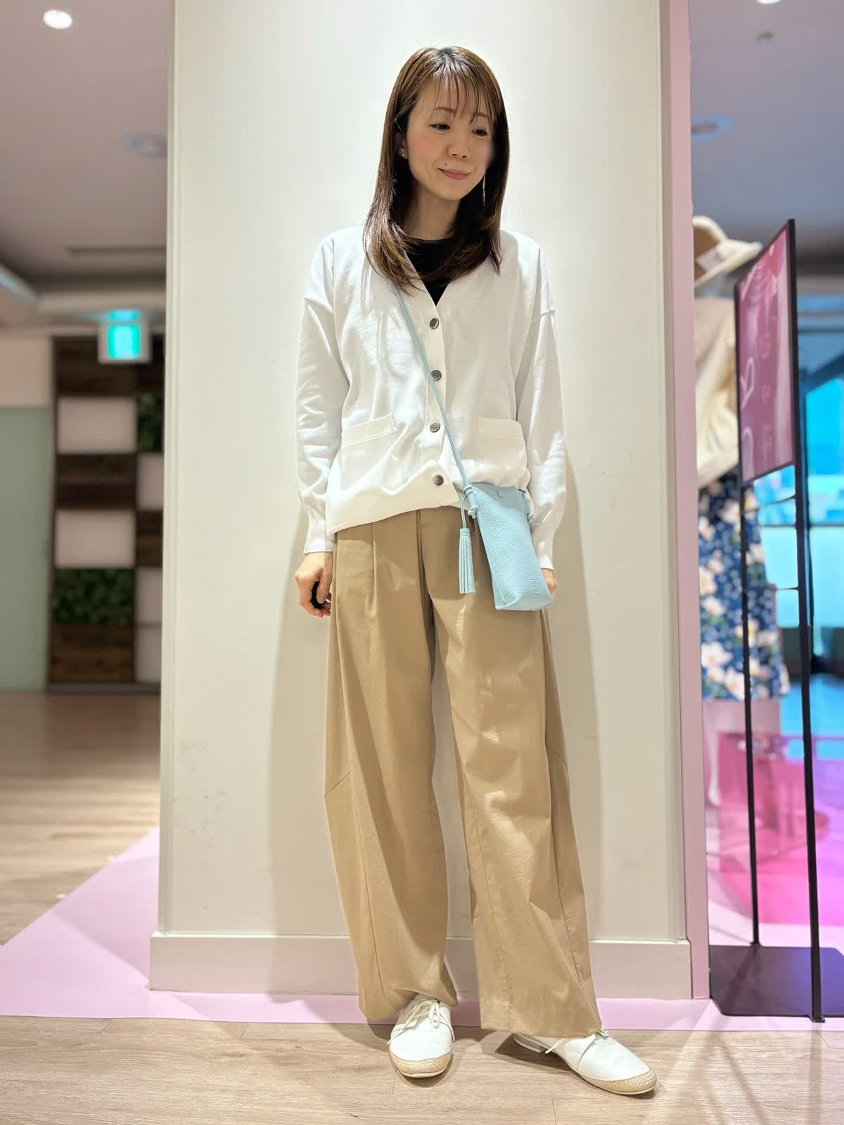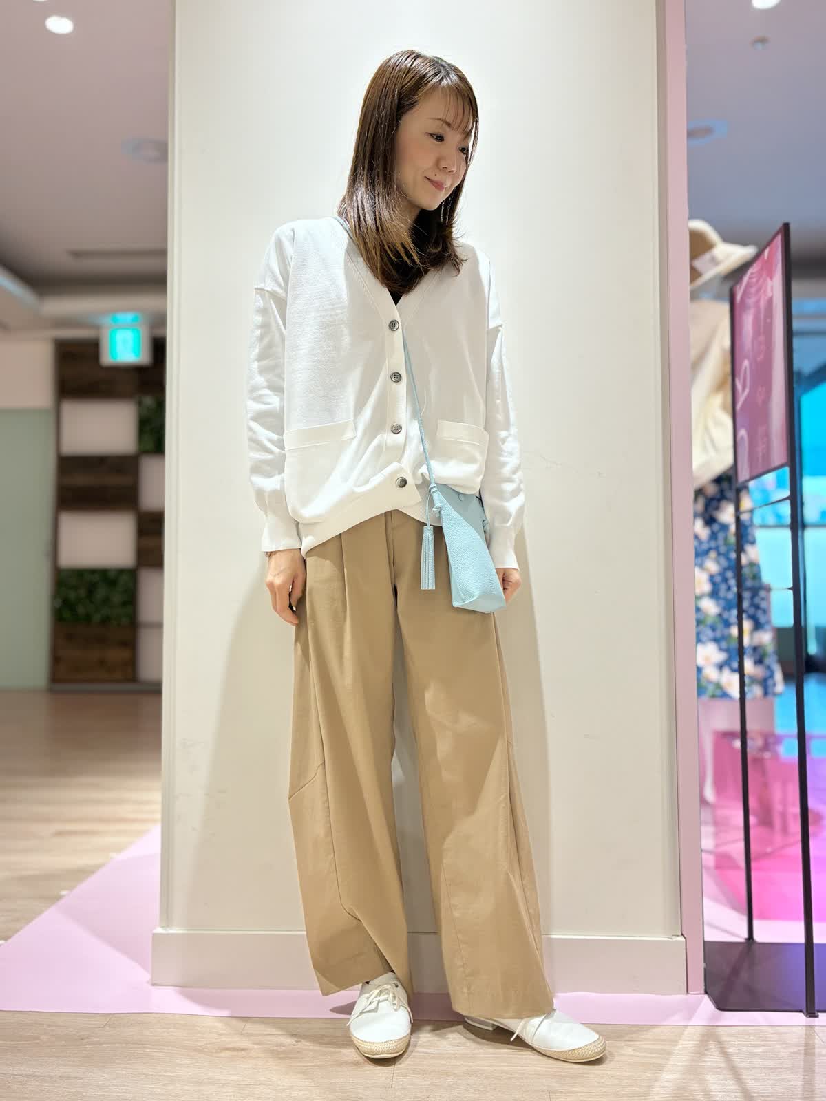 【着用サイズ】カーディガン:9号 ニット:9号 パンツ:7号 【着用カラー】カーディガン:オフホワイト ニット:ダークネイビー パンツ: キャメル コーディネートのテーマは春のお出かけスタイリングです。 白のカーディガンは、ライトアウター替わりに着られる少し地厚な生地感で、今からの時期大活躍。トレンドのバレルパンツも、着丈短めのトップスで、低身長さんもバランスよく着用できます。 春のお出かけにおすすめのおしゃれコーディネートです。