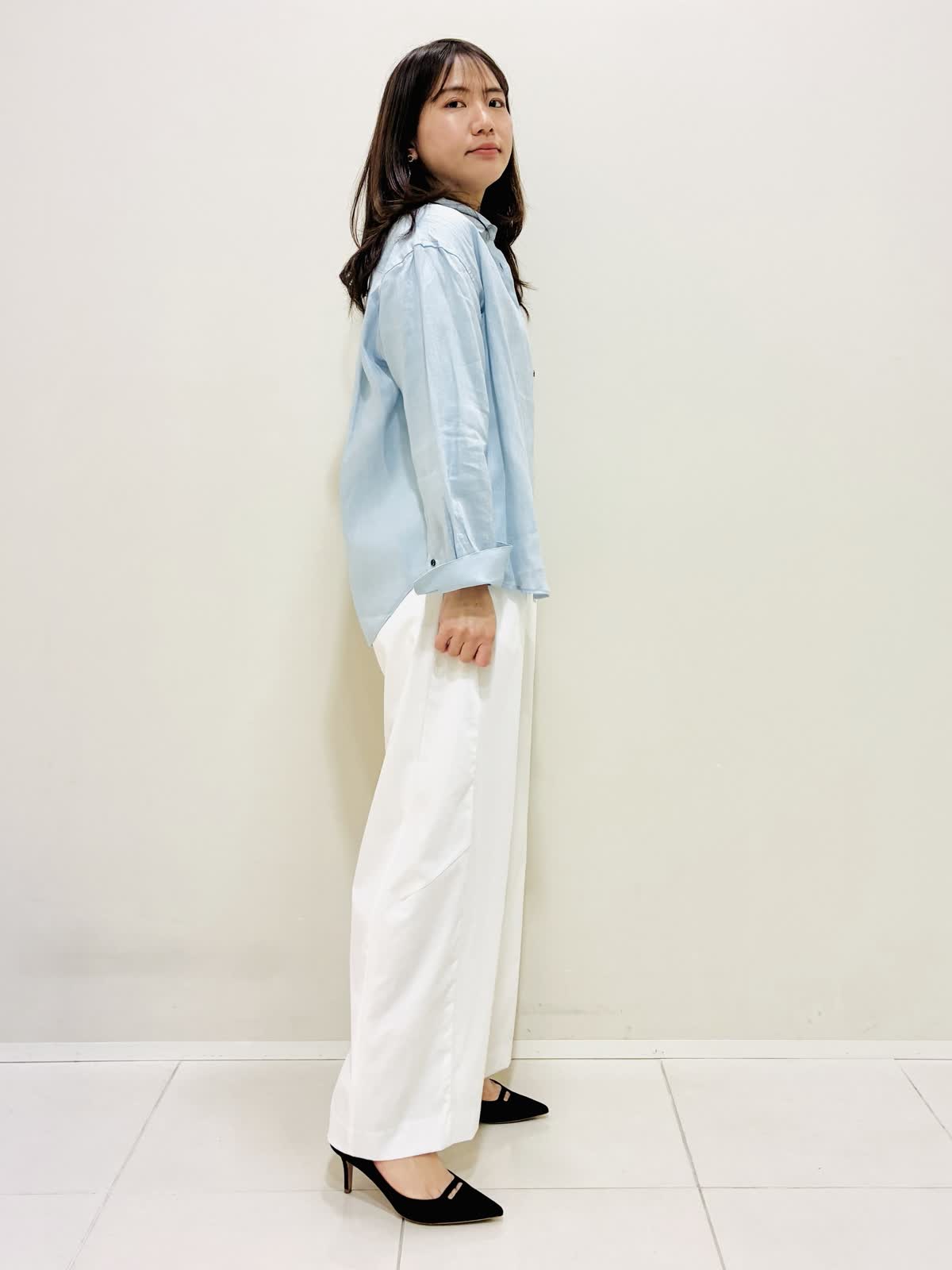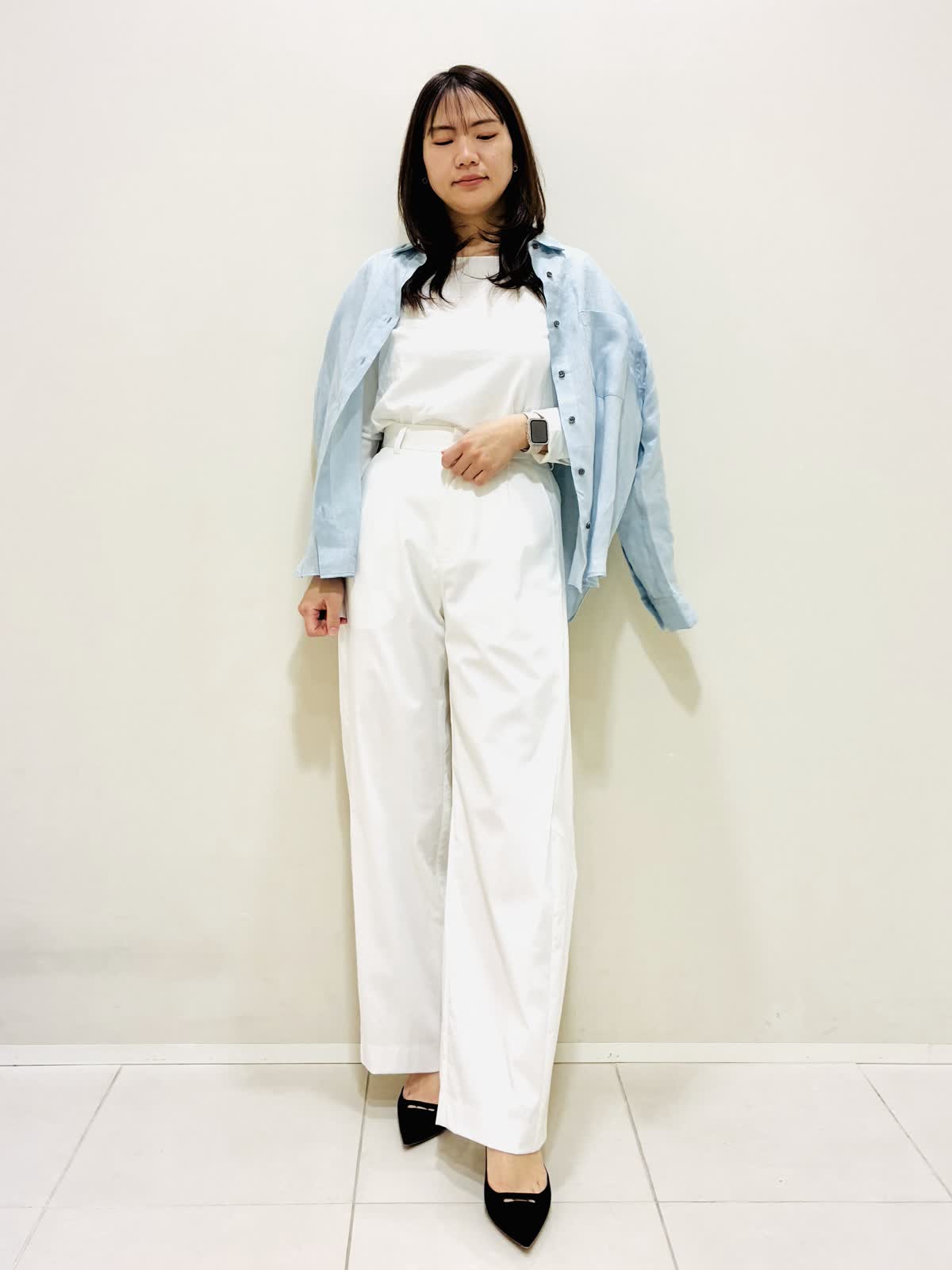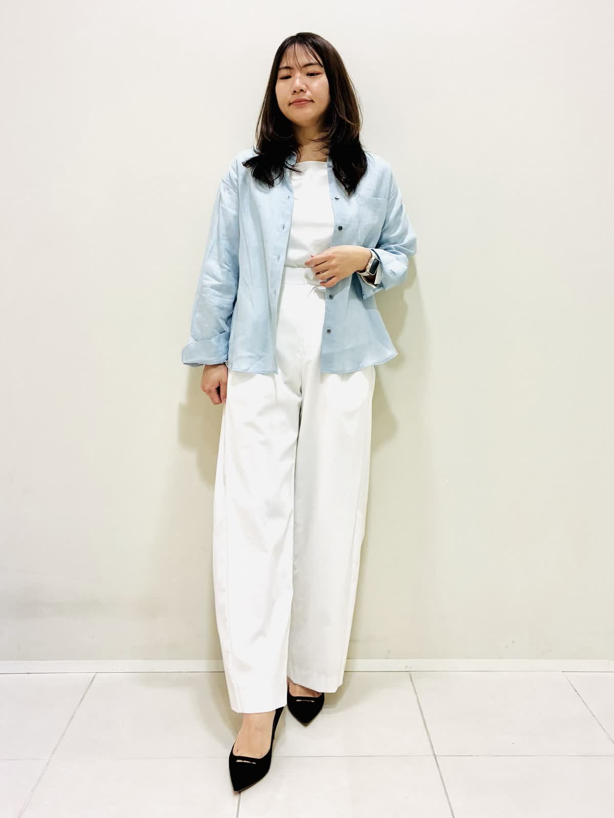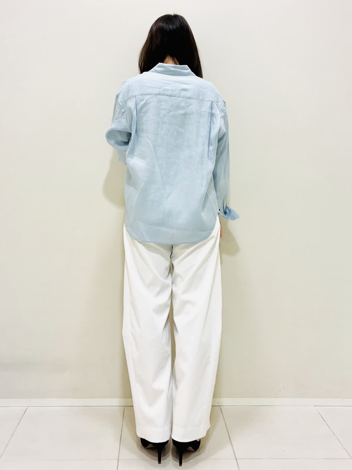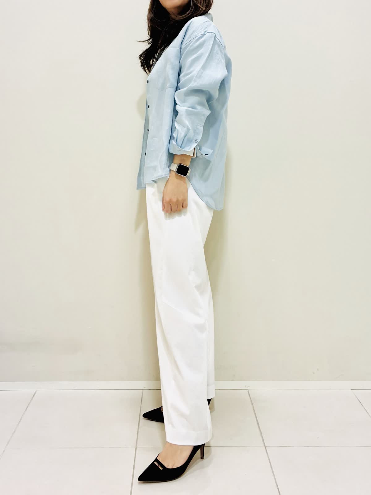 【着用サイズ】 麻シャツ:サックス:9号サイズ インナー:オフホワイト:9号サイズ パンツ:オフホワイト:9号サイズ 『お出かけスタイリング』 日差し避けにピッタリの麻シャツは真夏までしっかり着たい方におすすめです。 トップスや羽織にもなるのでワンピースやスカート合わせも◎ パンツは軽くて涼しいです。 脚長効果もあり程よくキレイめで毎日着たくなるデザインです。 インナーのカットソーはキレイなスクエアネックでシャツの中などに入れると首周りがスッキリ見えます。