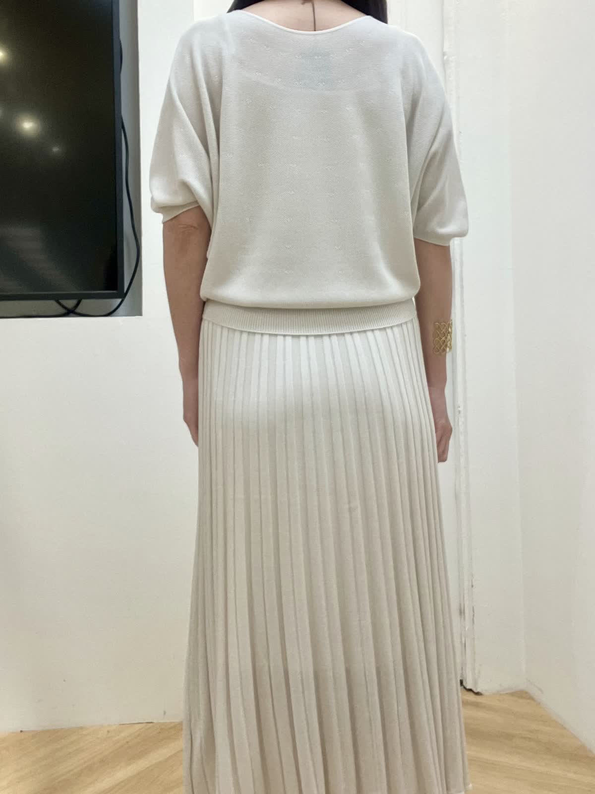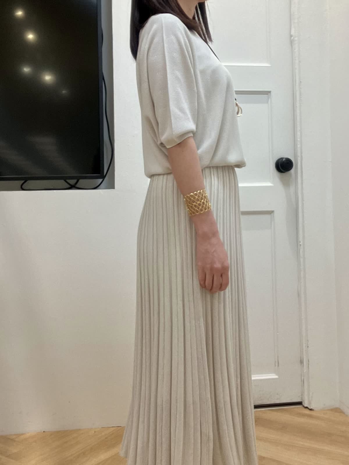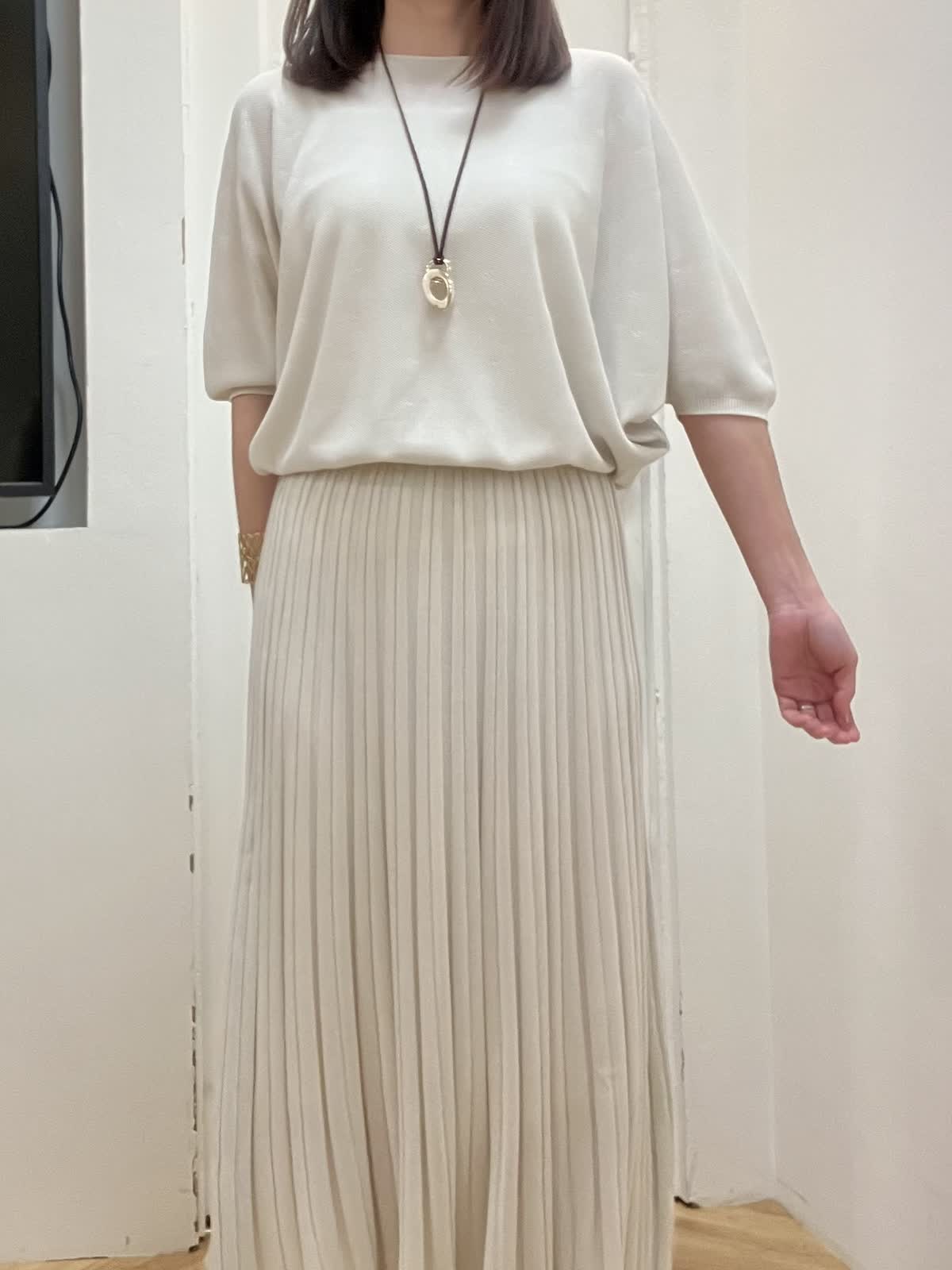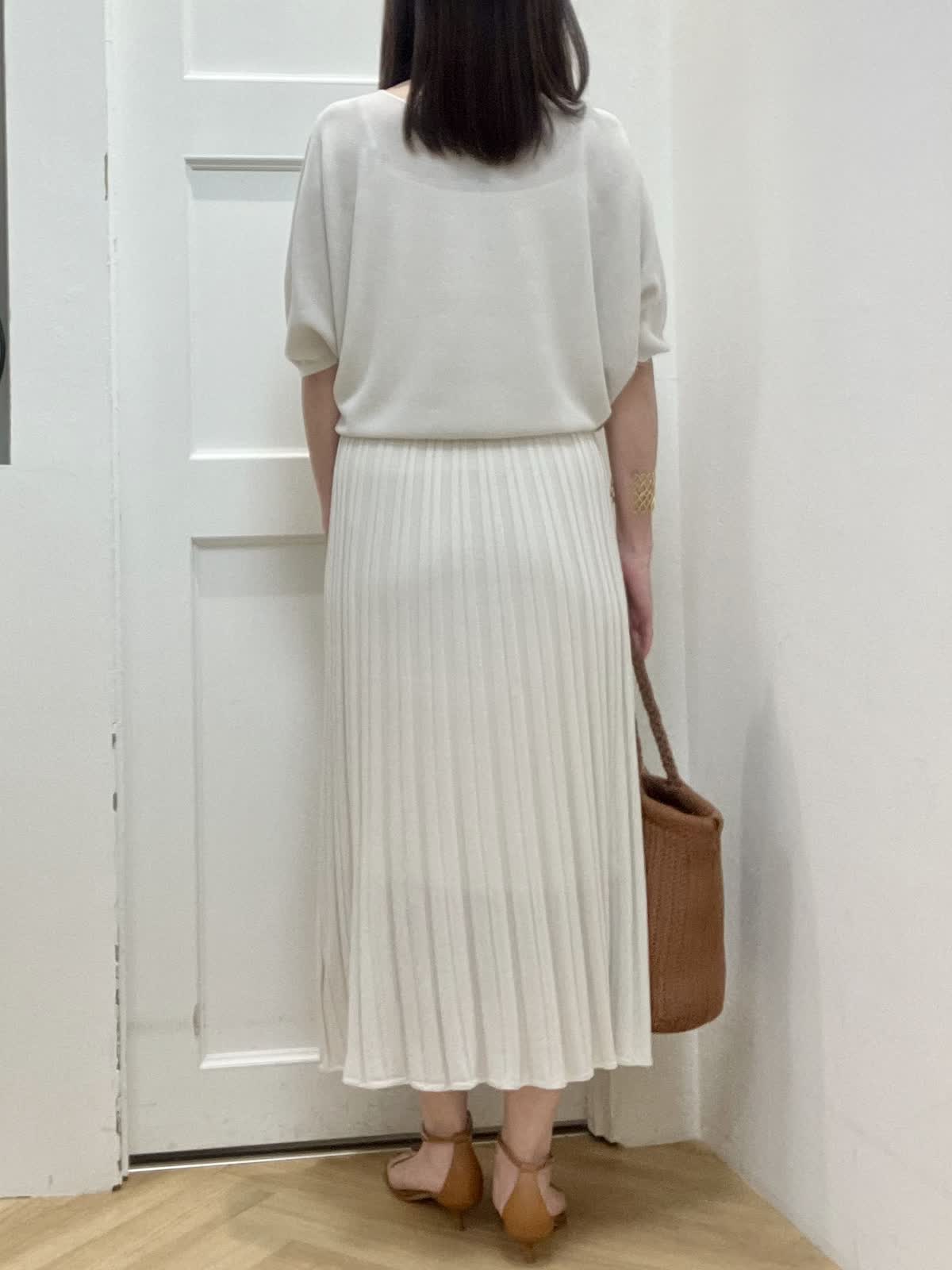【着用サイズ】全て9号 【着用カラー】ブルゾン:ベージュ ニット/スカート:グレーベージュ 初夏のキレイめお出かけスタイル ブルゾンはギャザーデザインが女性らしく、ショート丈なので羽織るだけで今っぽくなります。裾が柔らかいゴム仕様でとにかく軽く、ストレスフリーな着心地です。 ニットアップはキュプラ混で夏場まで着回して頂ける快適な着心地。ドルマンスリーブのニットとスカートは体型カバー出来るデザイン。縫い目がないのでストレスフリーな着心地と単品でも着回しが効