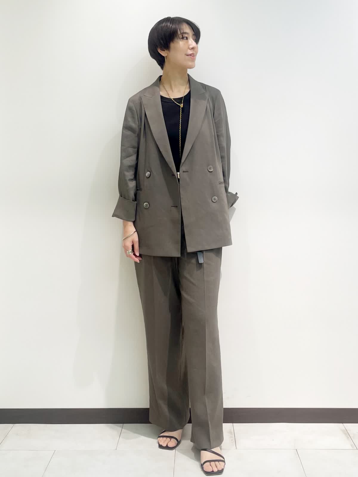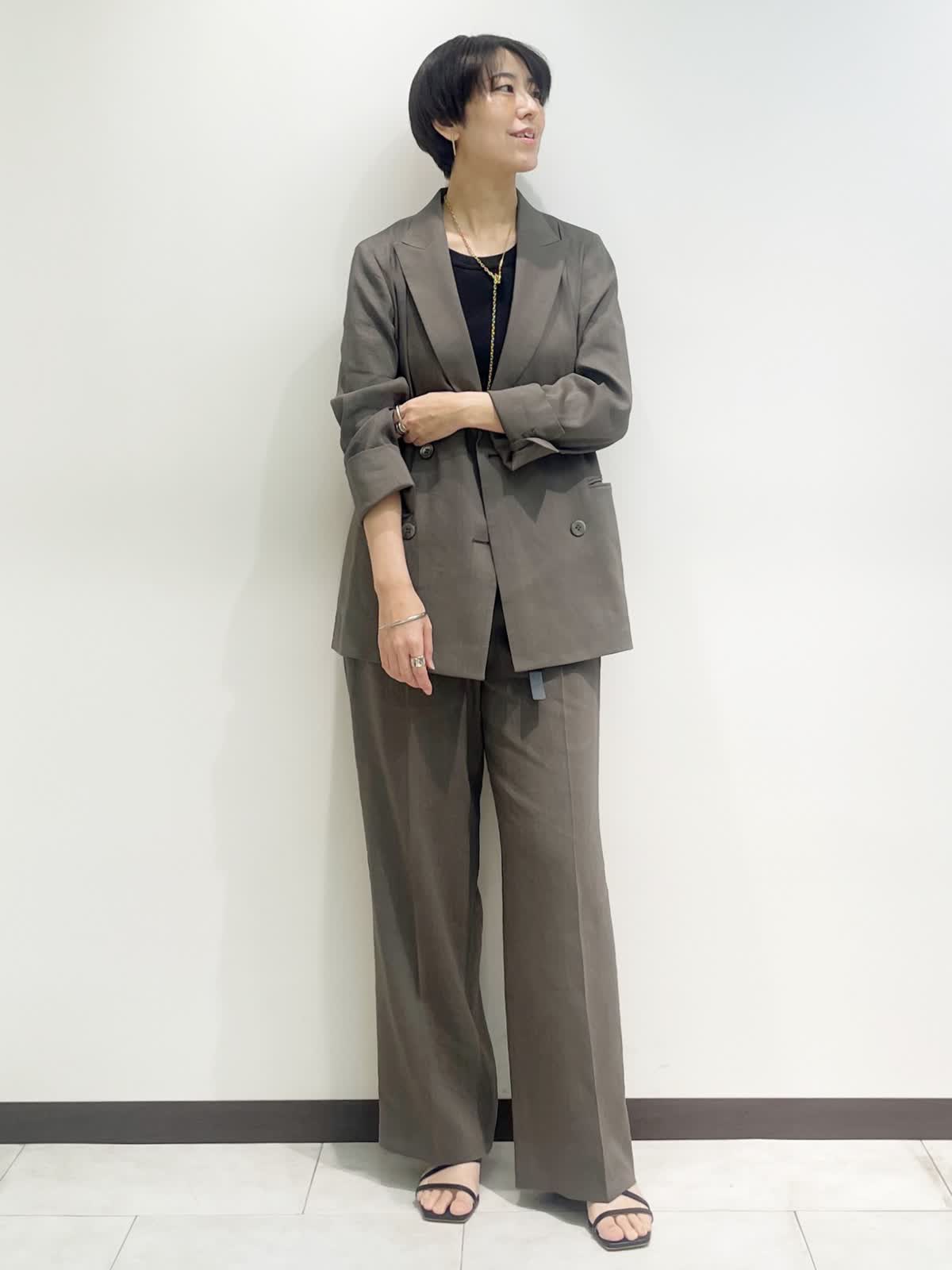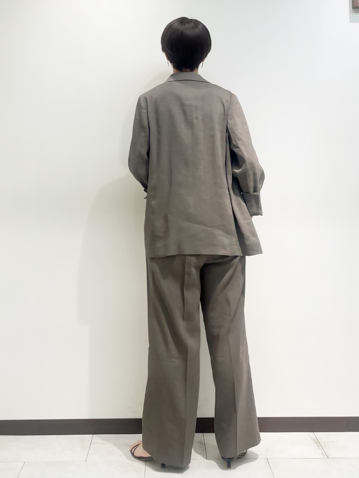 【着用サイズ】全て9号 【カラー】ジャケット パンツ:モカチャ カットソー:ブラック 【コーディネートテーマ】 初夏のセットアップコーデ リネンストレッチ素材で着心地抜群。セットアップから単品着回しまで幅広くコーディネートしていただけます! 【サイズ感】 ジャケット:やや緩め パンツ:標準 カットソー:標準 163p 普段9号サイズ 骨格ウェーブで上半身に比べてヒップがやや大きい
