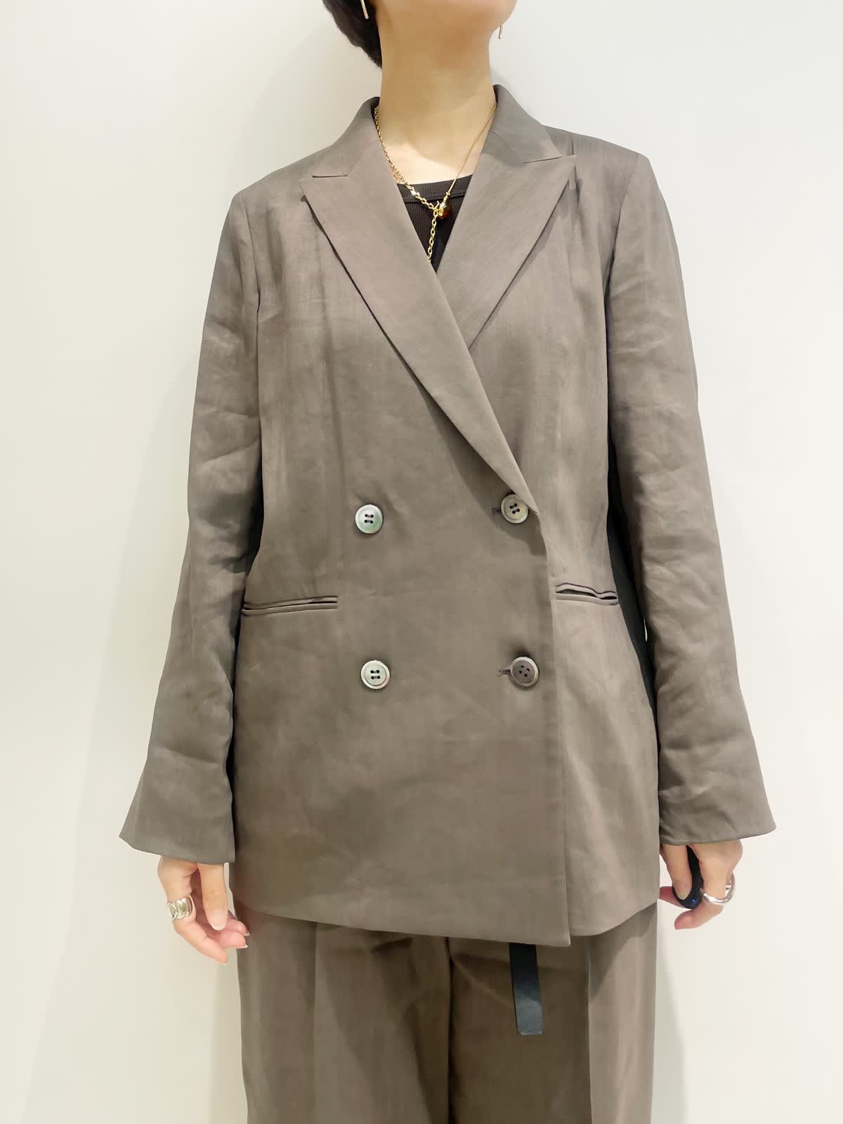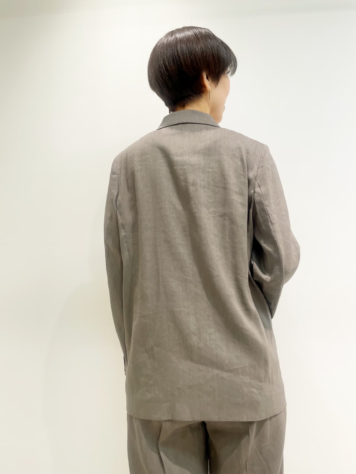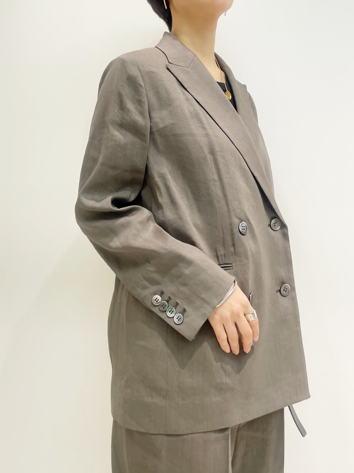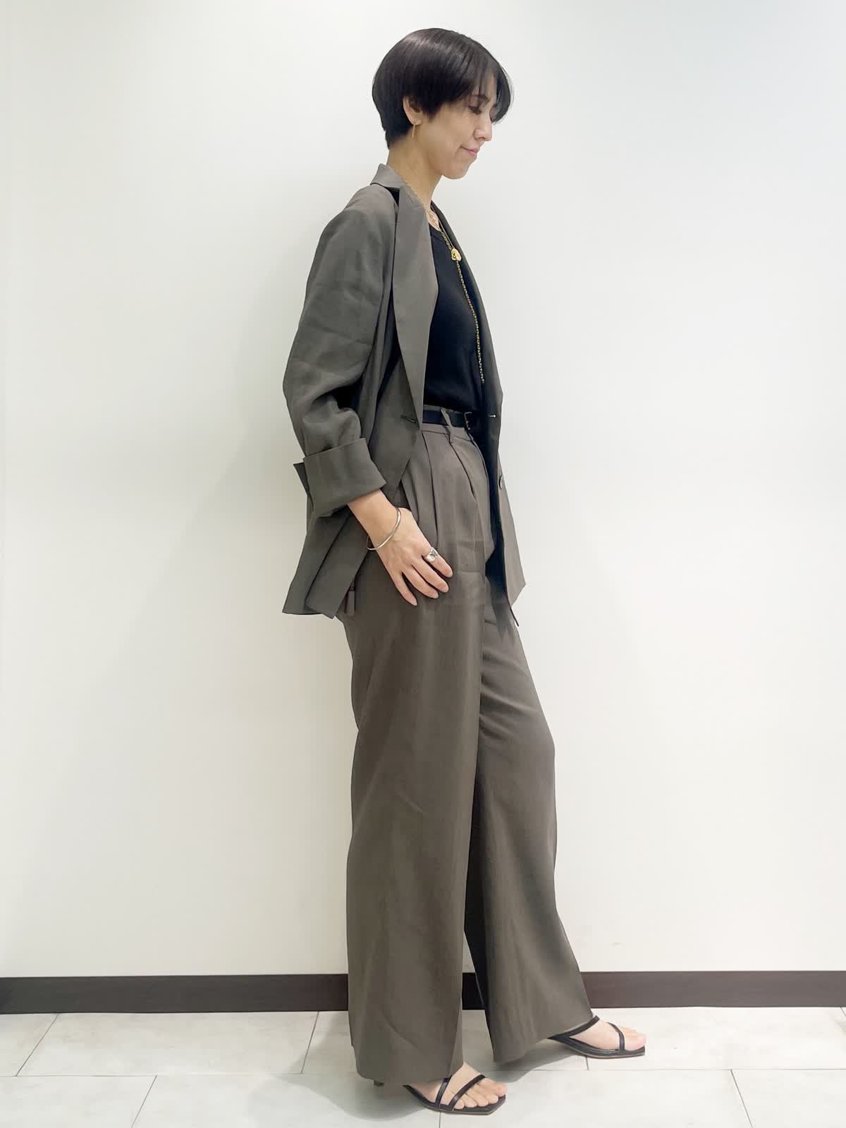 【着用サイズ】全て9号 【カラー】ジャケット パンツ:モカチャ カットソー:ブラック 【コーディネートテーマ】 初夏のセットアップコーデ リネンストレッチ素材で着心地抜群。セットアップから単品着回しまで幅広くコーディネートしていただけます! 【サイズ感】 ジャケット:やや緩め パンツ:標準 カットソー:標準 163p 普段9号サイズ 骨格ウェーブで上半身に比べてヒップがやや大きい