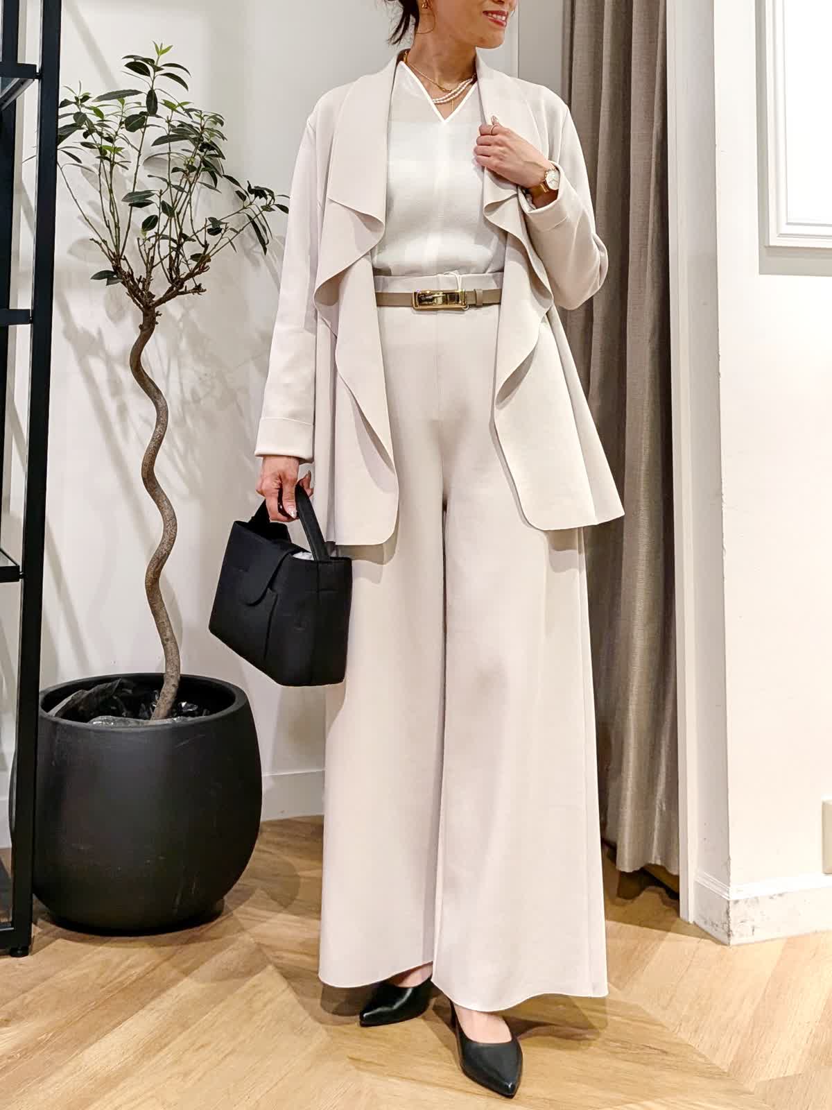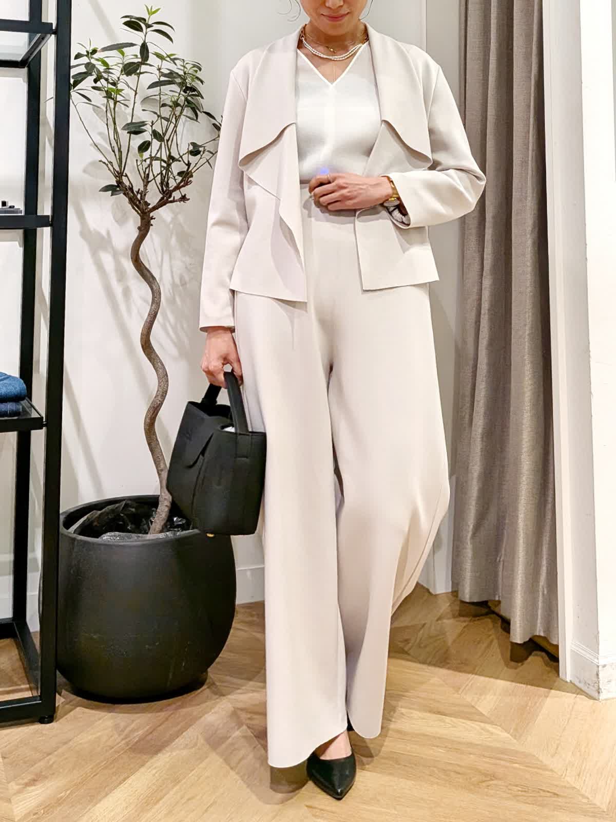 ef-de BlackジャケットとINEDブラウスとINED Lブラウスとef-de BlackジャケットとパンツとFAVORITE SUKINAMONOバッグとADER.bijouxアクセサリー(岡山天満屋SUPERIORCLOSET)
