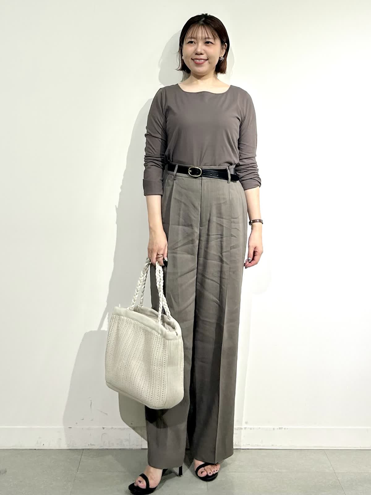 【着用カラー】ベルト:ブラック バッグ:ベージュ その他全てモカチャ