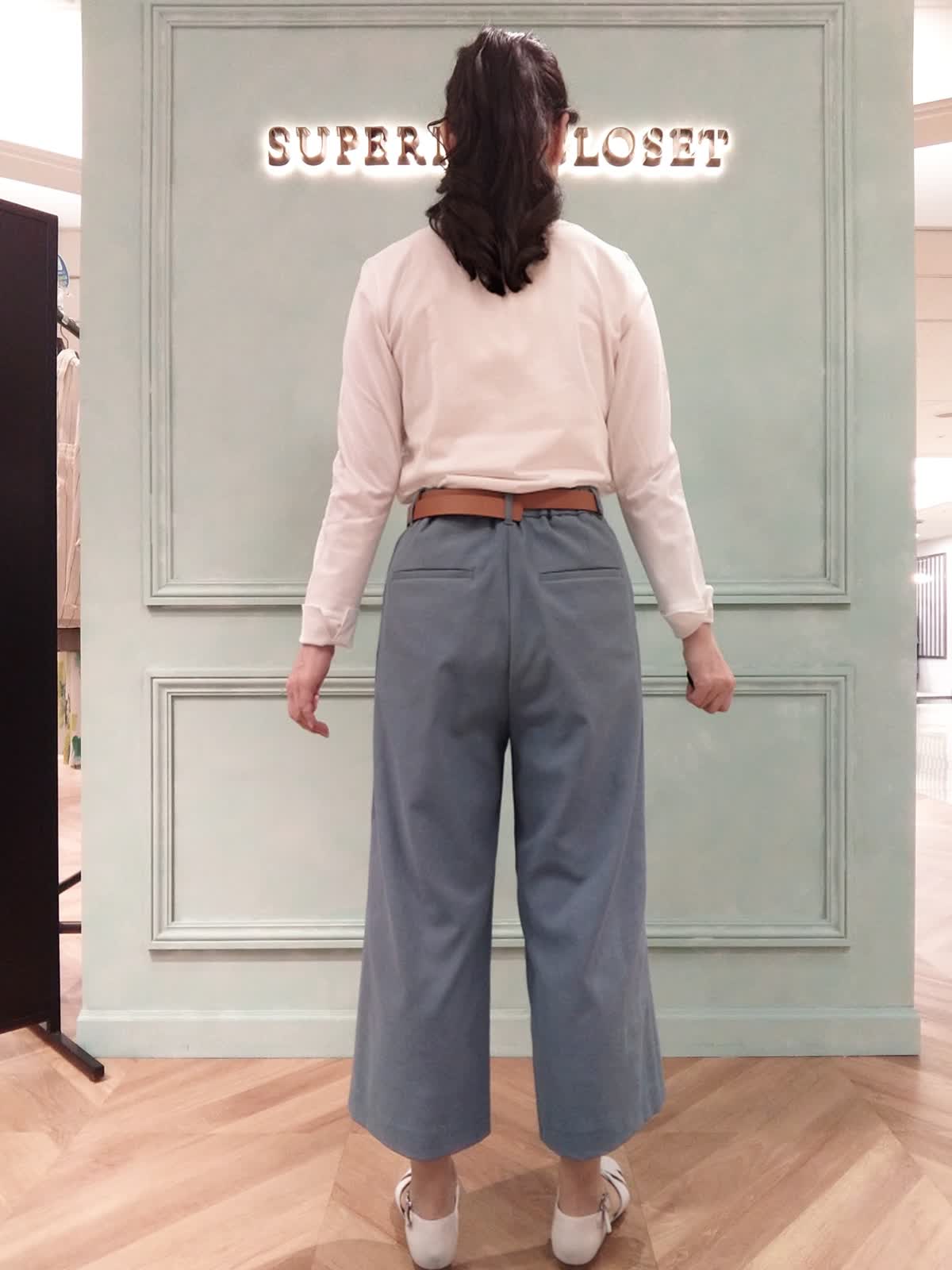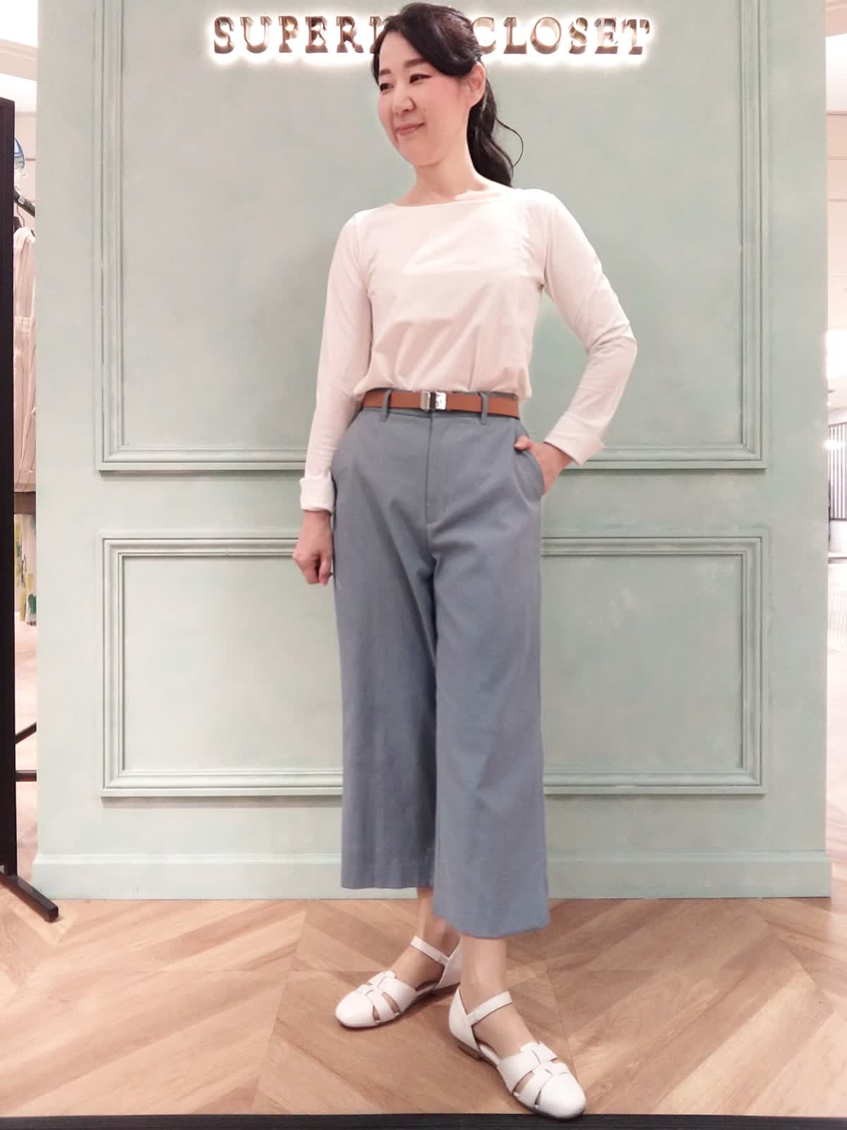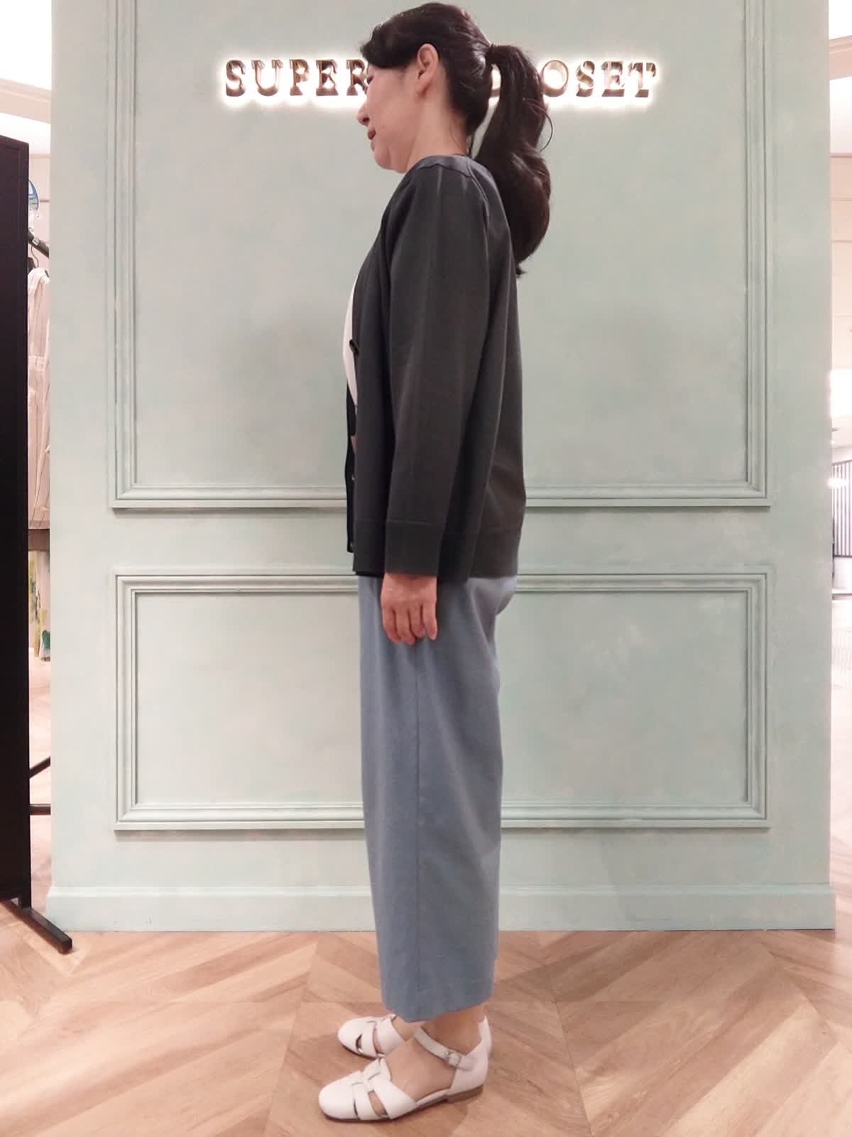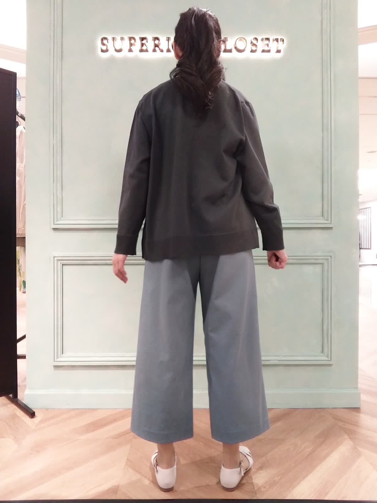 【着用サイズ】カーディガン:フリー、カットソー:9号、パンツ:9号 【着用カラー】カーディガン:スミクロ、カットソー:オフホワイト、パンツ:ブルー さらっとした着心地、クロップトパンツで楽チンおでかけコーディネート。 さらっとシャリ感のあるVネックカーディガンとぺたんこ靴が良く合うクロップト丈のワイドパンツでシンプルにコーディネート。グレーイッシュなブルーはカラーを取り入れやすくオシャレを楽しめます。カットソーは袖口スリットがあり、折り返して使えます。