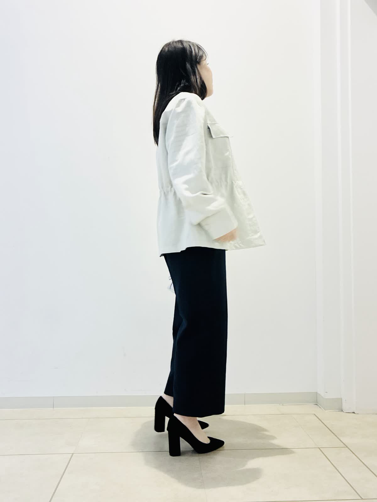 【着用サイズ】ジャケット:9号 カットソー:フリー パンツ:9号【着用カラー】ジャケット:グレーベージュ カットソー:ボーダー パンツ:ネイビー さらっと羽織れるライトジャケット。ウエストのドロストでシルエットアレンジも楽しめます。体型カバーも期待出来る、ヒップに少しかかる着丈も嬉しいポイント。リラックス感のあるデザインで、ストレスフリーな着心地です。GWのご旅行にも◎