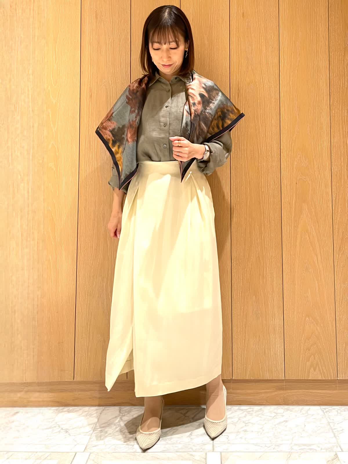 INEDブラウスとla veille by SUPERIOR CLOSETスカートとFAVORITE SUKINAMONOストール(日本橋高島屋SC SUPERIOR CLOSET)