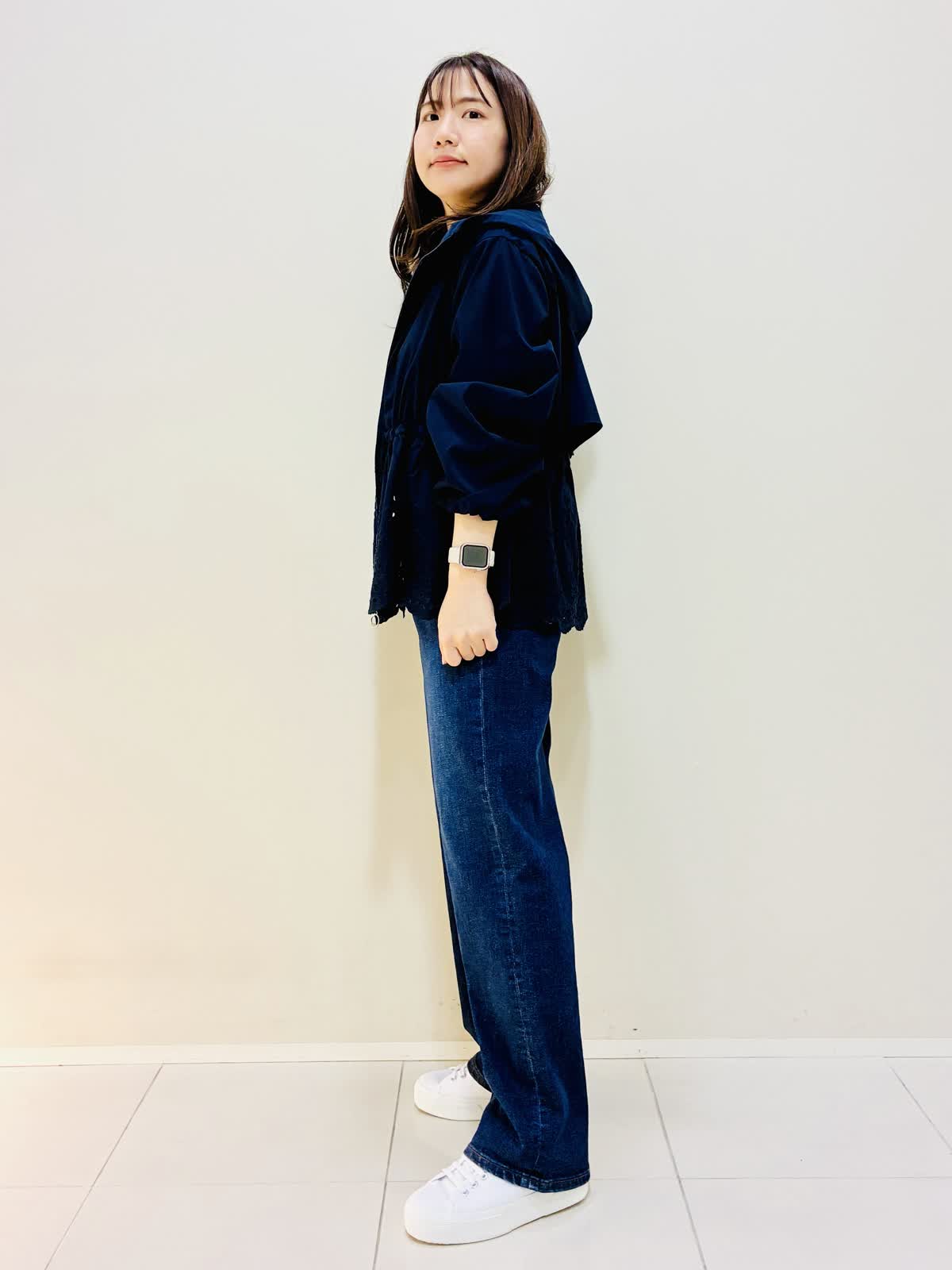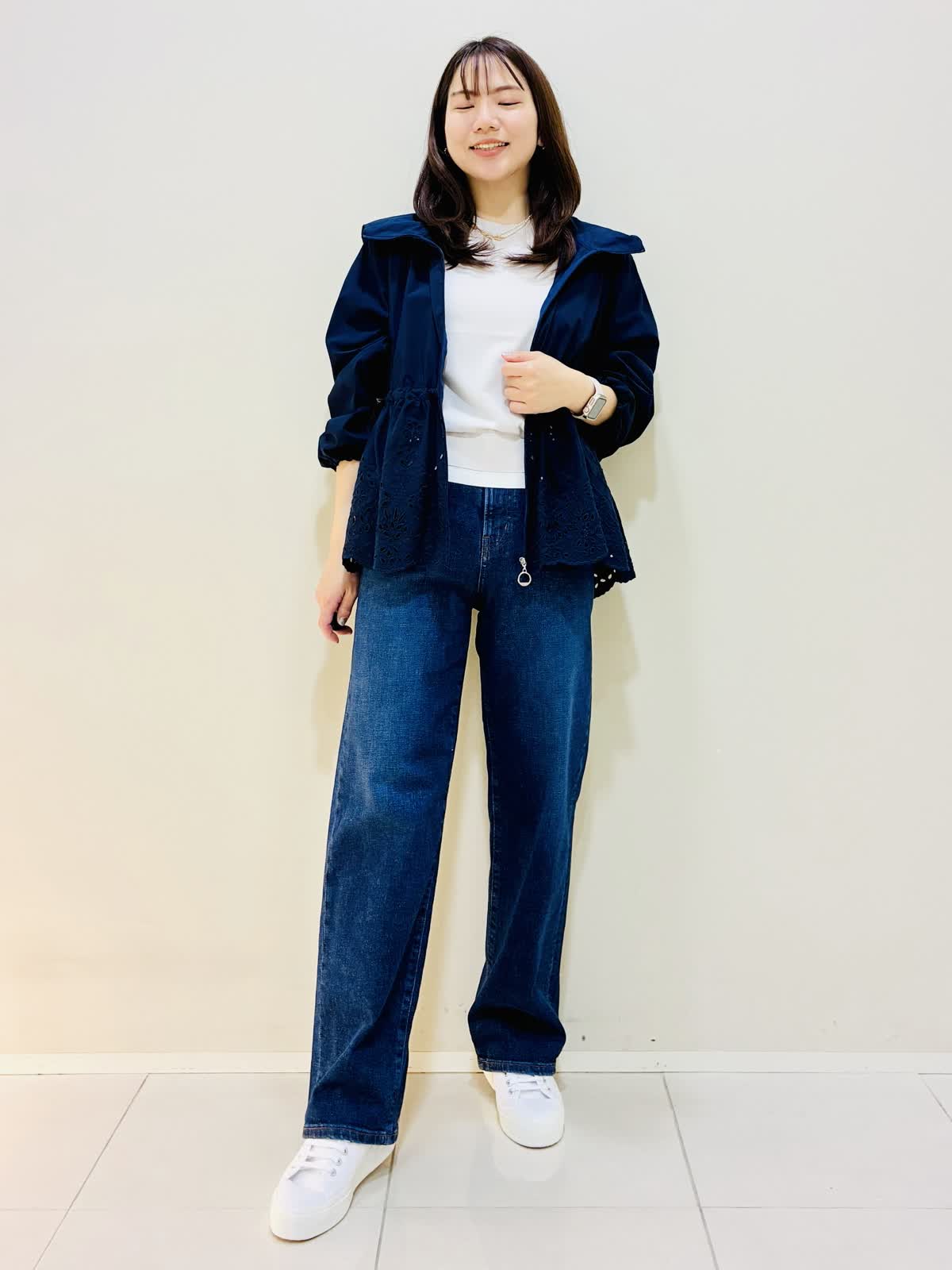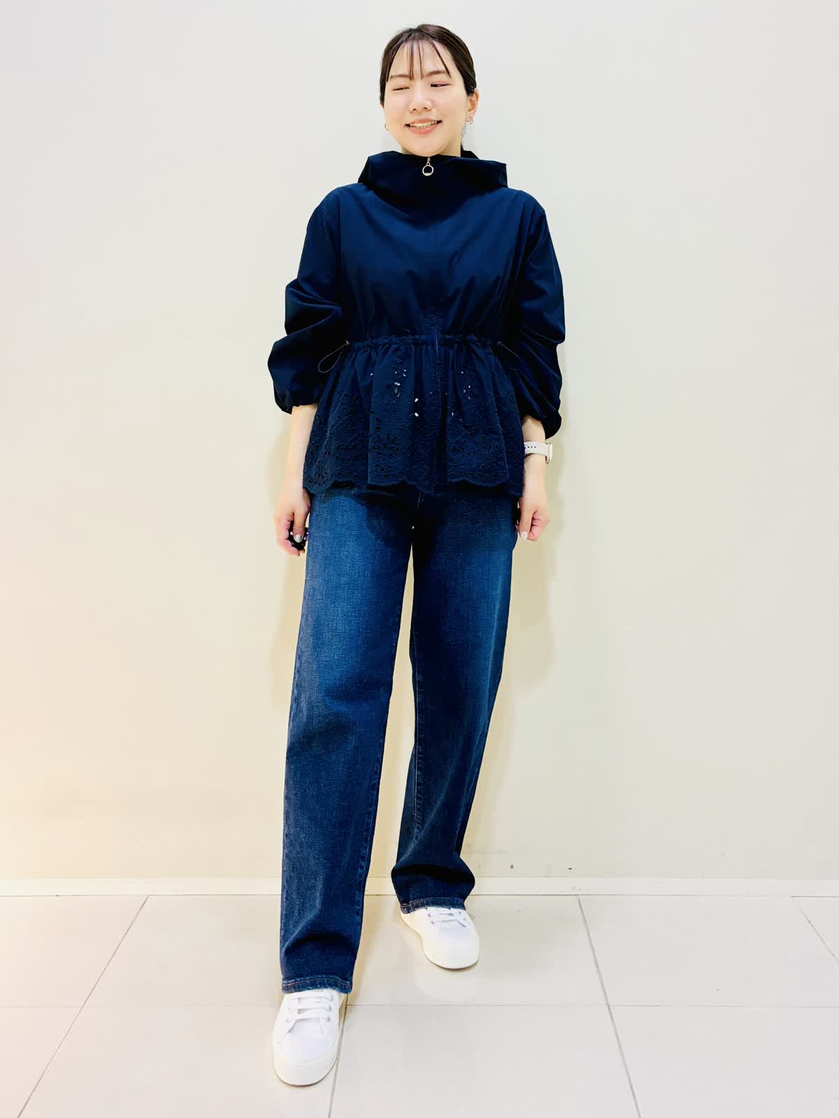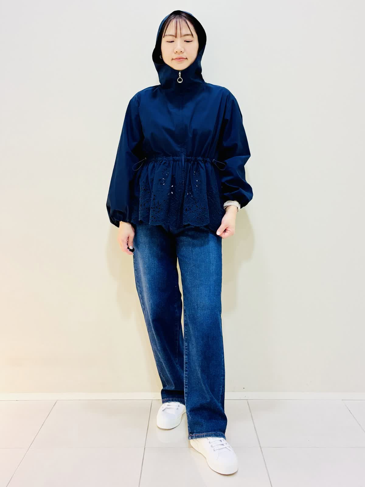 【着用サイズ】 ラッシュガード:ネイビー:9号サイズ ニット:グレーベージュ:9号サイズ デニム:インディゴ:9号サイズ ネックレス:ゴールド スニーカー:オフホワイト:24 『梅雨や日差しの強い日におすすめコーデ』 撥水加工やUVカットの効果のあるラッシュガードは今から梅雨や日差しの強い夏の日におすすめです。 軽くて風通しの良い刺繍デザインなので、真夏もしっかり着ていただけます。 デニムにスニーカー合わせのカジュアルコーデで旅行やイベントにも着れます。 ネックレスはカジュアルなお洋服にも相性の良いデザインです。 スニーカーは普段23.5センチを履くのですが、靴下を履いて丁度よかったです。