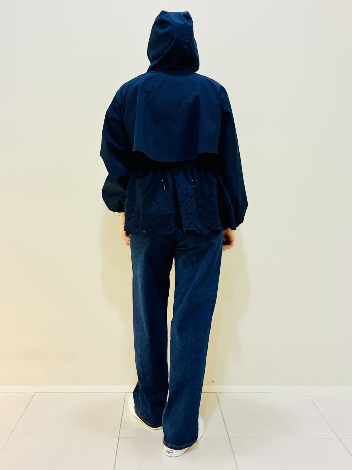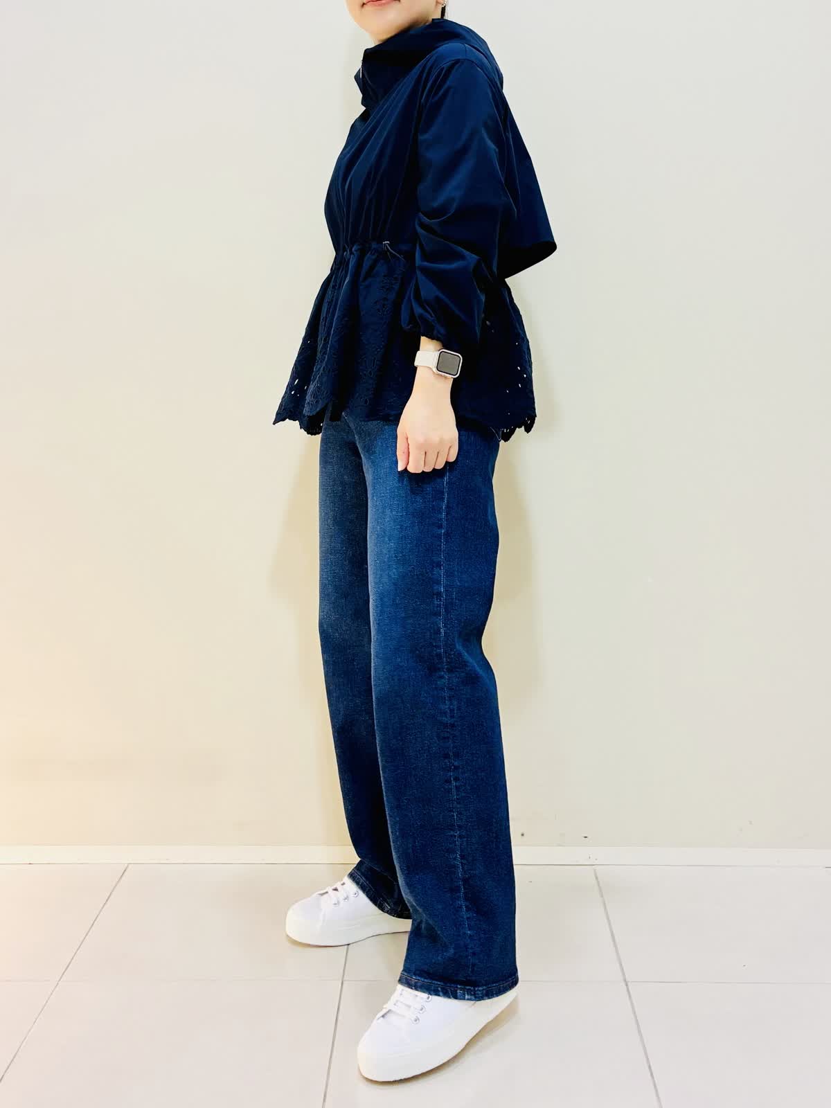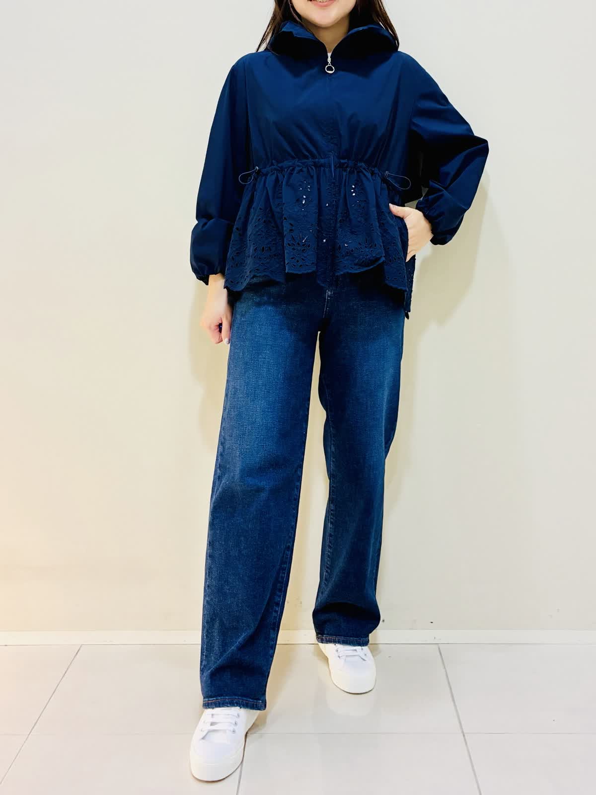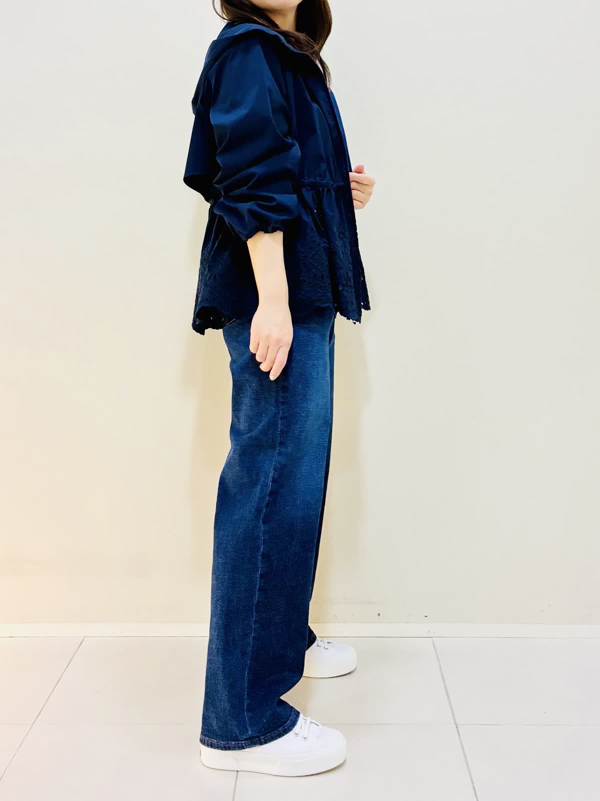 【着用サイズ】 ラッシュガード:ネイビー:9号サイズ ニット:グレーベージュ:9号サイズ デニム:インディゴ:9号サイズ ネックレス:ゴールド スニーカー:オフホワイト:24 『梅雨や日差しの強い日におすすめコーデ』 撥水加工やUVカットの効果のあるラッシュガードは今から梅雨や日差しの強い夏の日におすすめです。 軽くて風通しの良い刺繍デザインなので、真夏もしっかり着ていただけます。 デニムにスニーカー合わせのカジュアルコーデで旅行やイベントにも着れます。 ネックレスはカジュアルなお洋服にも相性の良いデザインです。 スニーカーは普段23.5センチを履くのですが、靴下を履いて丁度よかったです。