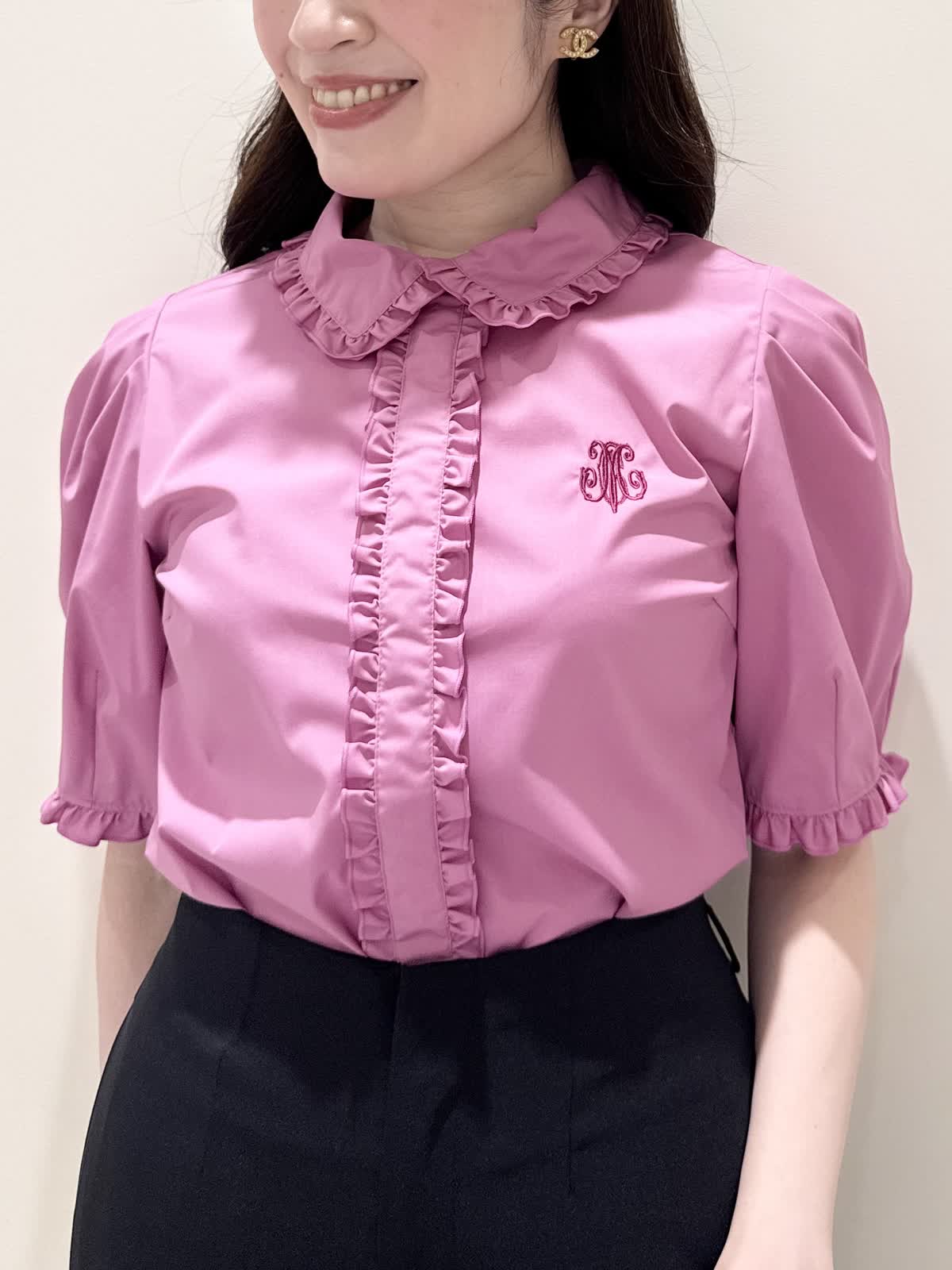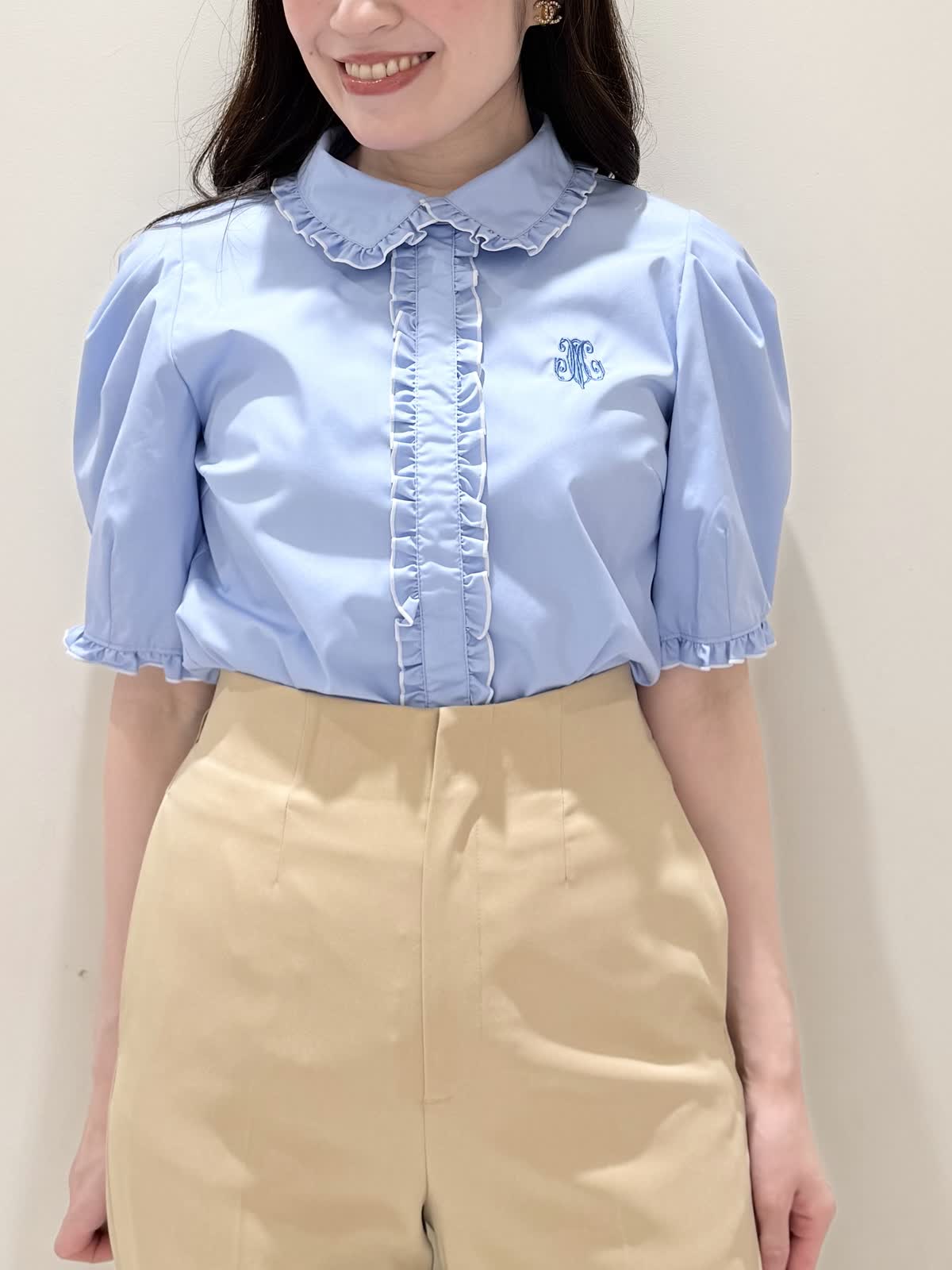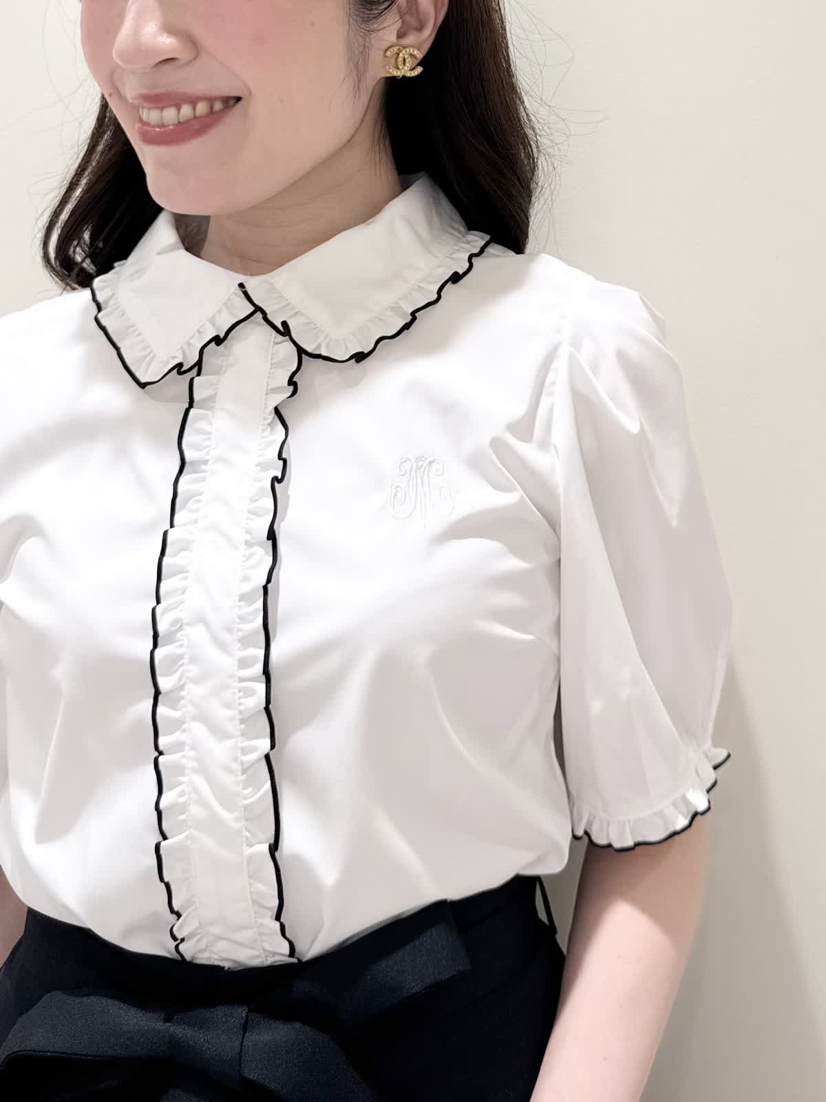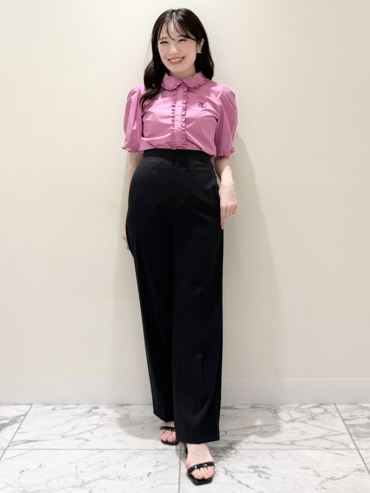 【着用サイズ/カラー】ブラウス:7号/オフホワイト・ホワイト・サックス・チェリーピンク スカート:5号/サックス パンツ:5号/ブラック・ベージュ コラボブラウスの着回しコーディネート♪ ドットジャガードのブラウスはふわっと軽いシアー生地。薄い生地なのでキャミソールを着るのをおすすめします。素材違いのブラウスはハリ感がありますが、ゴワゴワとした感じではなくコットンのツヤッとした質感もあるのでサラッとした着心地。メロウの配色は色味ごとに変えてるのがポイント。1つ目の合わせはデニムスカート。タック入りで広がりすぎないスッキリと着られるフレアシルエット。サスペンダーは取り外し可能なので、その日の気分で楽しめます。サスペンダーは長さ調節ができるボタンホールが後ろに2箇所あります。後ろゴムの伸び感は少なめなので程よい余裕が欲しい方は1サイズ大きめでも◯2つ目の合わせはパンツ。サラサラとした生地に薄手の裏地付きで透け感防止。脚が綺麗に見えるストレートシルエット。後ろゴムで履き心地良く、ベルトは取り外し可能。ベルトなしだと、スッキリとした印象で着られます。その日の気分で楽しめます。いつものサイズで大丈夫です。