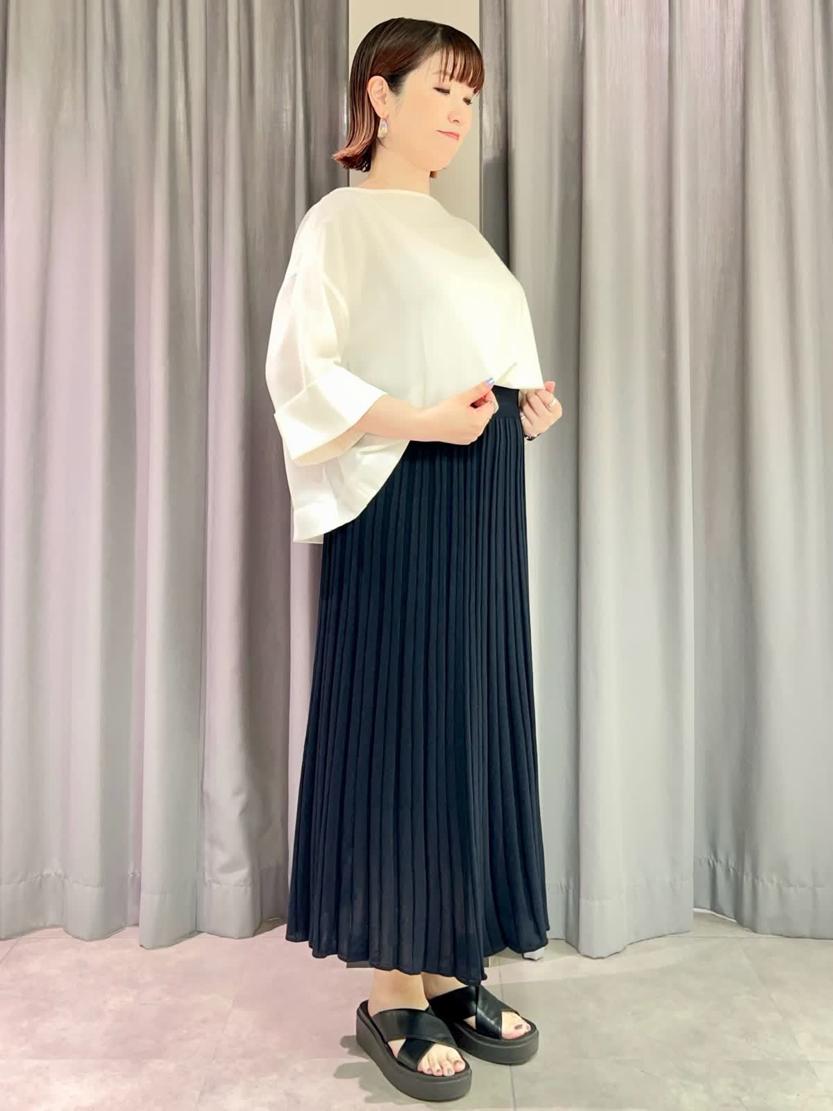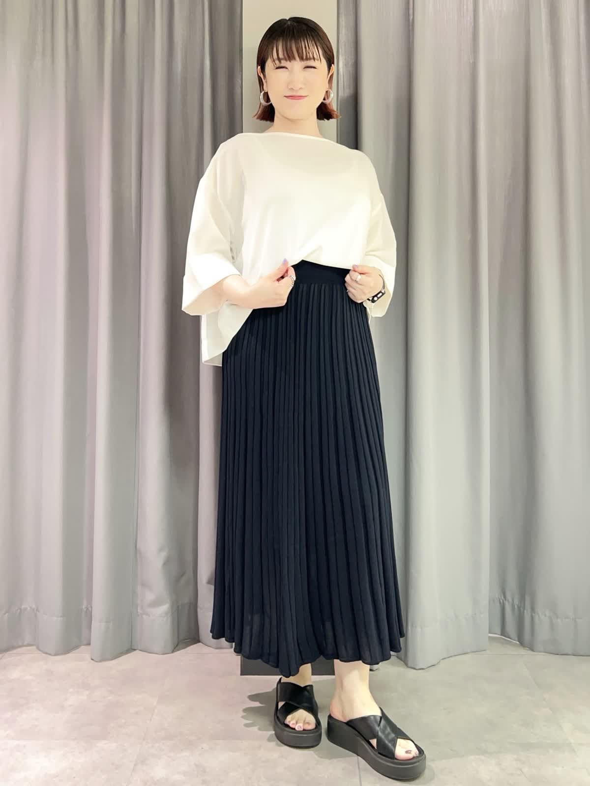 【着用サイズ/カラー】ブラウス:フリー/オフホワイト スカート:11号/ダークネイビー ニット:9号/ダークネイビー カーディガン:9号/ダークネイビー ネックレス:シルバー 『Cuooニットスカート着回しコーデ』 [ブラウス]DAY by DAY毎年定番人気のブラウスです。ややオーバーサイズでボディラインを拾わず、サラッとしているので肌離れも良いです。洗えてシワも気になりにくいので旅行にもオススメです。 [スカート]イネドで毎年定番人気のキュプラを使ったサラッとしたニットスカートです。ペチコート付きなので安心です。ウエストはゆるめで11号だと少し大きく感じました。 [ニット]スカートと同素材のニットです。程よいオーバーサイズで着痩せ効果があります。シワになりにくいので旅行にもオススメです。 [カーディガン]ニットと同素材のカーディガンです。ややオーバーサイズでゆったりとしたトップスの上からも羽織れます。夏の冷房対策にもオススメです。